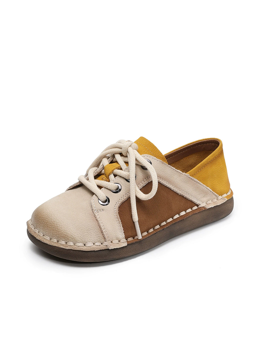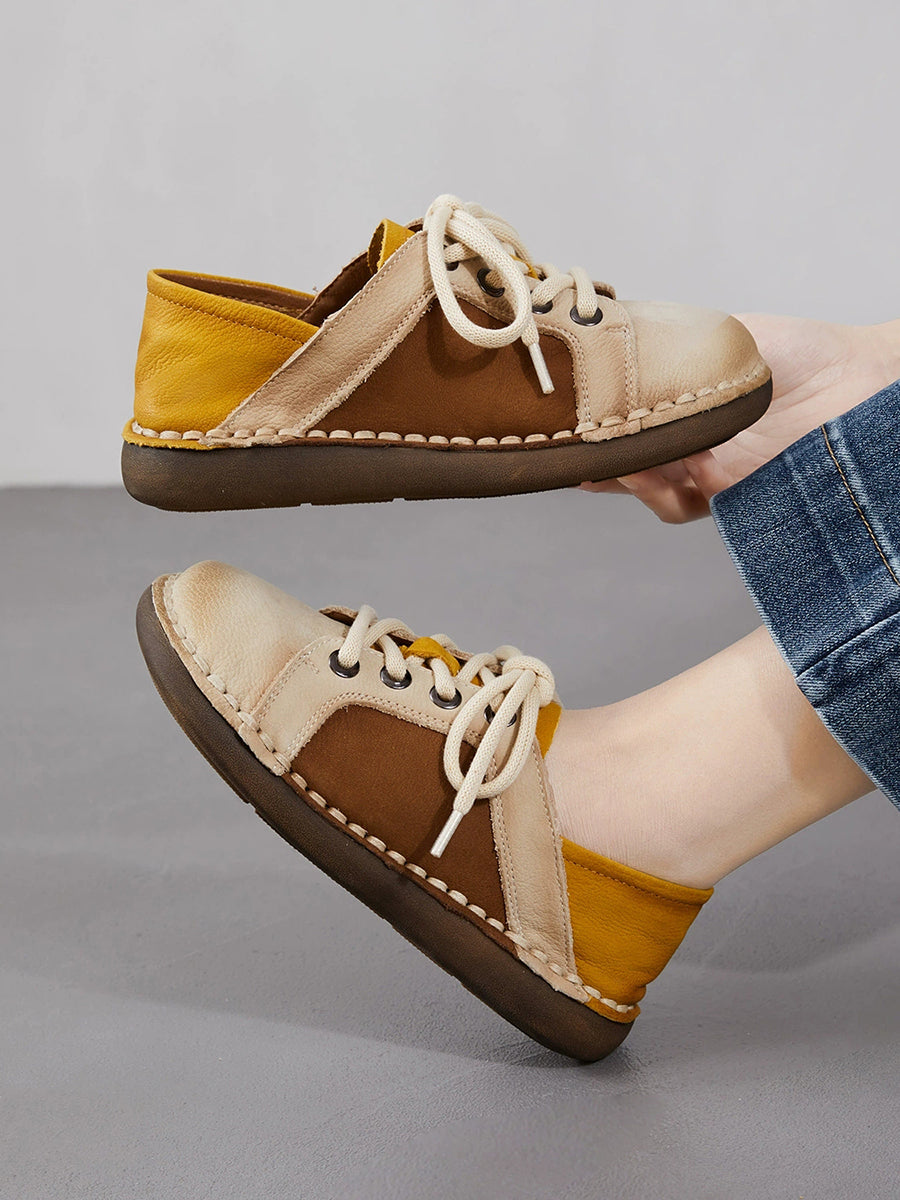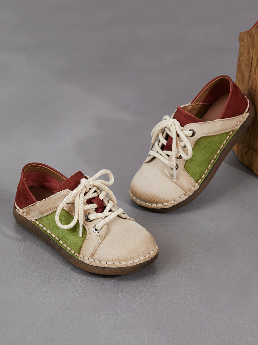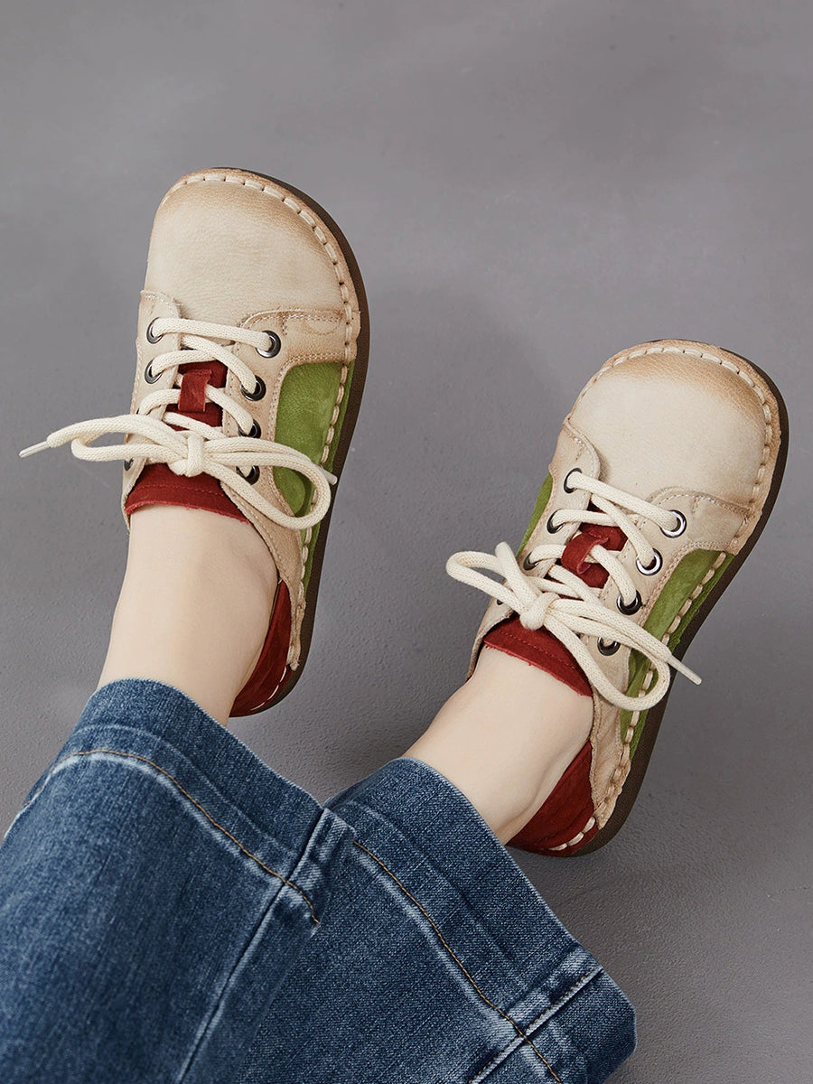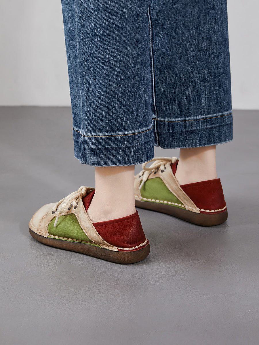 Scarpe basse da donna in vera pelle vintage primaverili con giunzioni