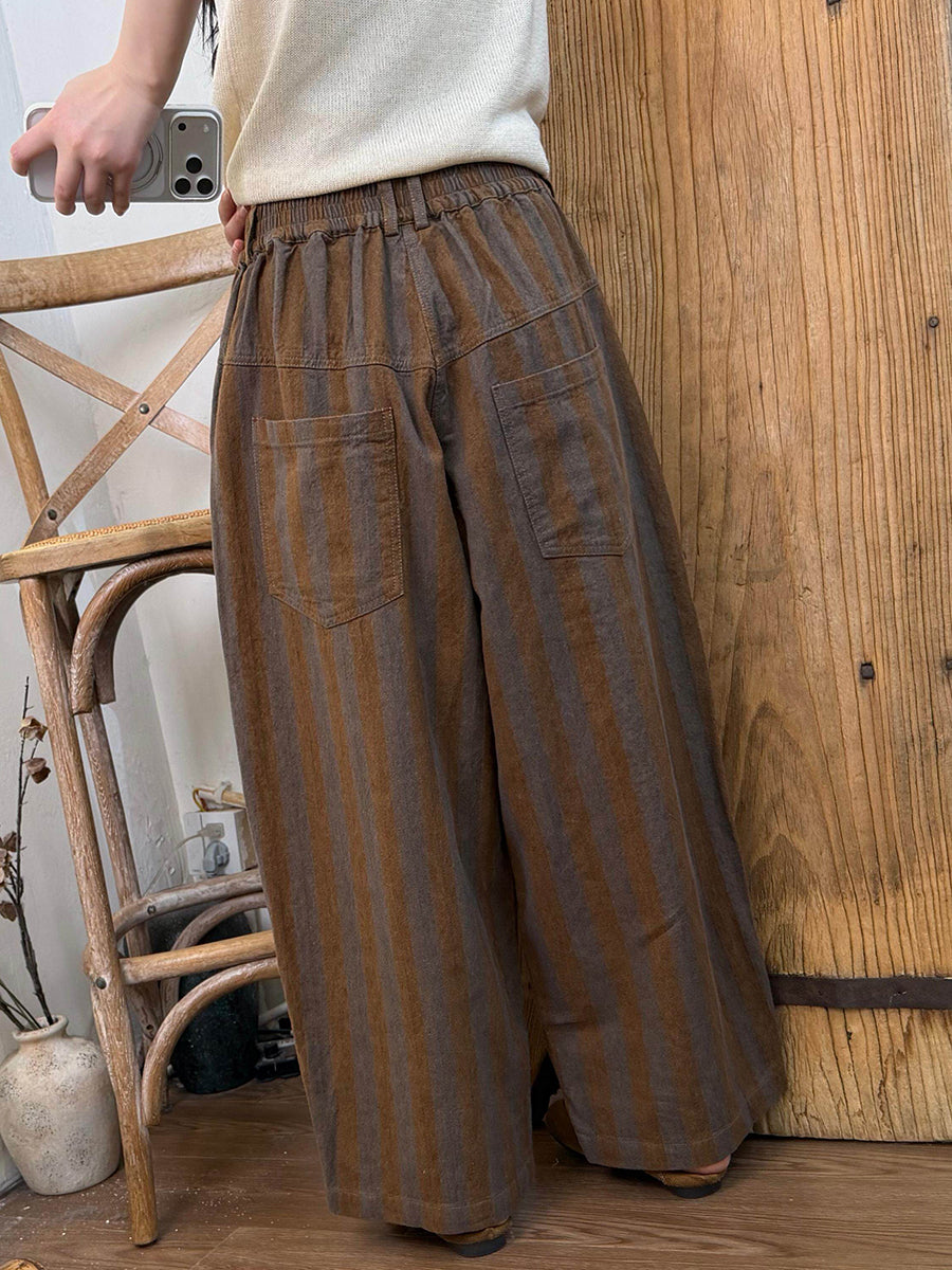 Pantaloni da donna primaverili a righe vintage a gamba larga