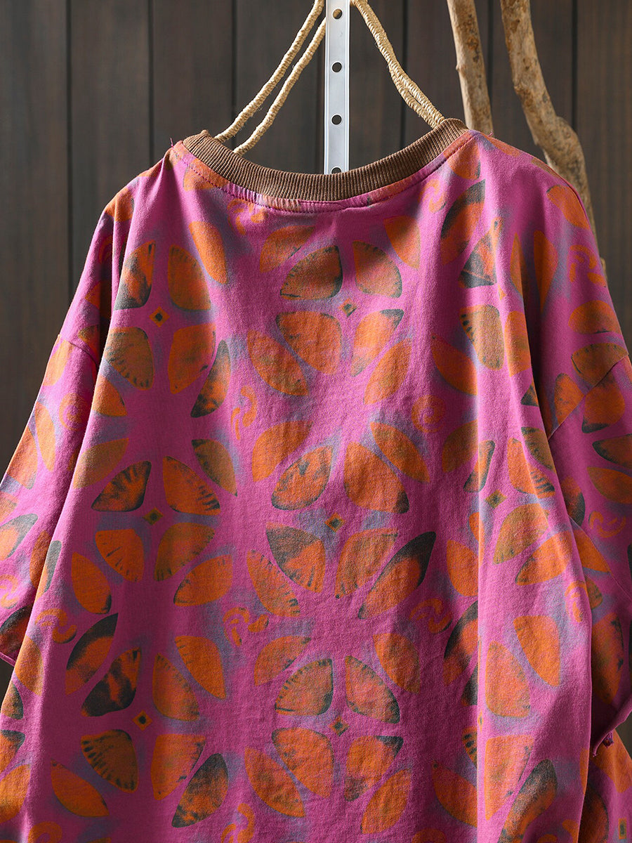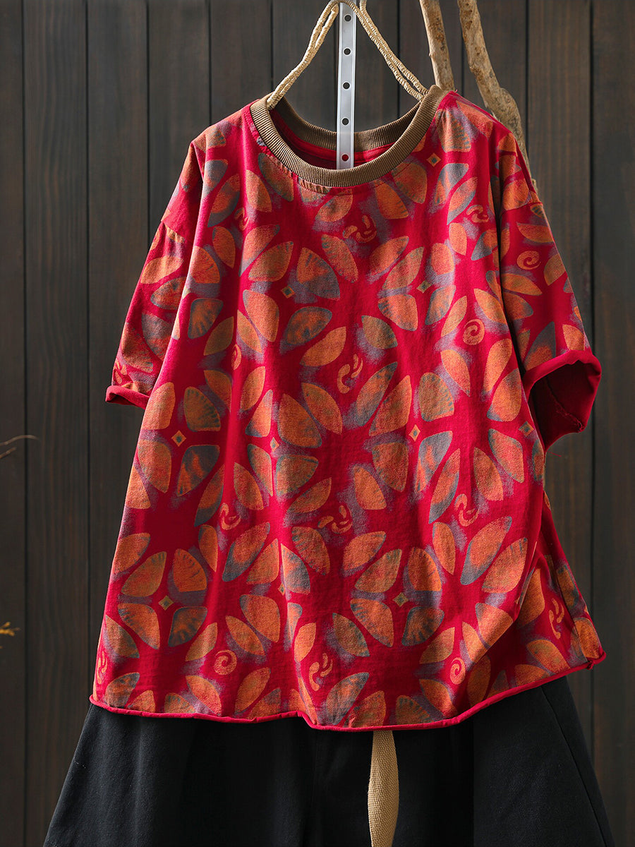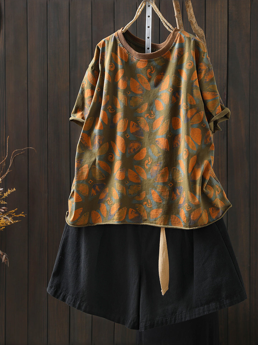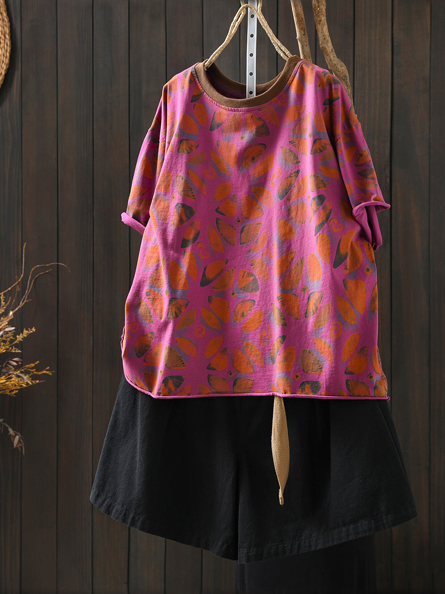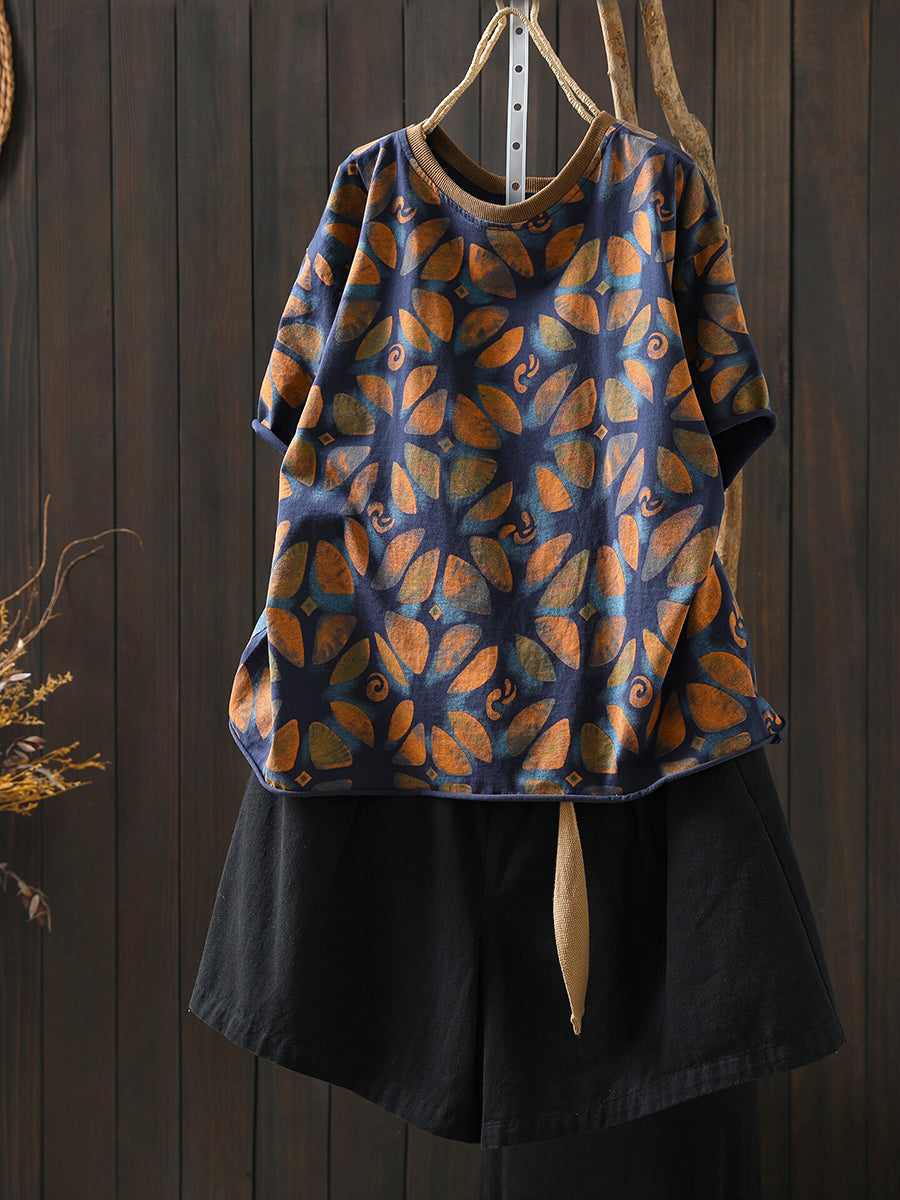 Camicia estiva da donna in cotone con fiori artistici
