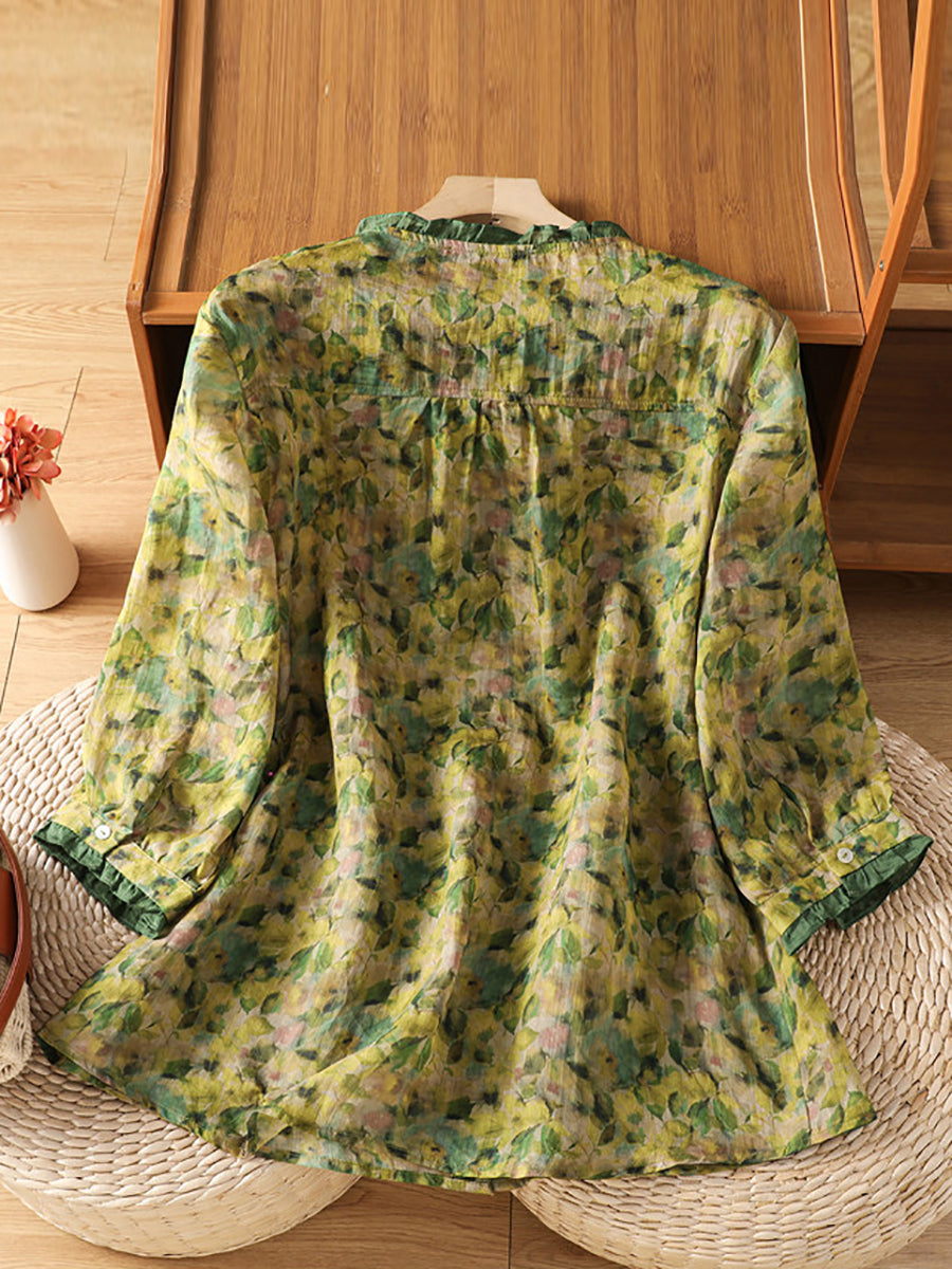 Camicetta estiva da donna con scollo a O e stampa floreale.