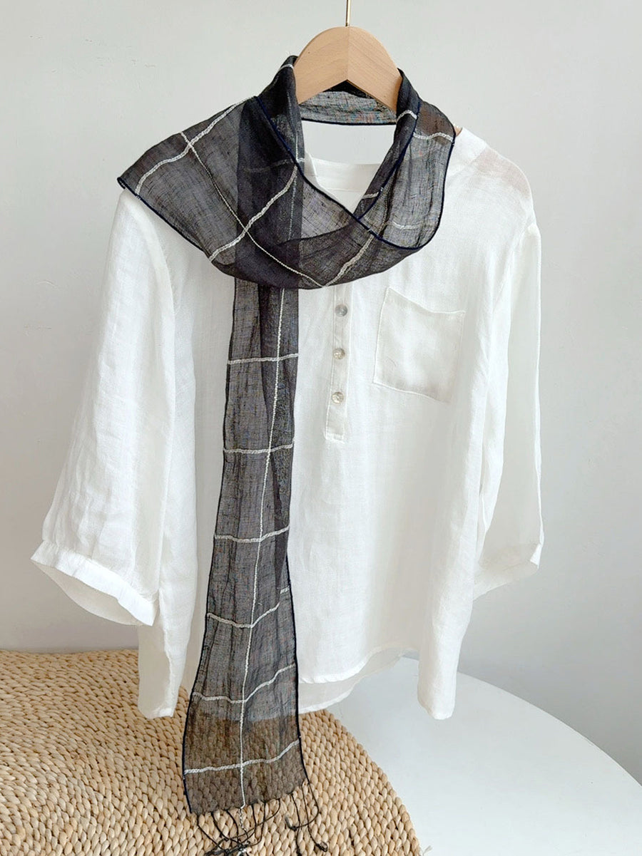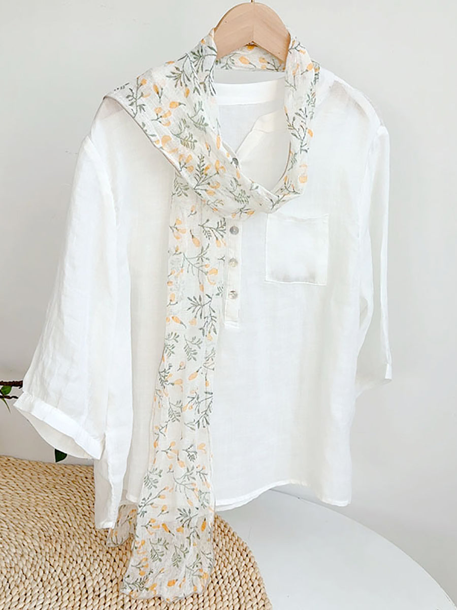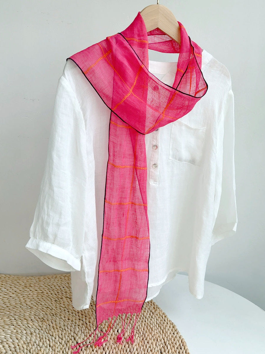 Sciarpa da donna estiva in lino sottile con motivo floreale artistico