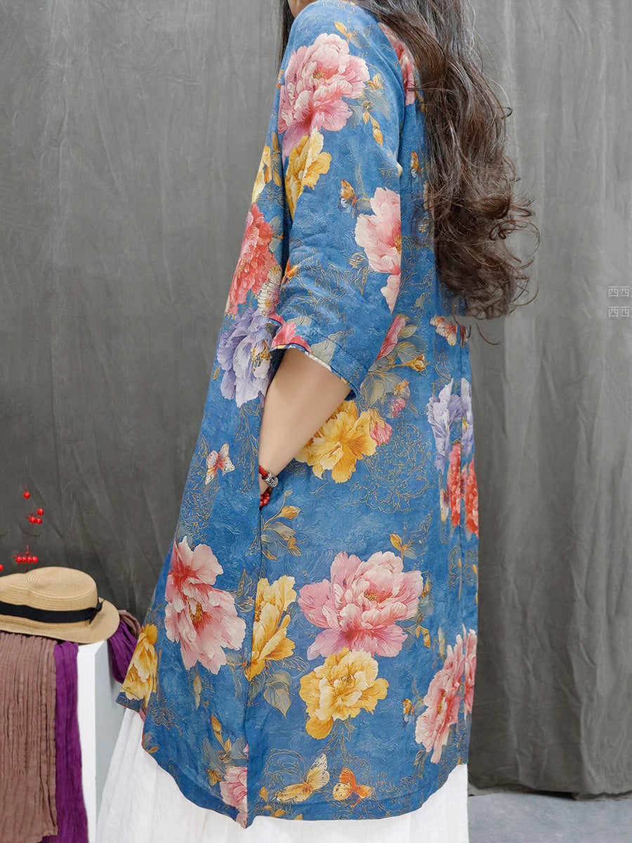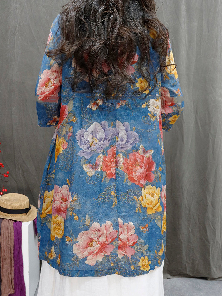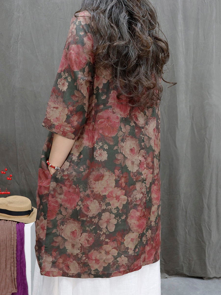 Camicia estiva da donna con scollo a V e motivo floreale in 100% ramia