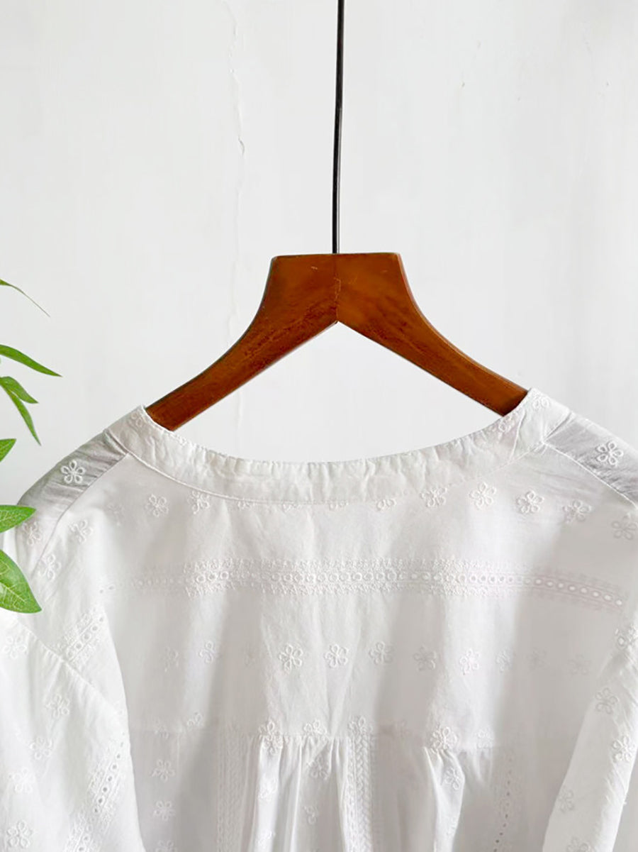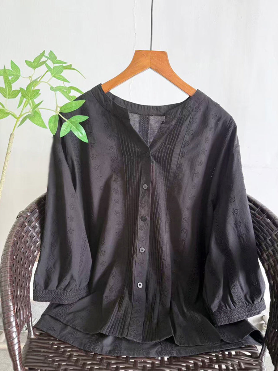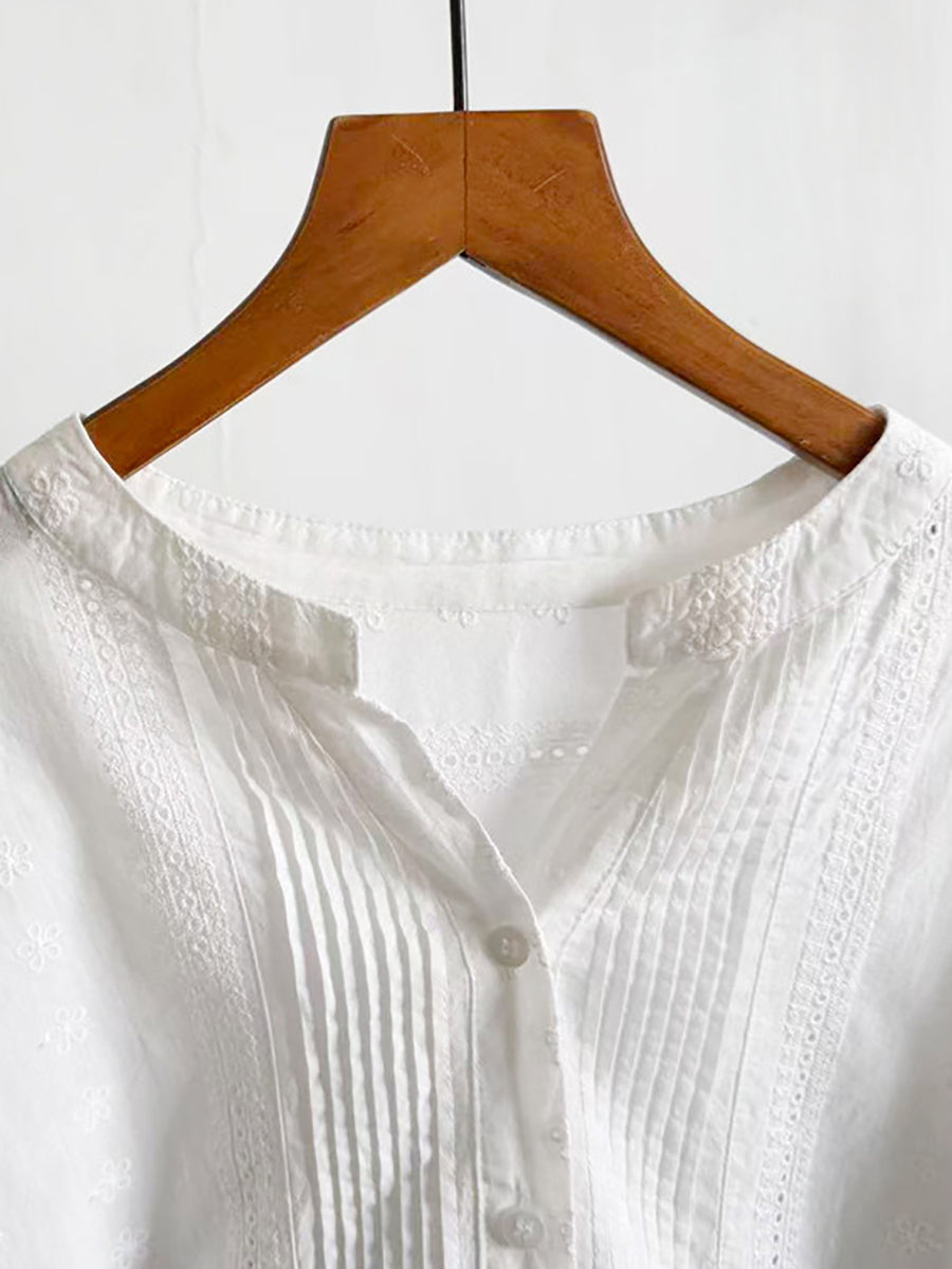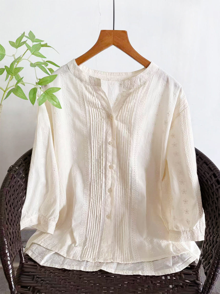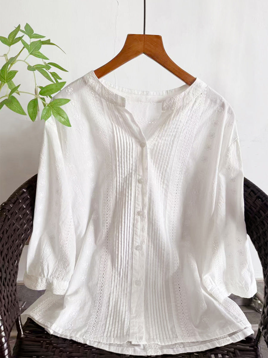 Camicetta estiva da donna in cotone con arricciature e motivi artistici