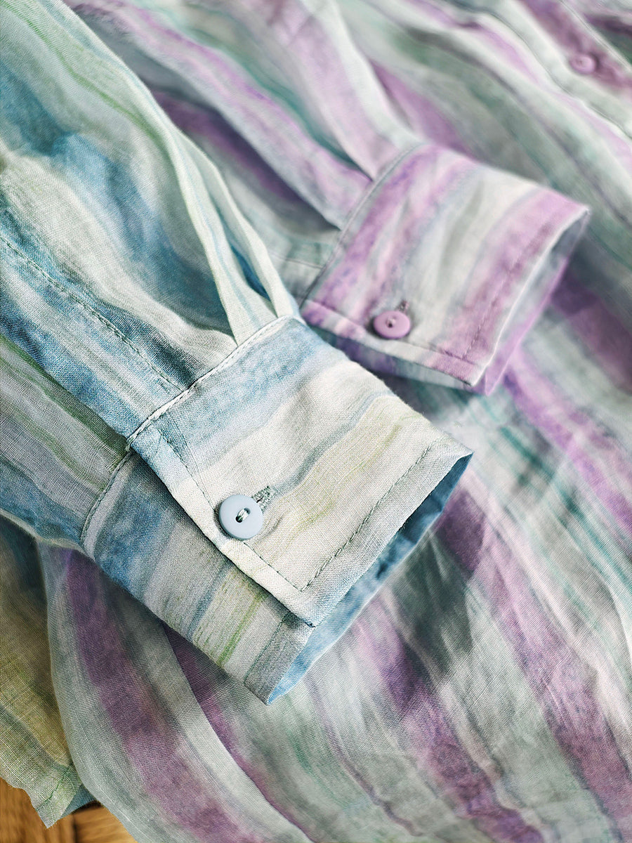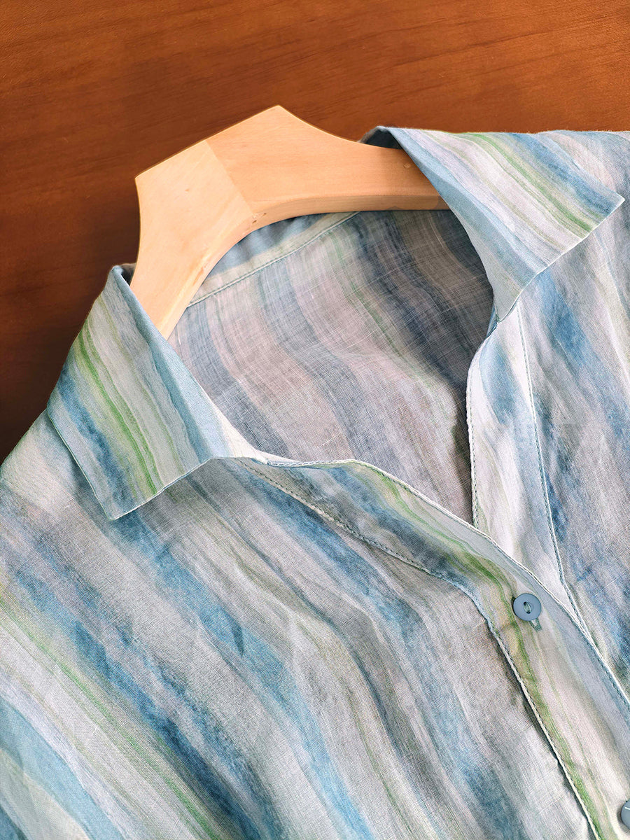Camicetta da donna estiva a righe artistiche 100% ramia