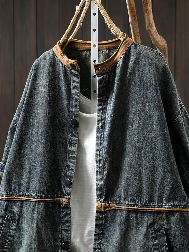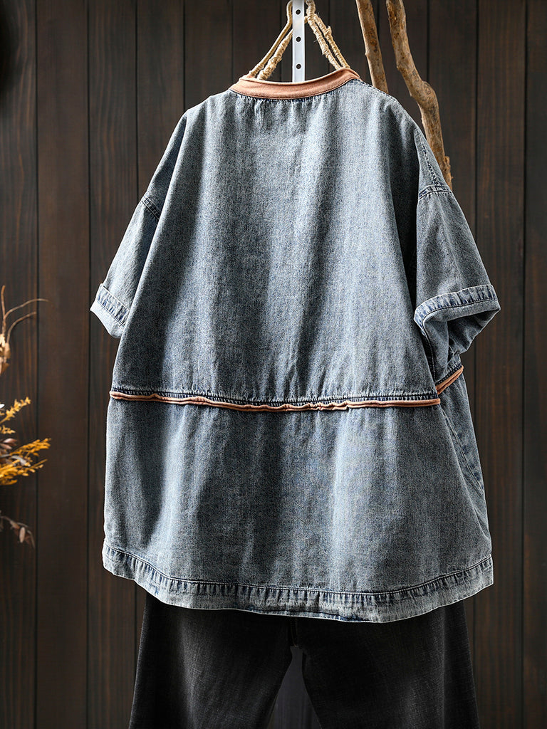 Camicia in denim con scollo a V e stampa colorblock casual estiva da donna