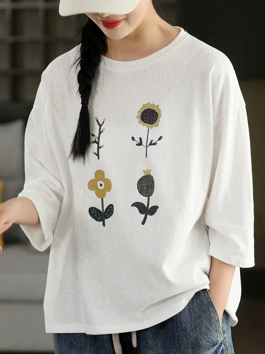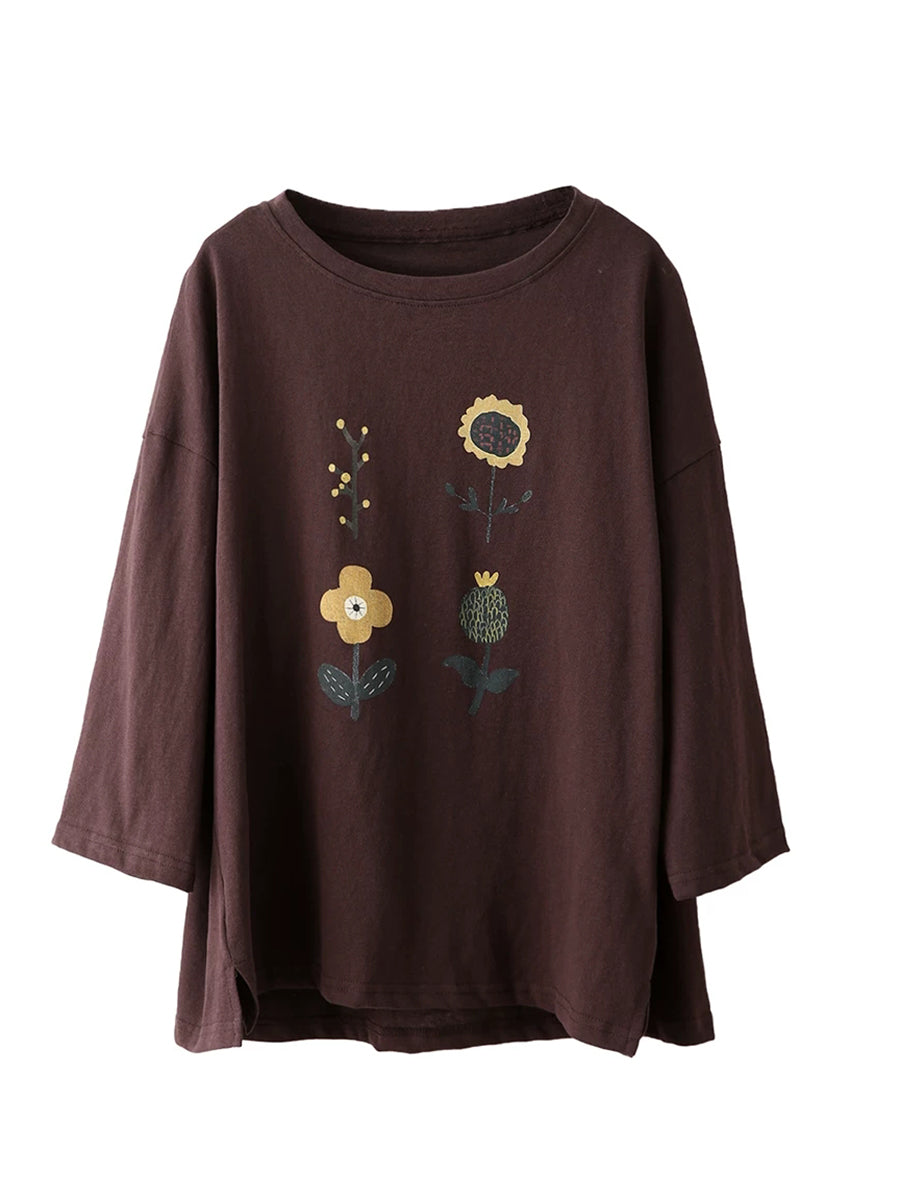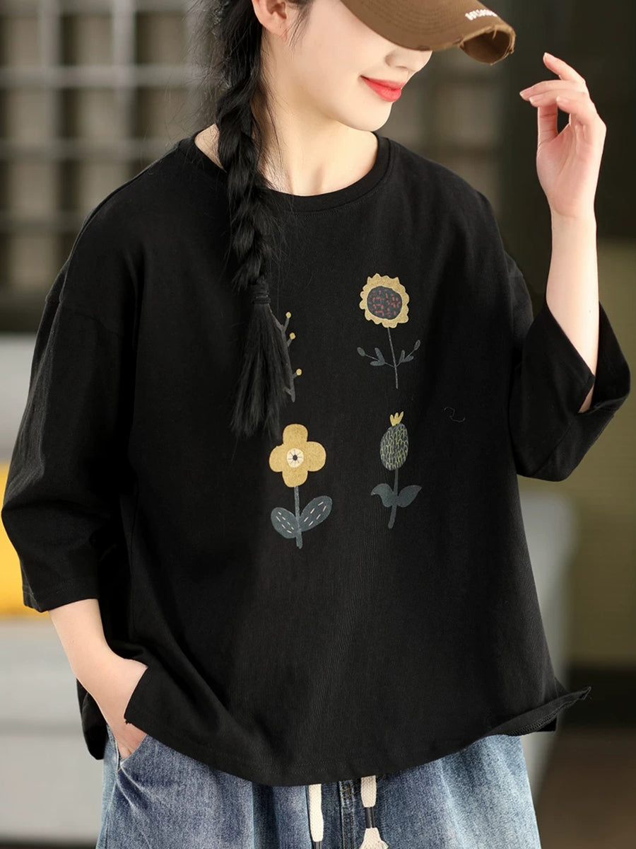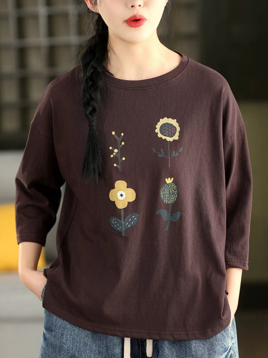 Camicetta estiva casual da donna con scollo a O e stampa floreale.