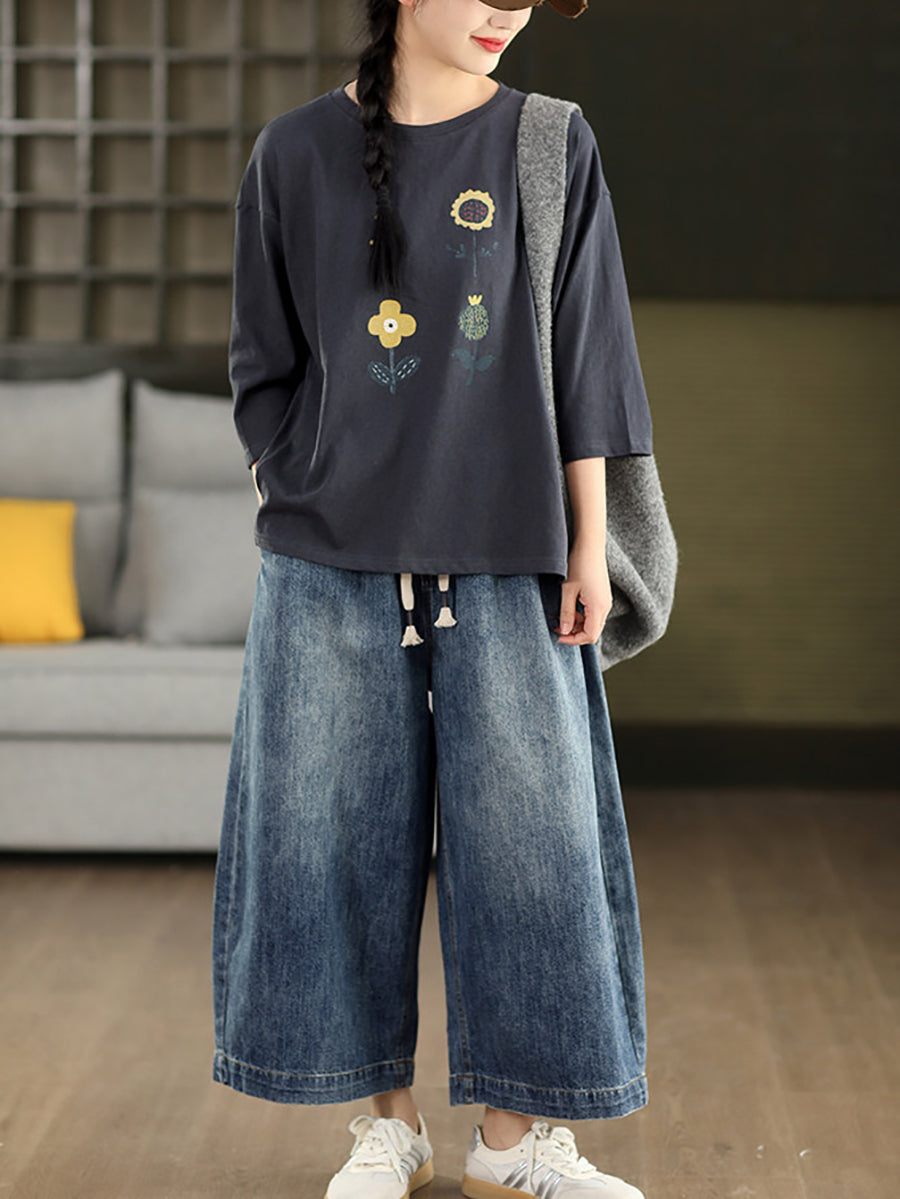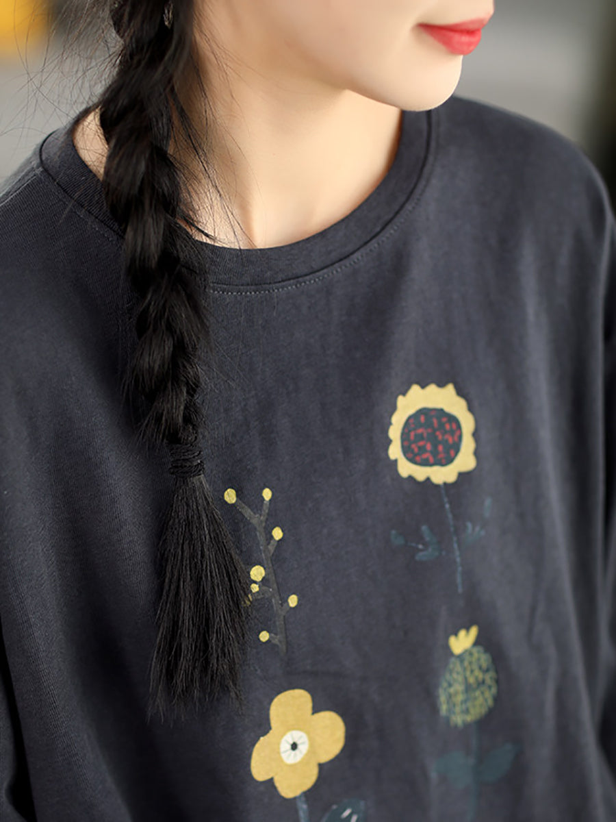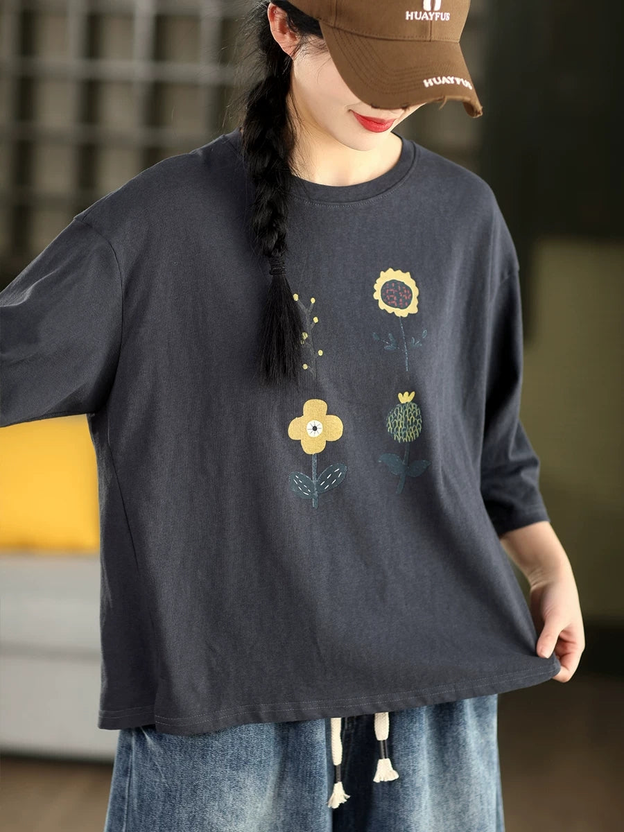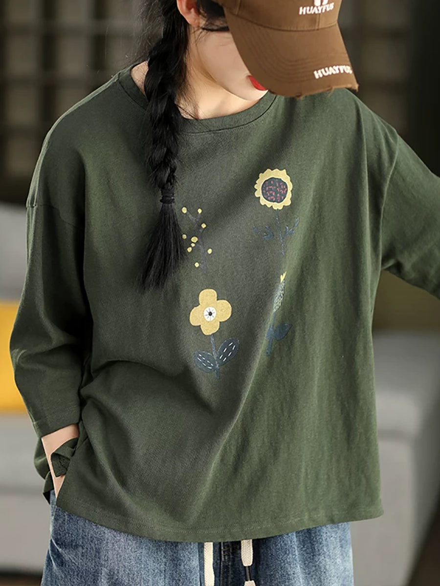 Camicetta estiva casual da donna con scollo a O e stampa floreale.