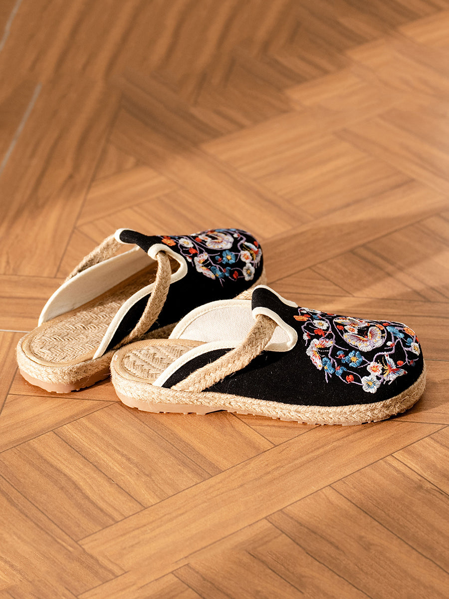 Pantofole da donna estive in tela con ricamo a farfalla etnica.