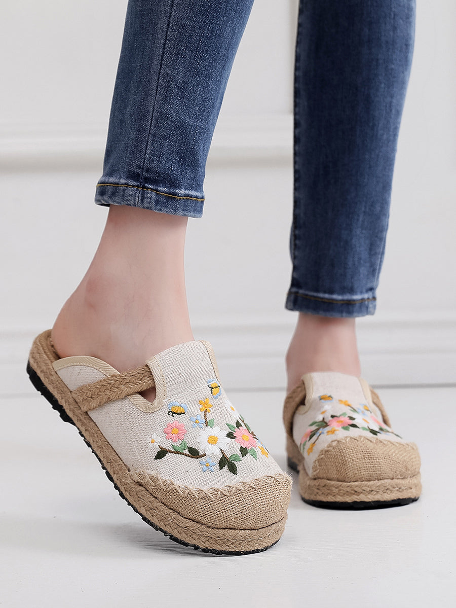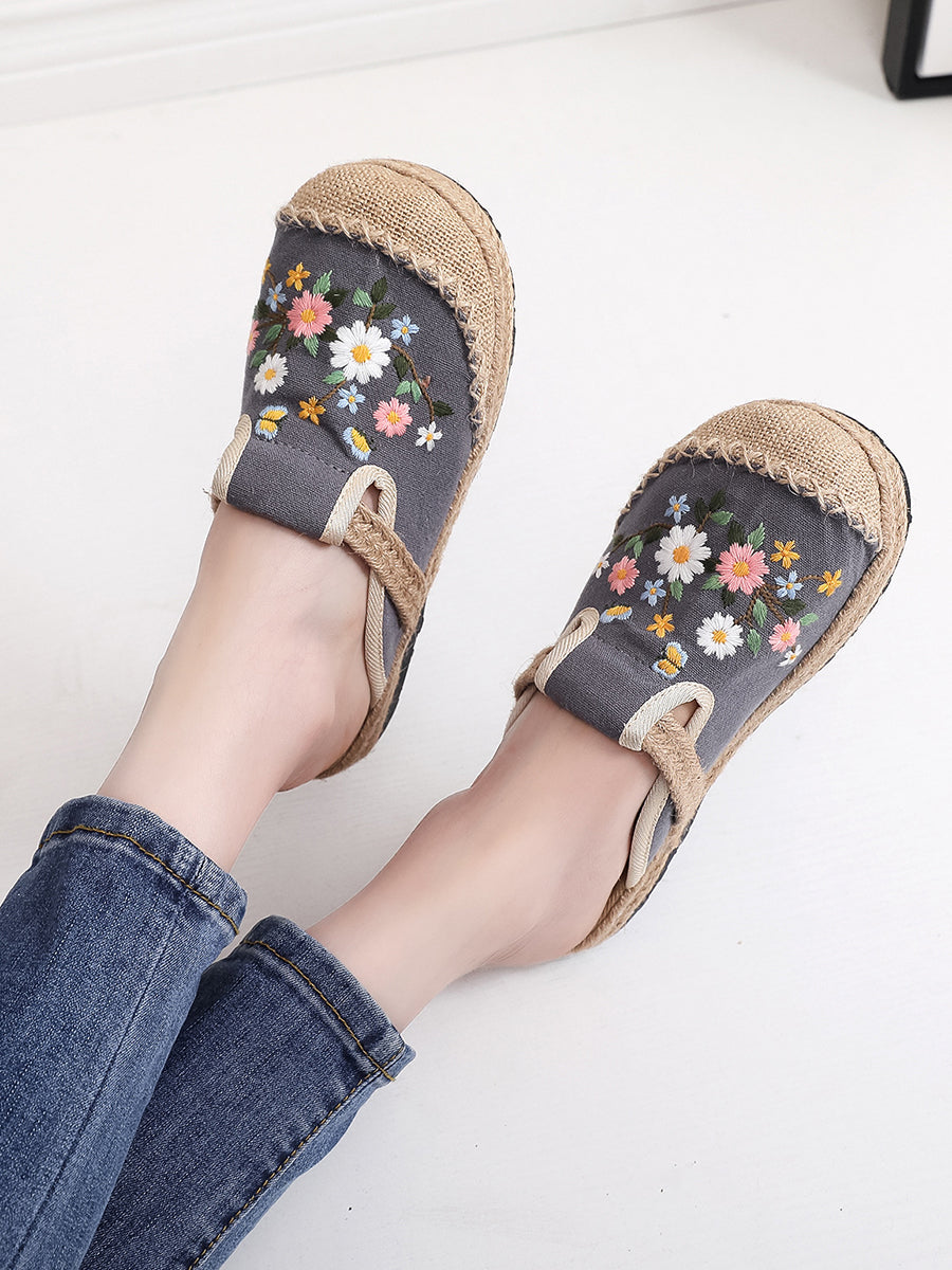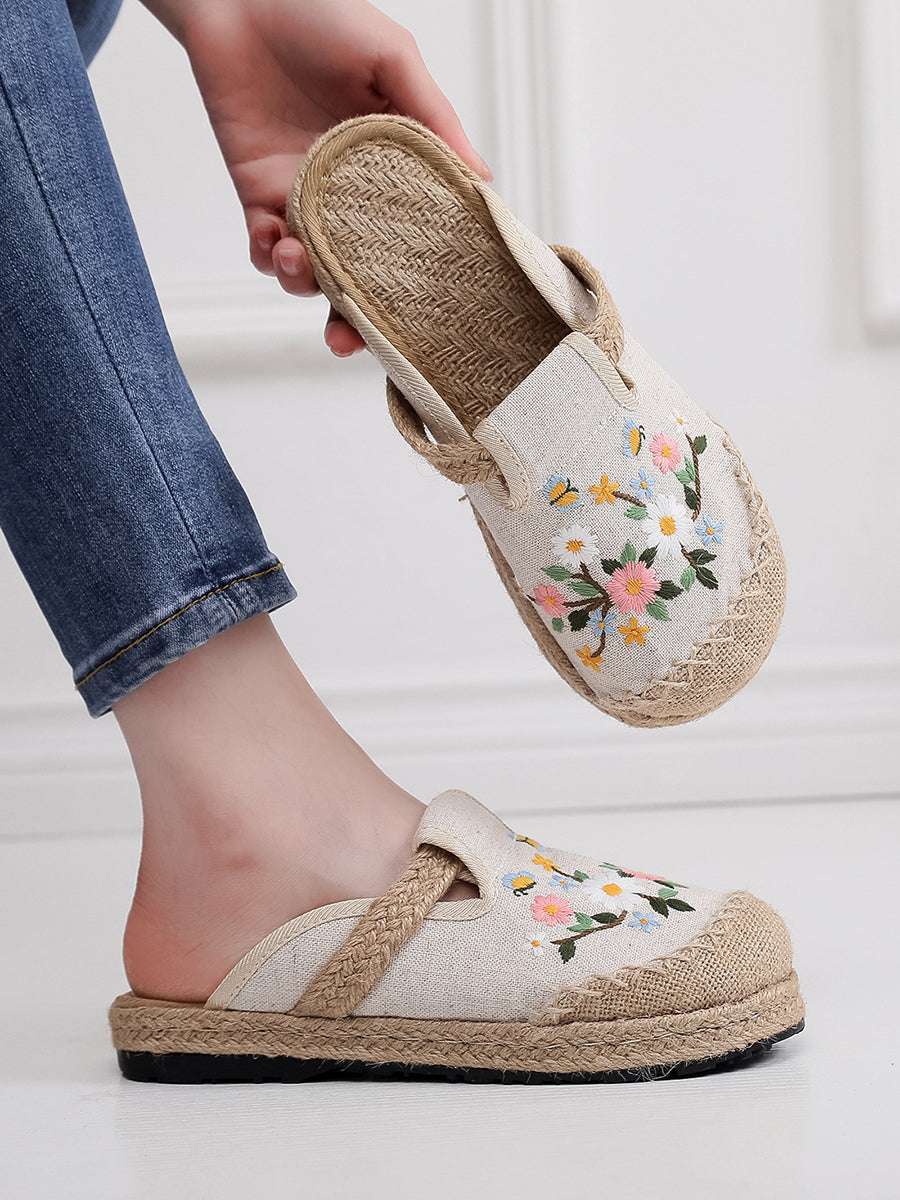 Pantofole da donna estive in tela etnica con ricami floreali.