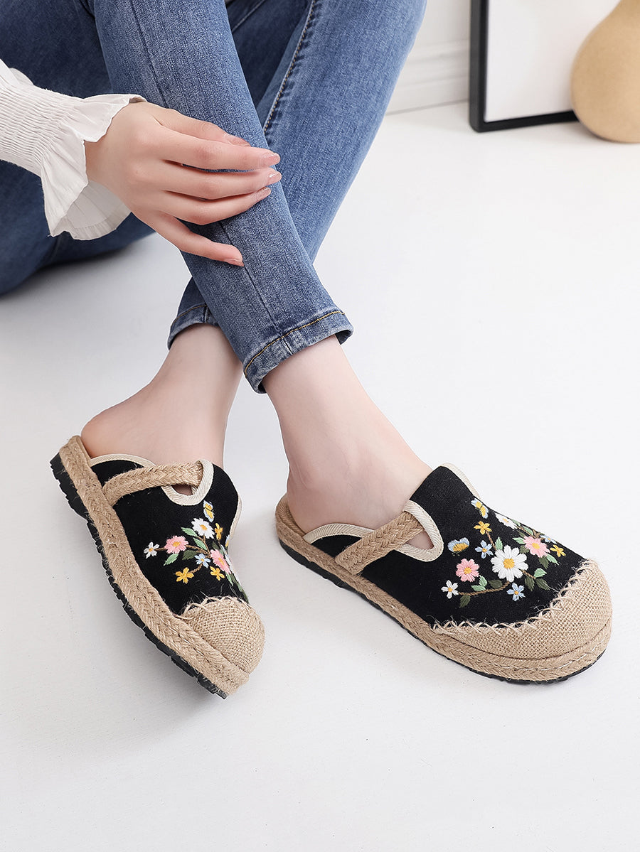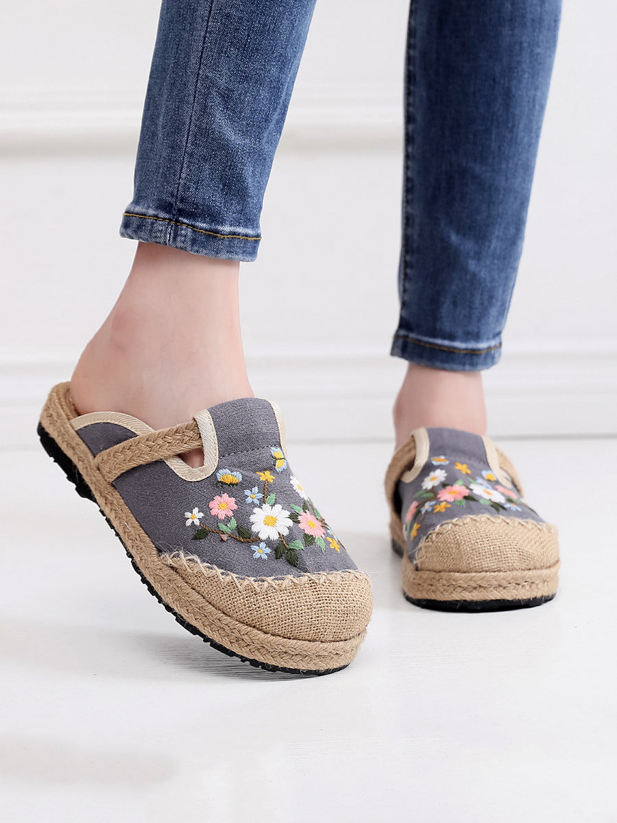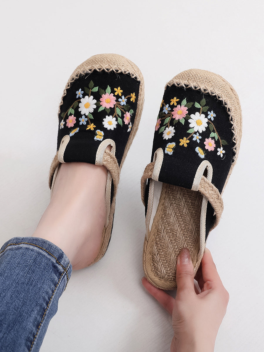 Pantofole da donna estive in tela etnica con ricami floreali.