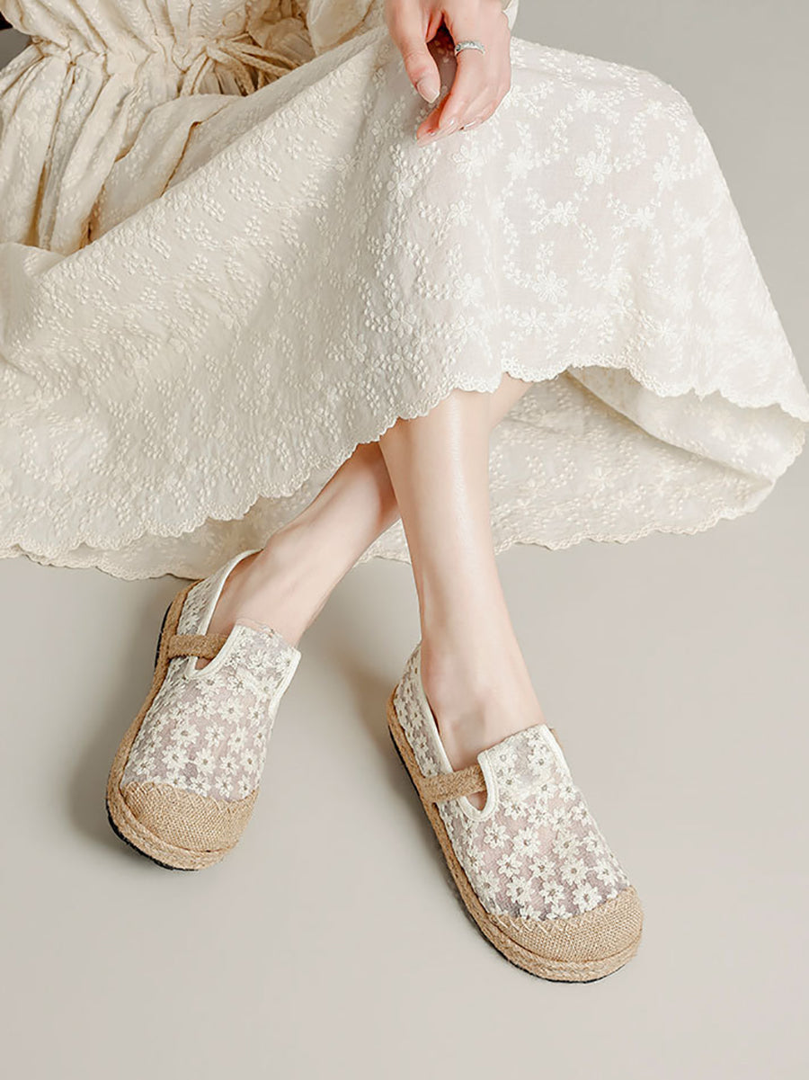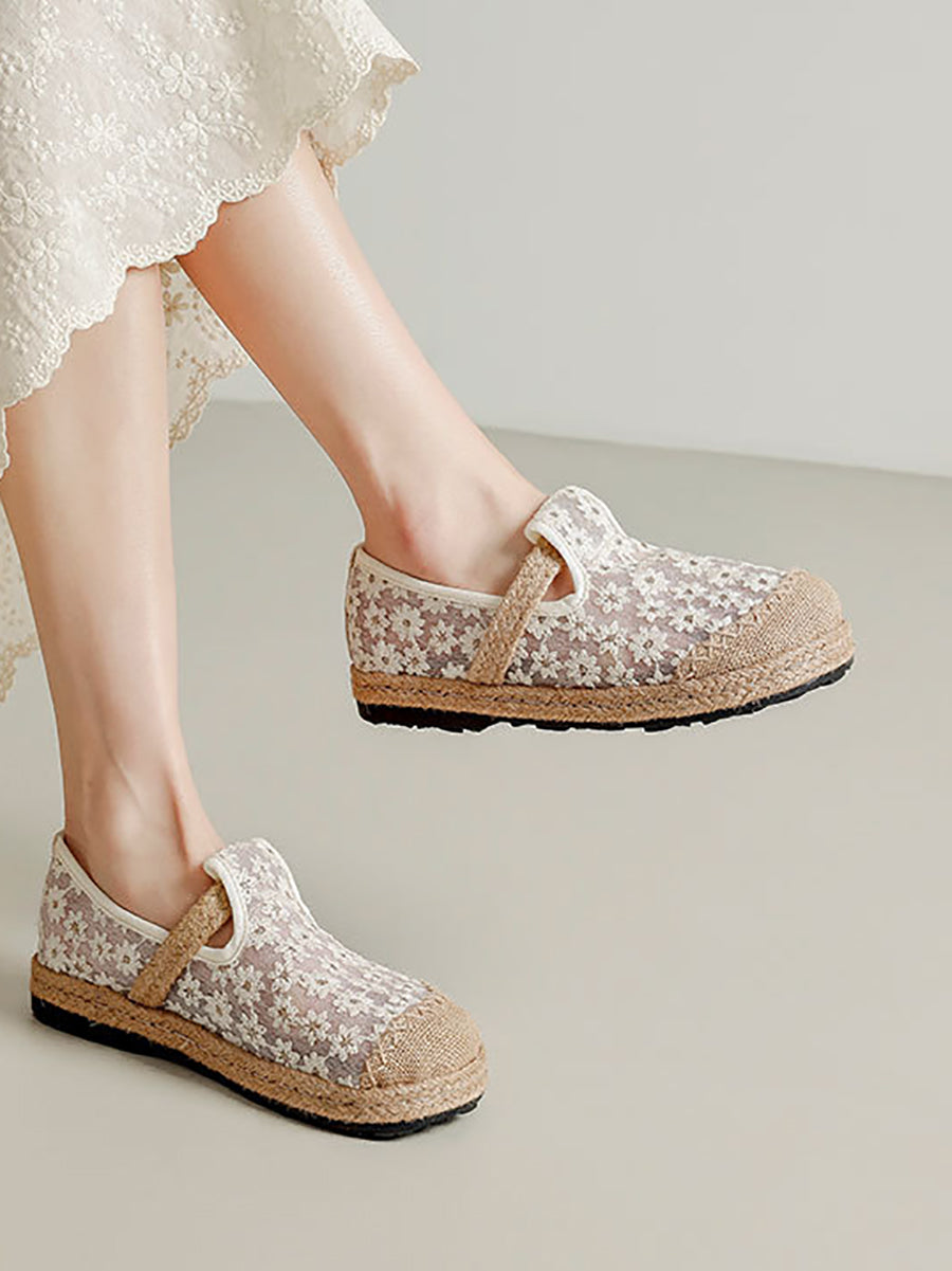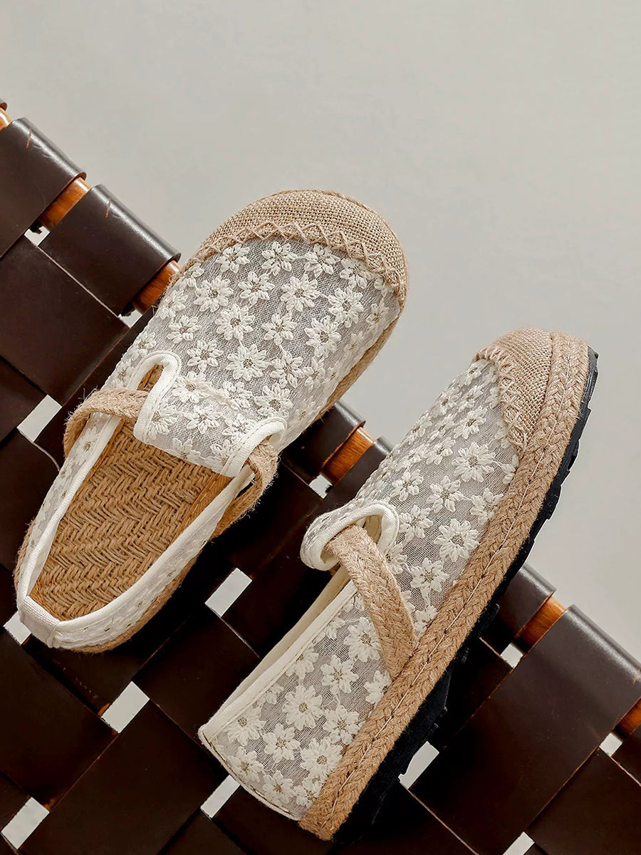 Scarpe basse estive da donna in stile etnico con ricami floreali.