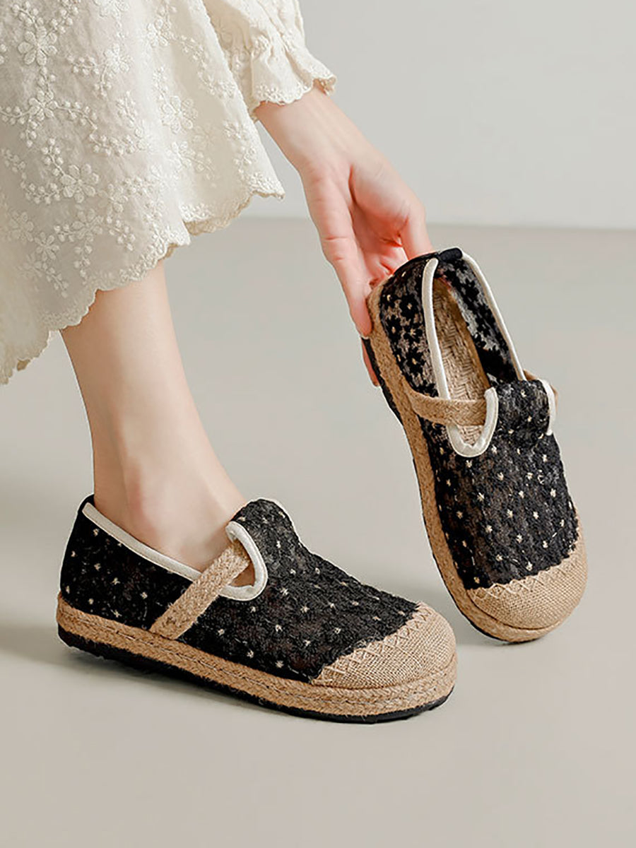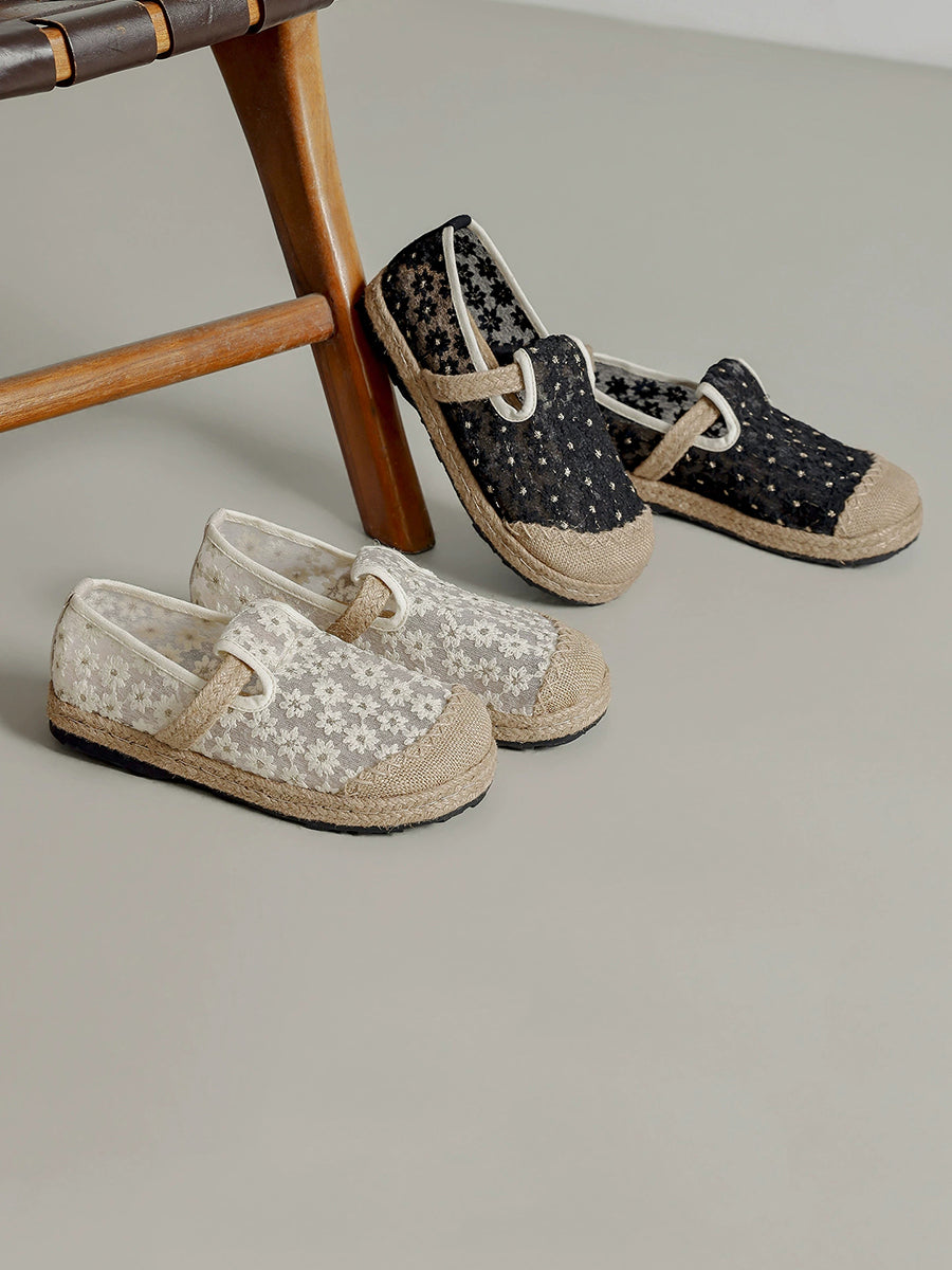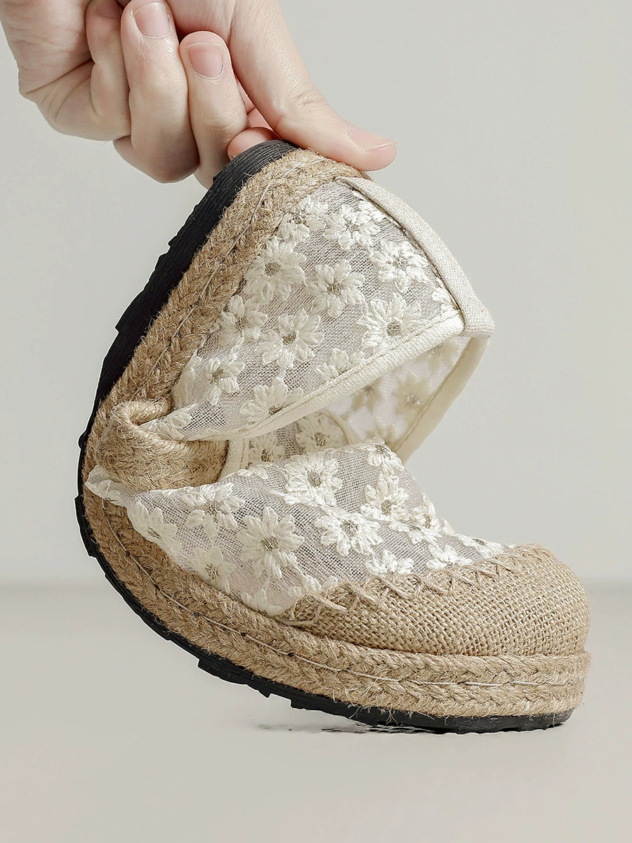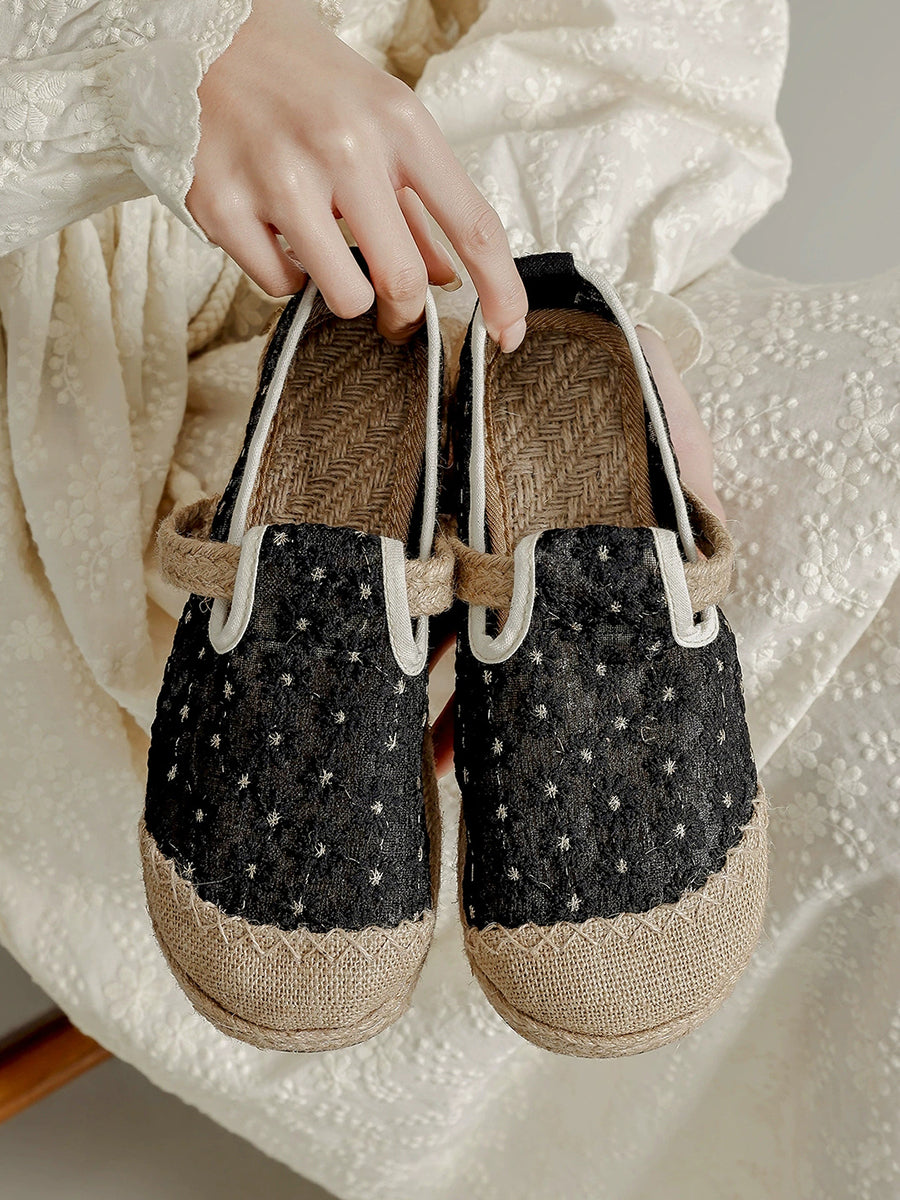Scarpe basse estive da donna in stile etnico con ricami floreali.