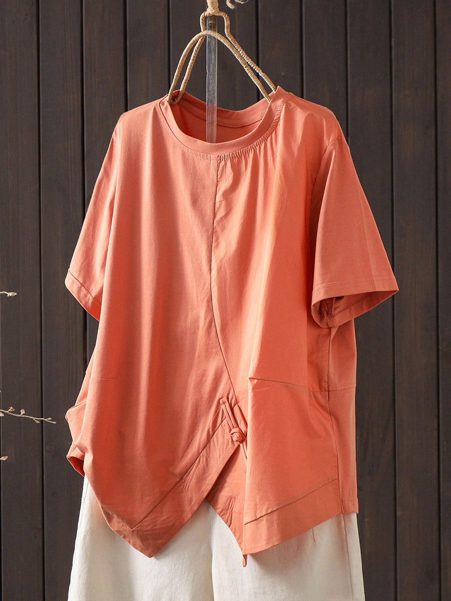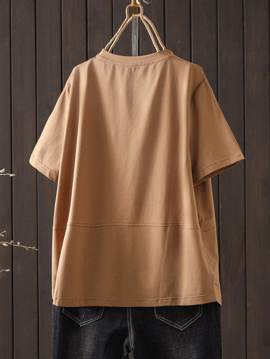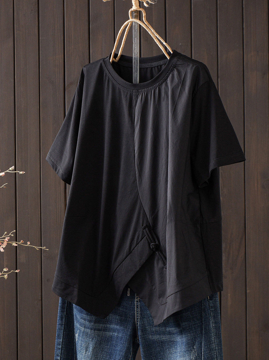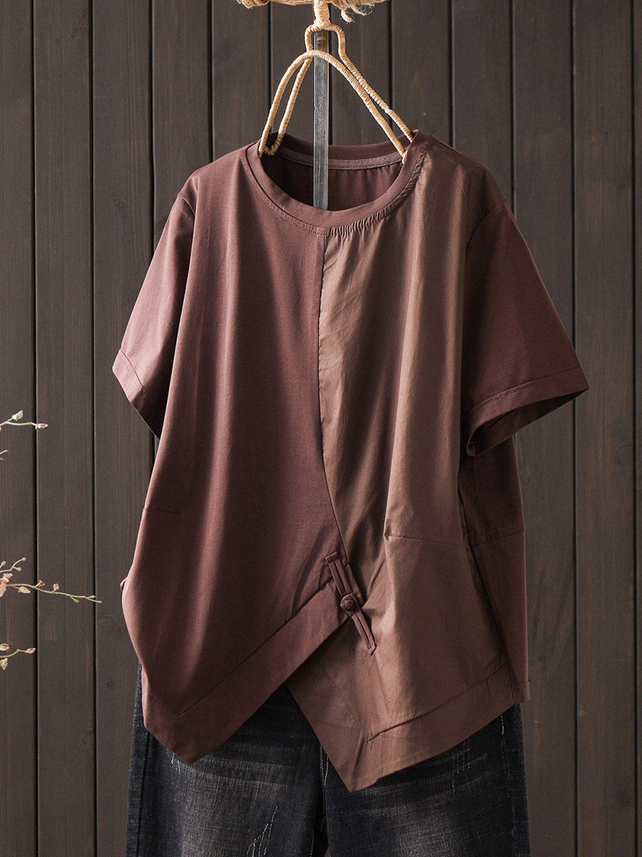 T-shirt da donna estiva etnica con orlo irregolare e scollo a O
