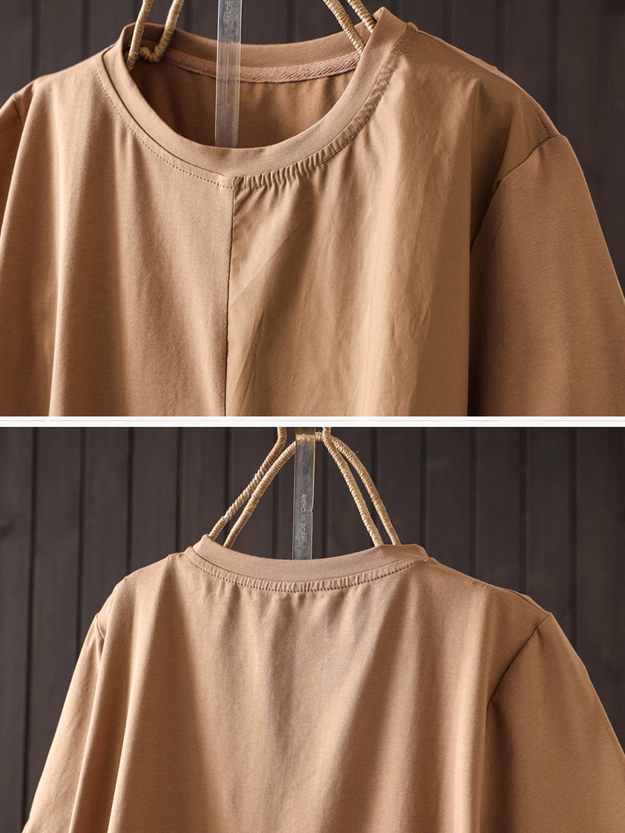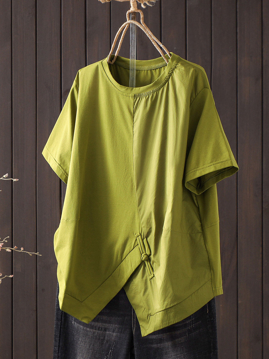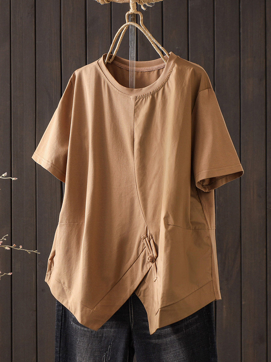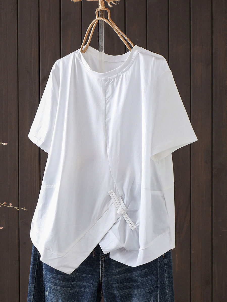 T-shirt da donna estiva etnica con orlo irregolare e scollo a O