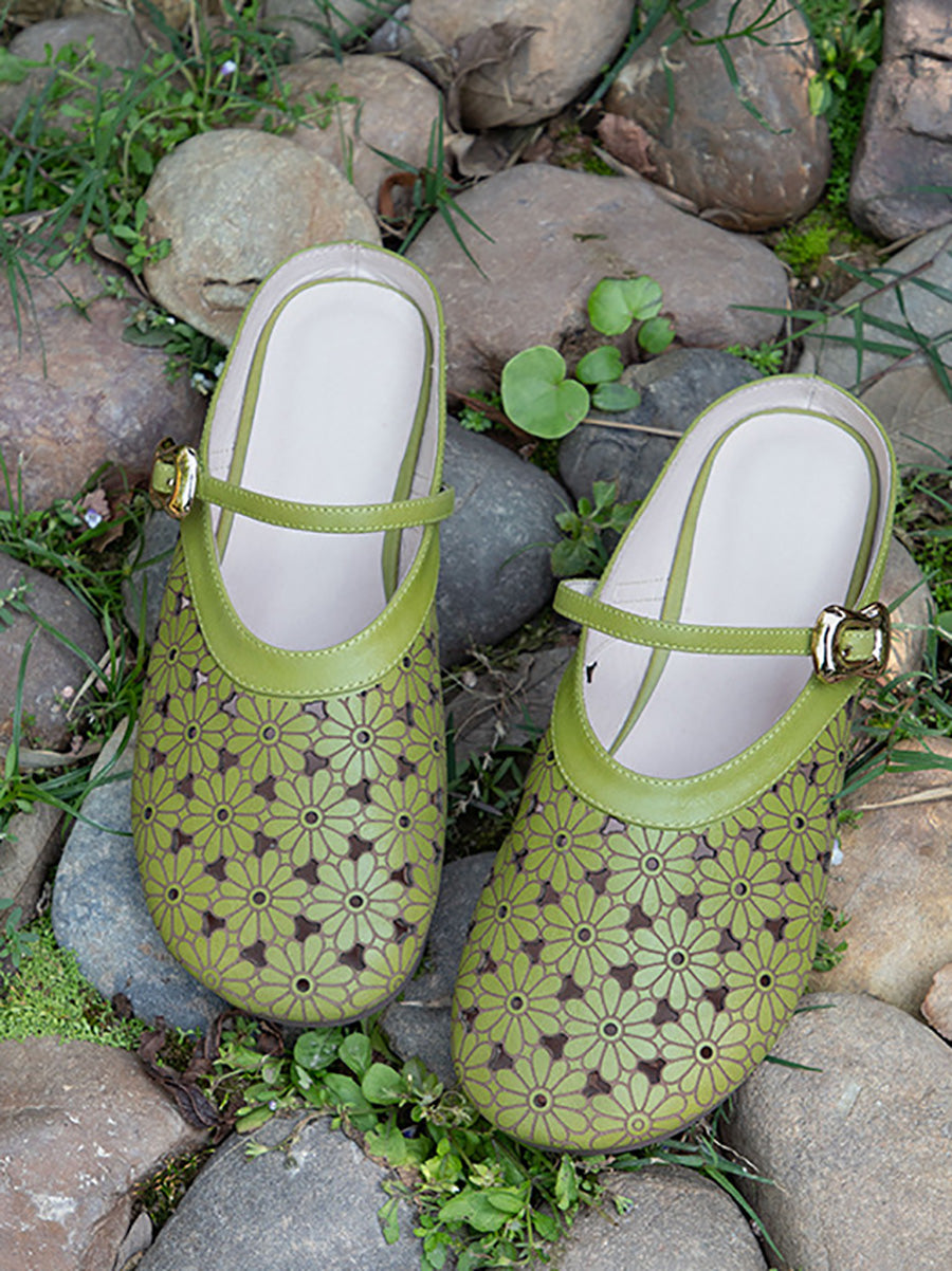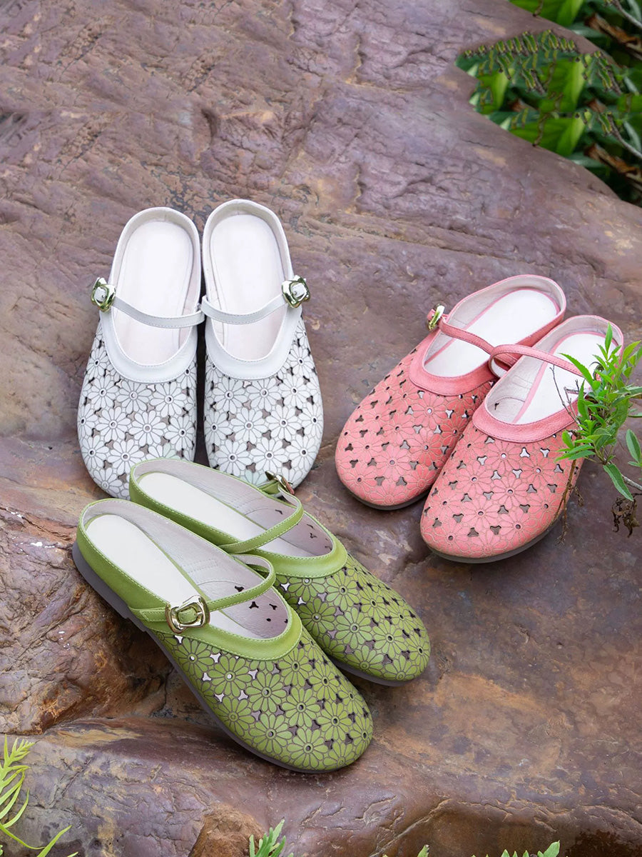 Ciabatte da donna estive in vera pelle con intaglio