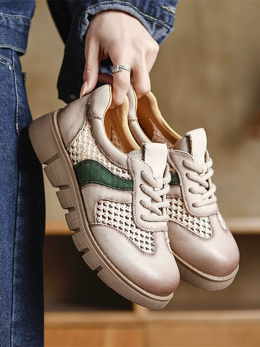 Scarpe basse estive da donna in vera pelle con inserti