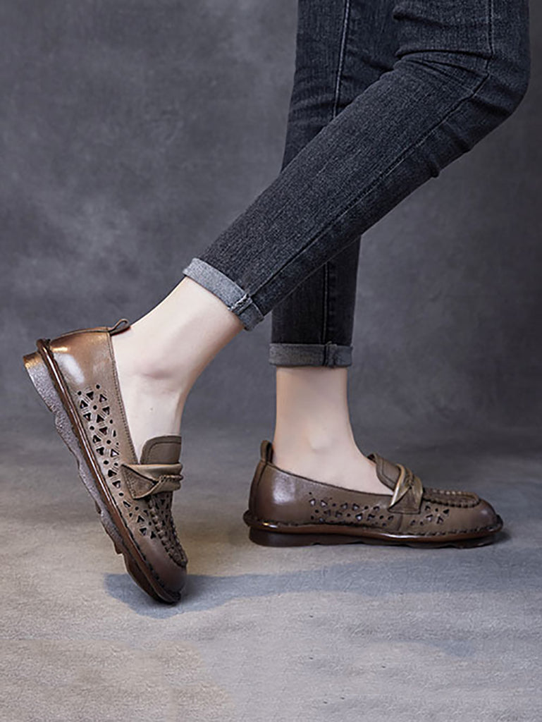 Scarpe estive da donna con tacco basso e cuciture in vera pelle