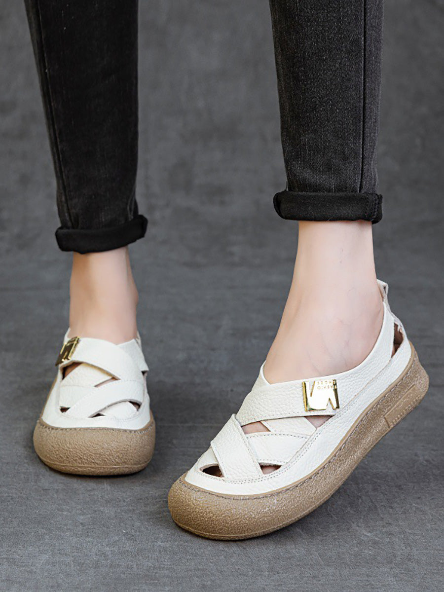Scarpe basse estive da donna in pelle intrecciata
