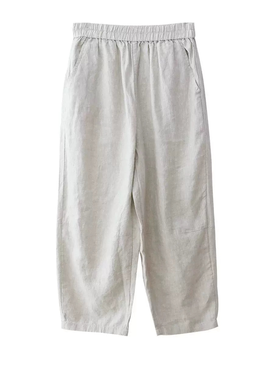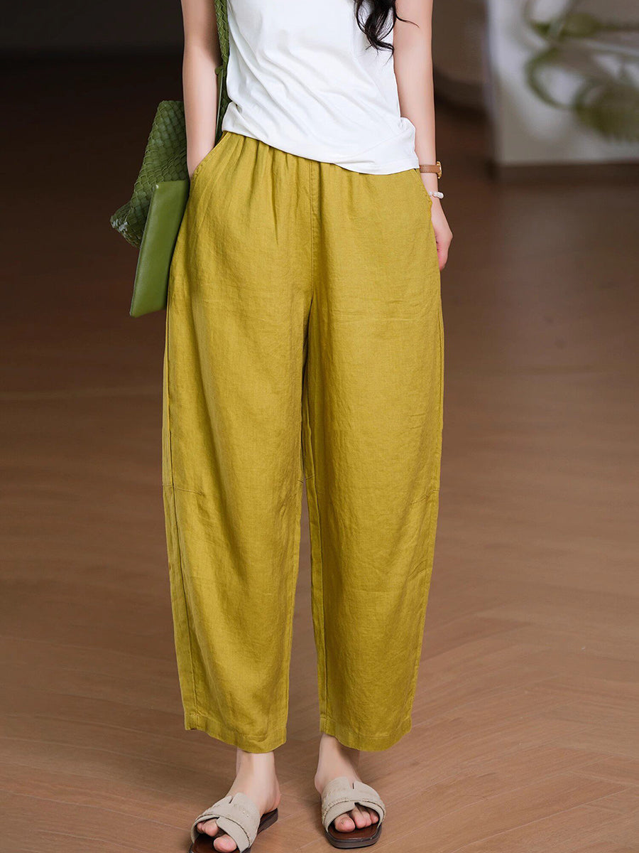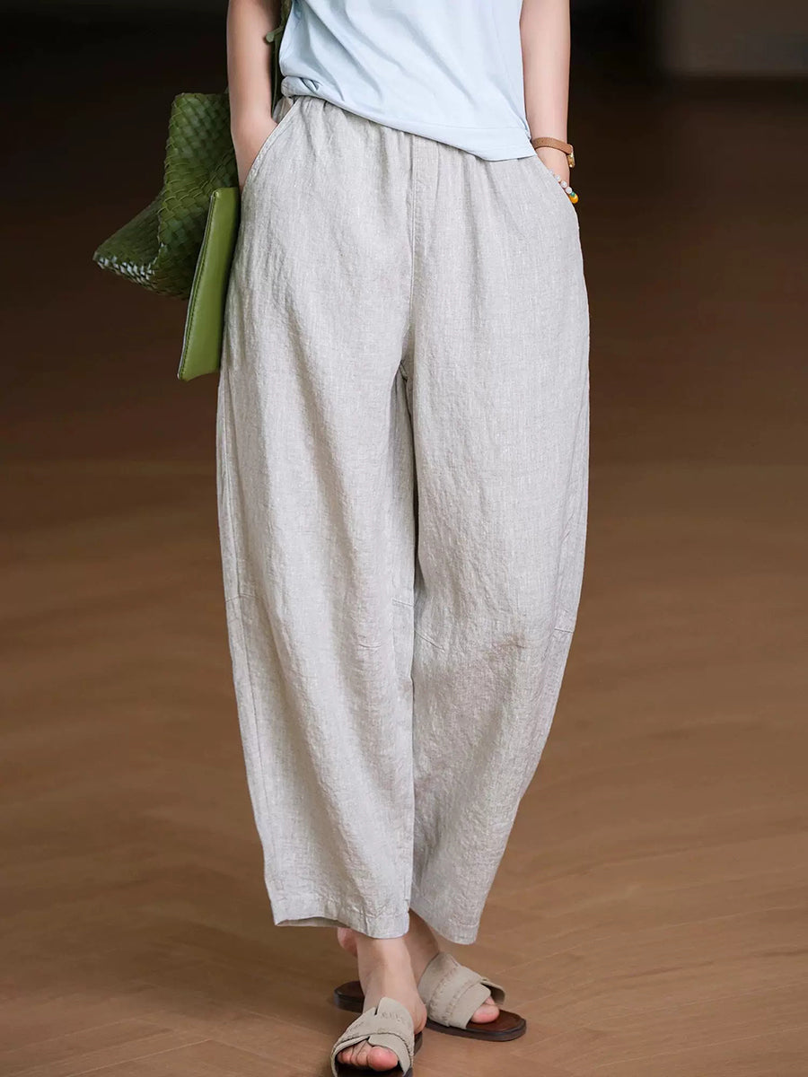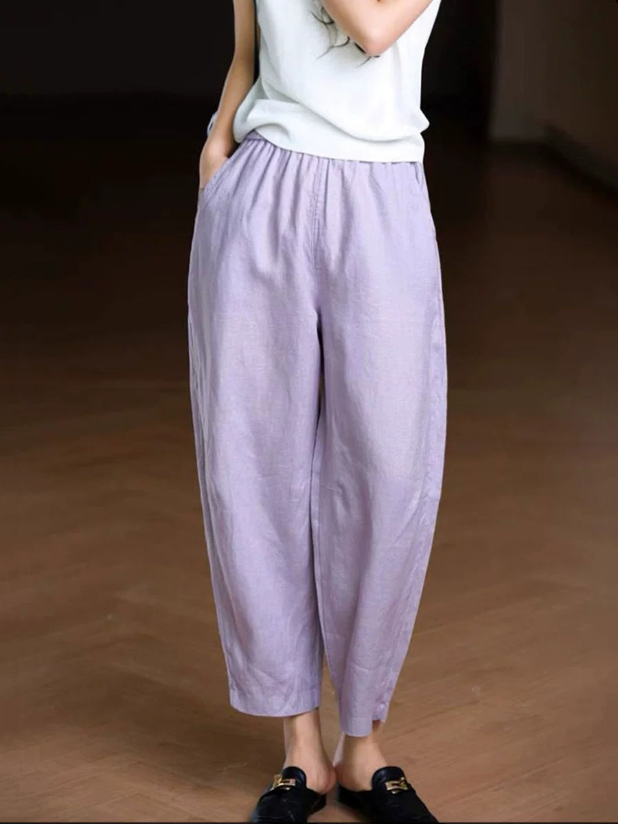Pantaloni harem da donna estivi in tinta unita 100% lino
