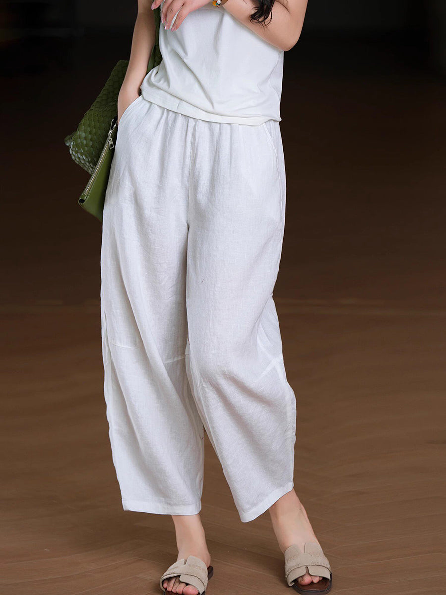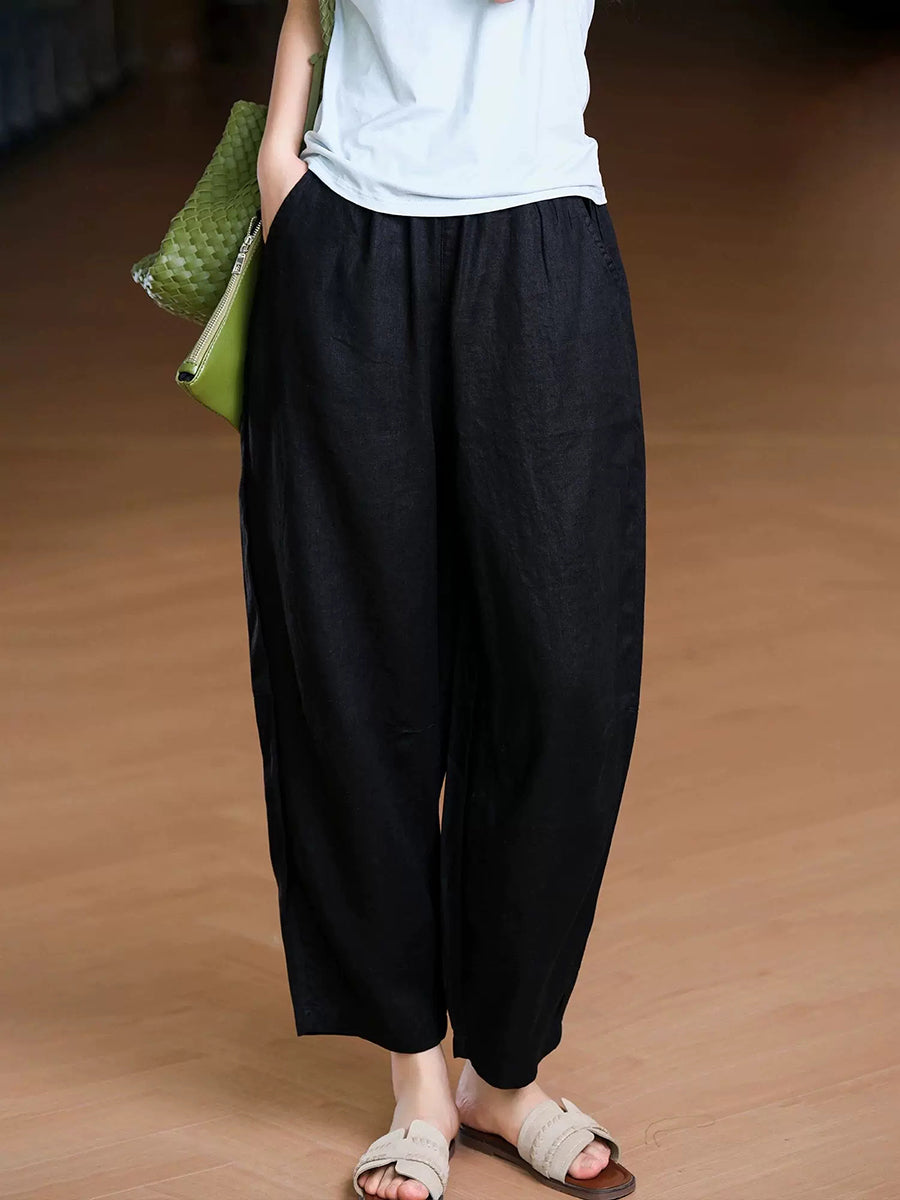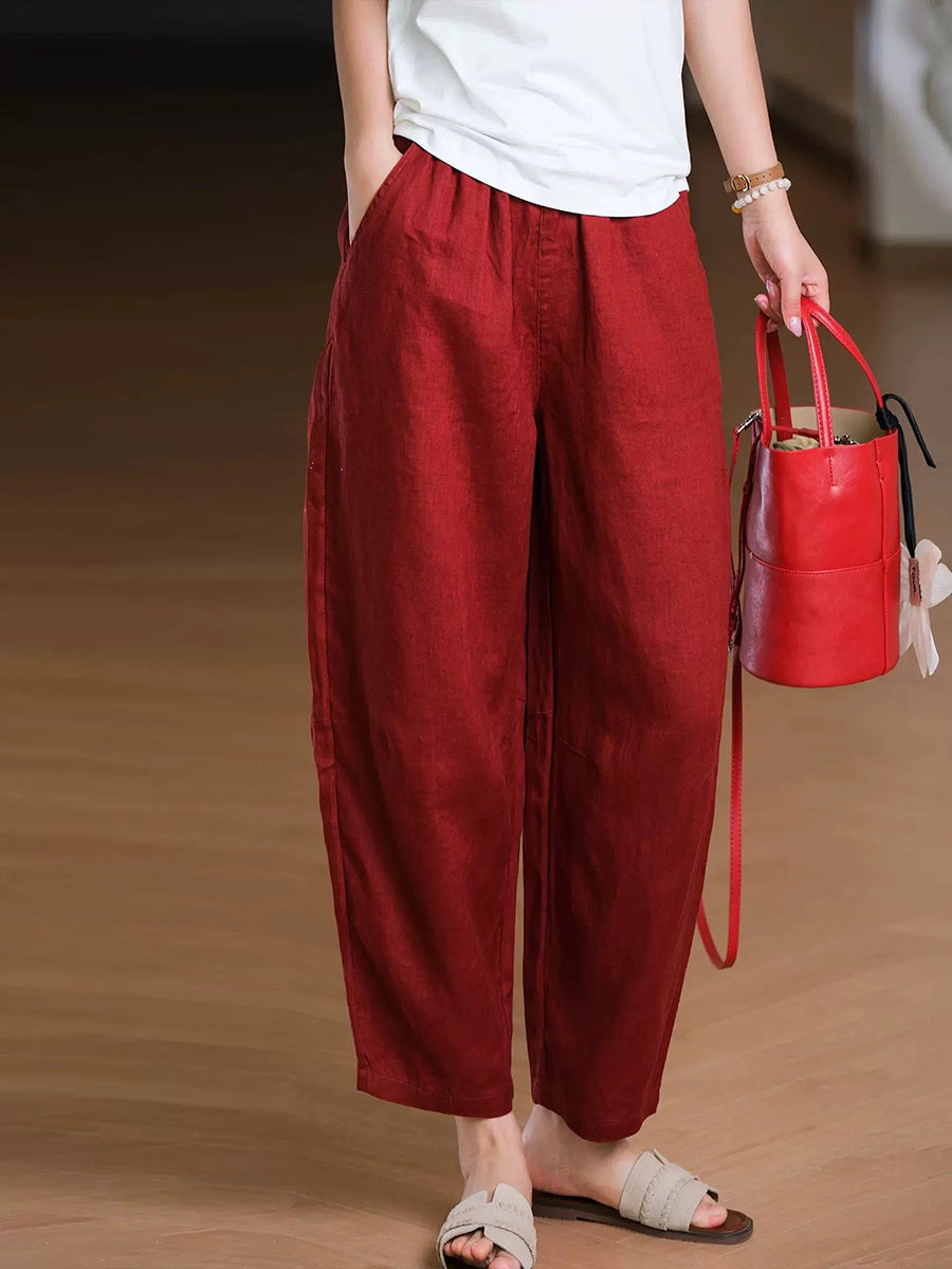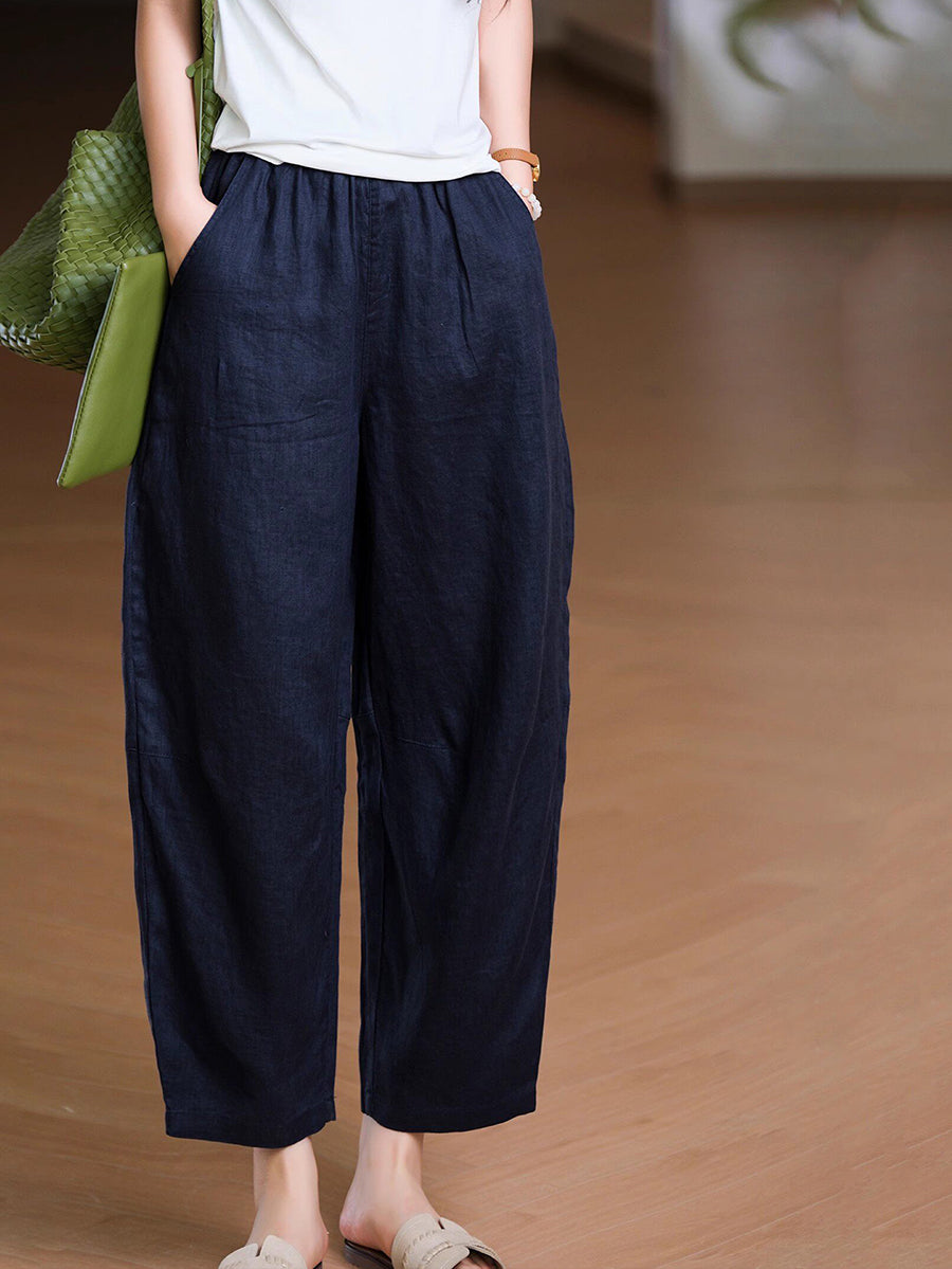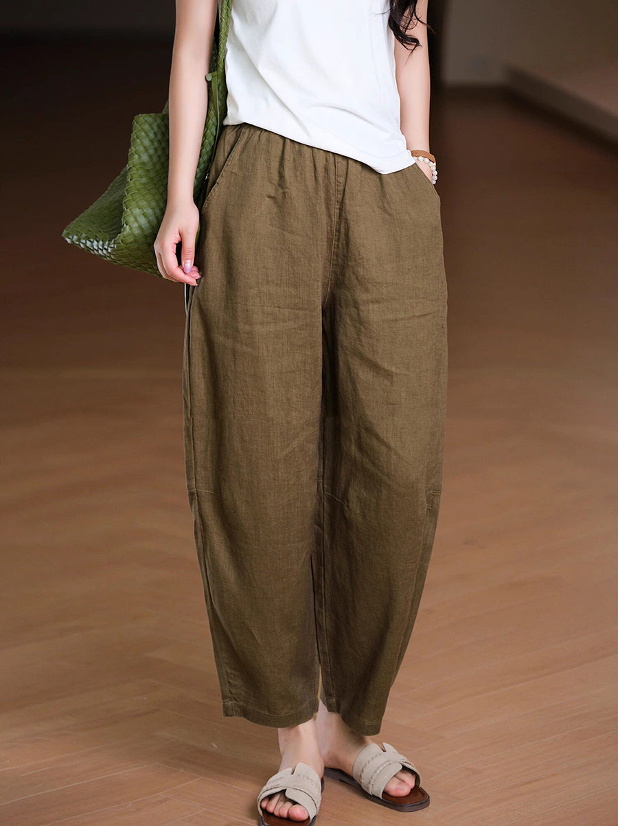 Pantaloni harem da donna estivi in tinta unita 100% lino