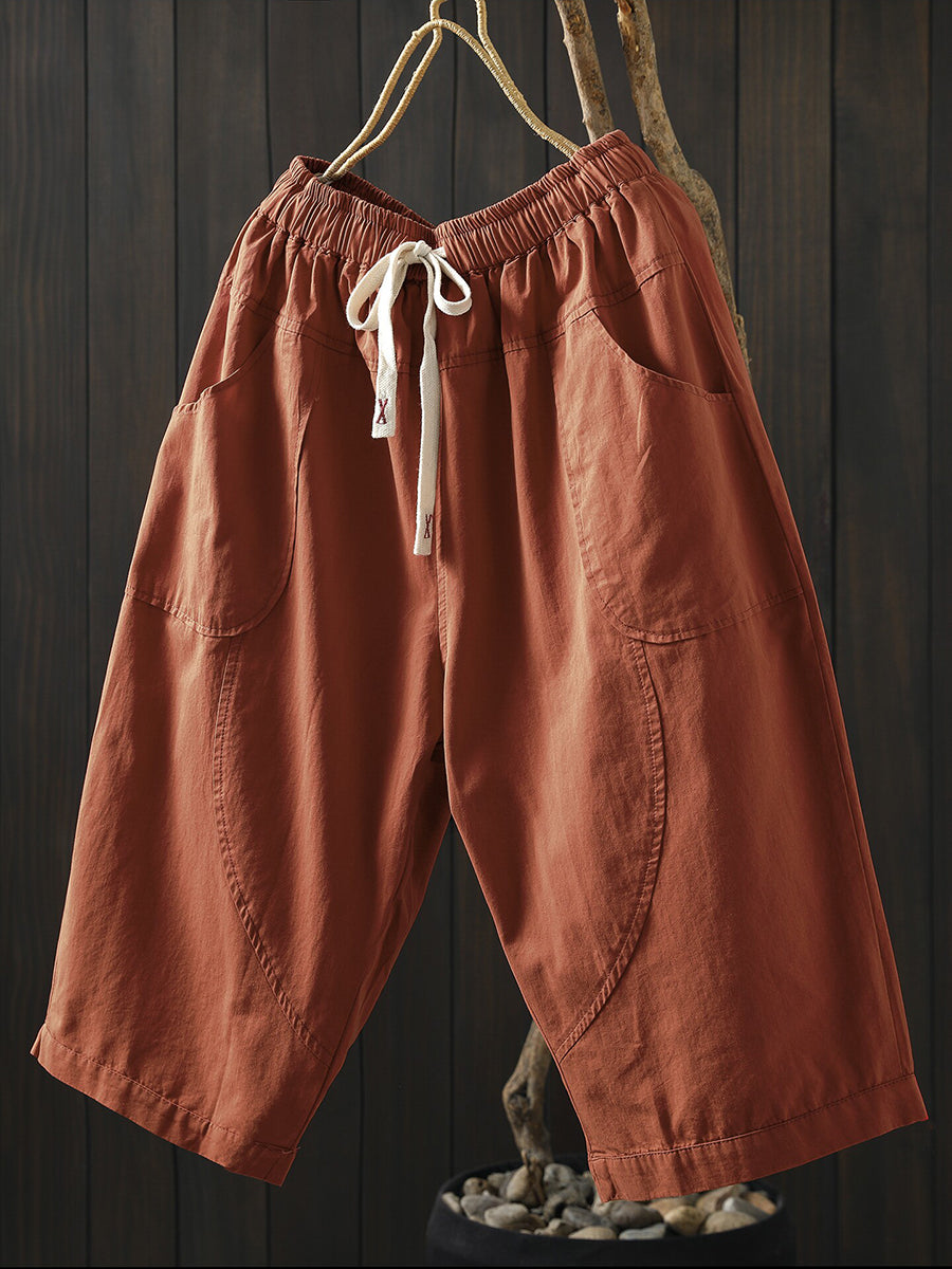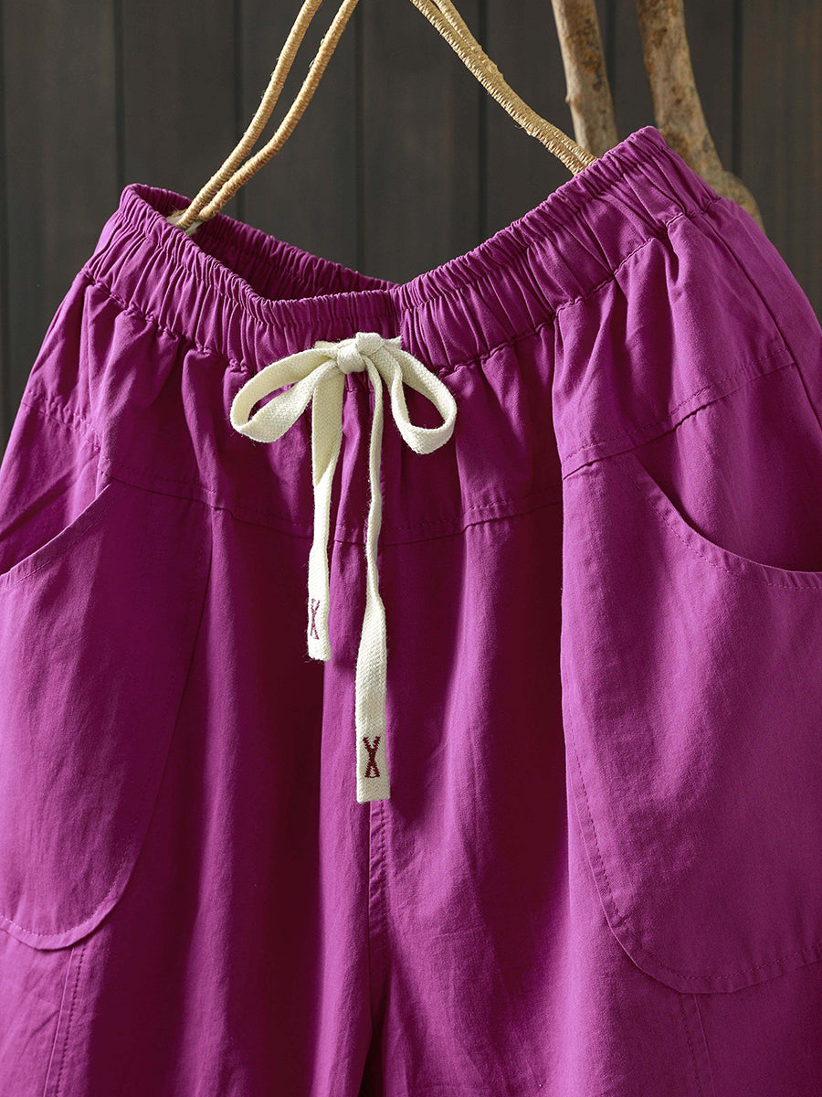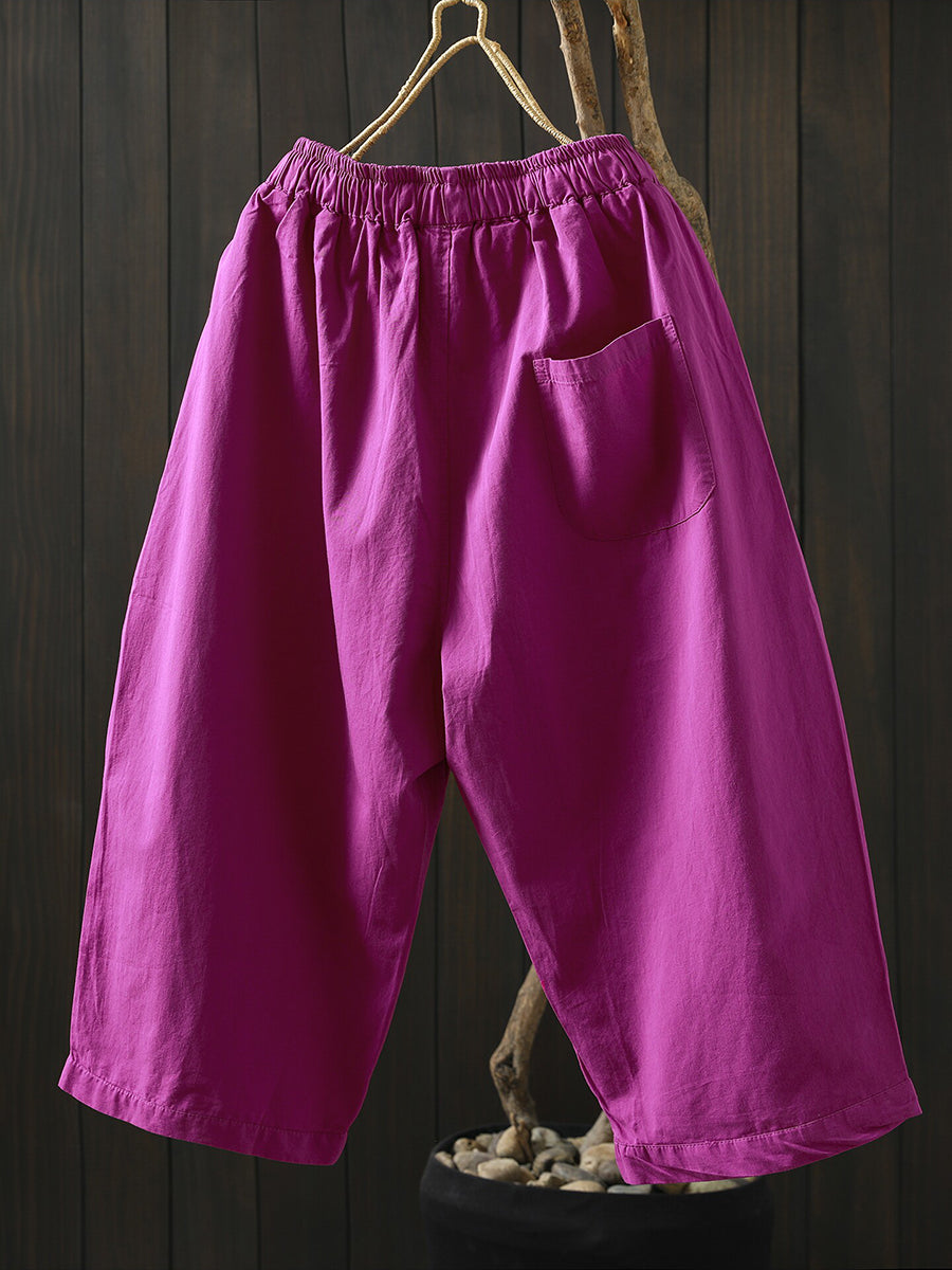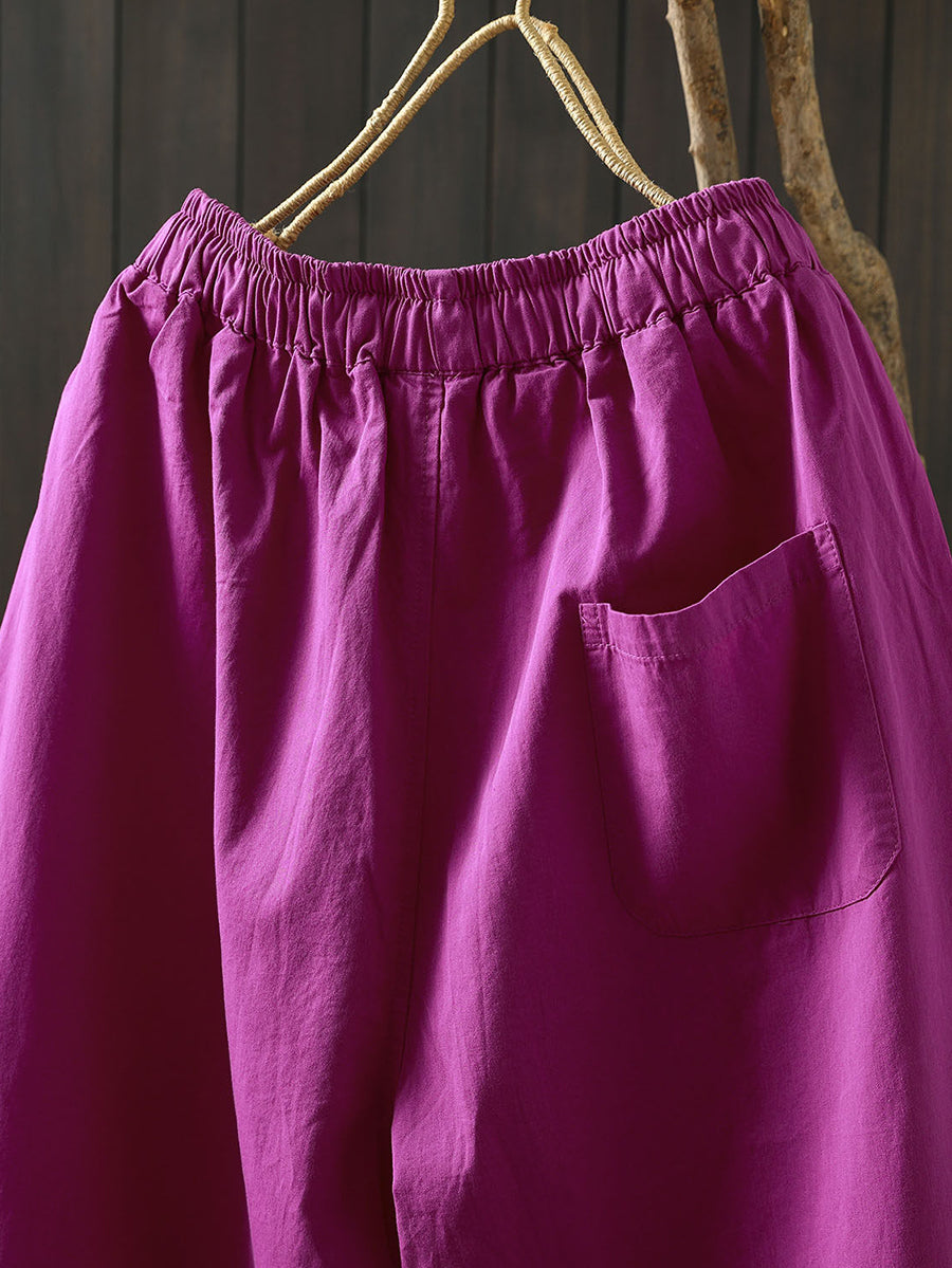 Pantaloni da donna estivi a gamba larga in cotone tinta unita
