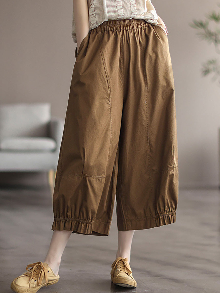 Pantaloni capri da donna estivi a gamba larga in tinta unita