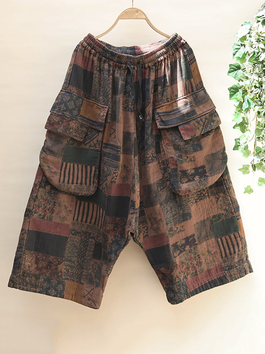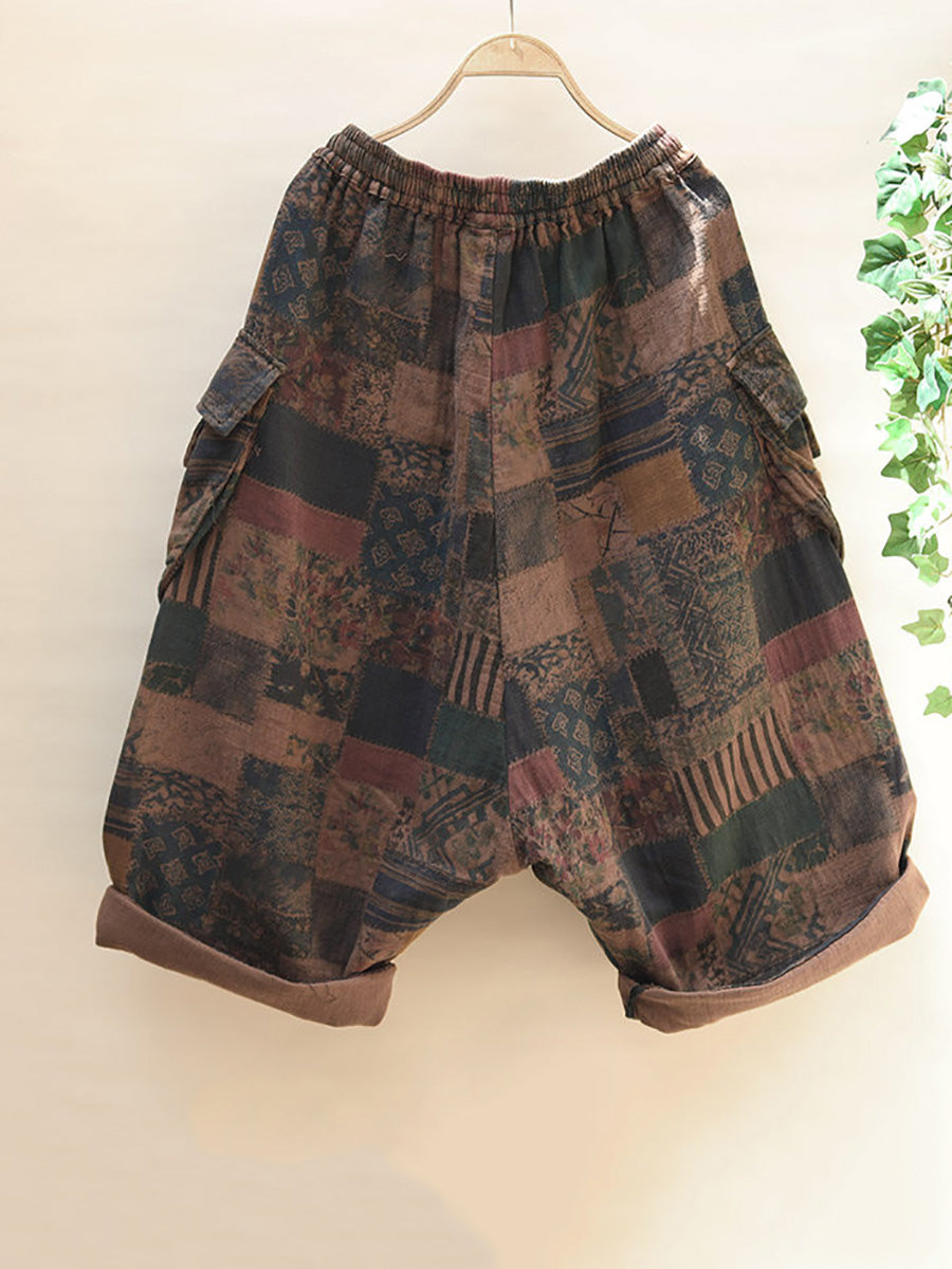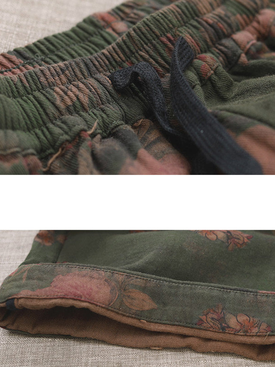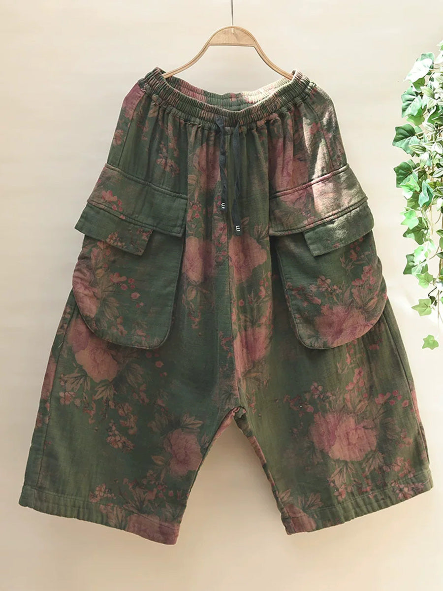 Pantaloni da donna estivi in cotone a gamba larga con stampa floreale retrò.