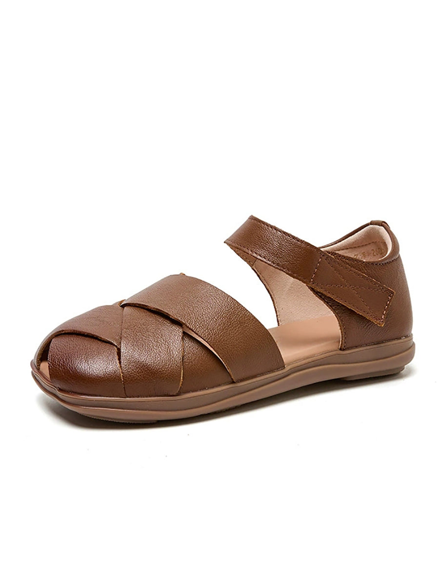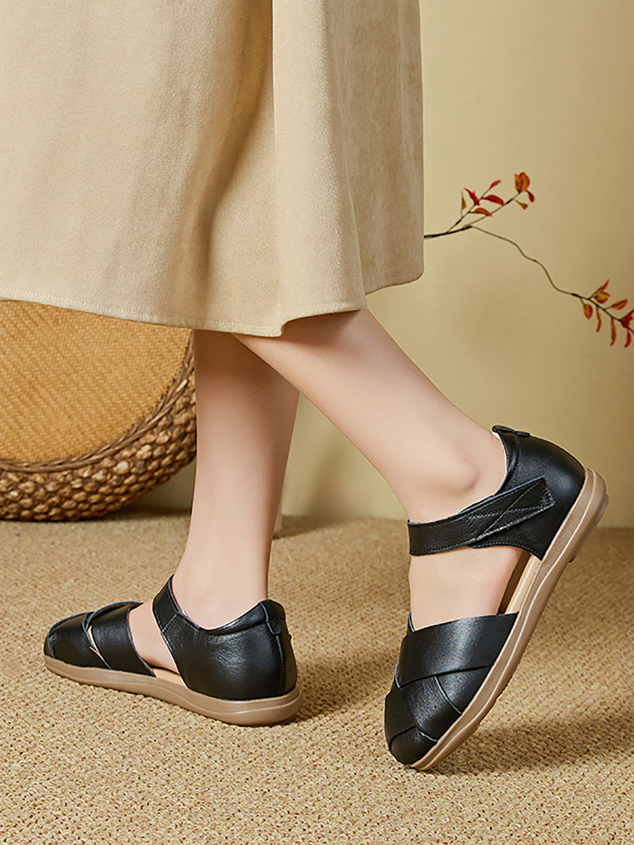 Sandali da donna estivi in stile retrò in vera pelle intrecciata