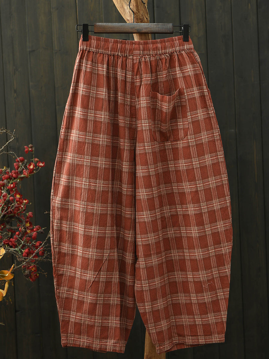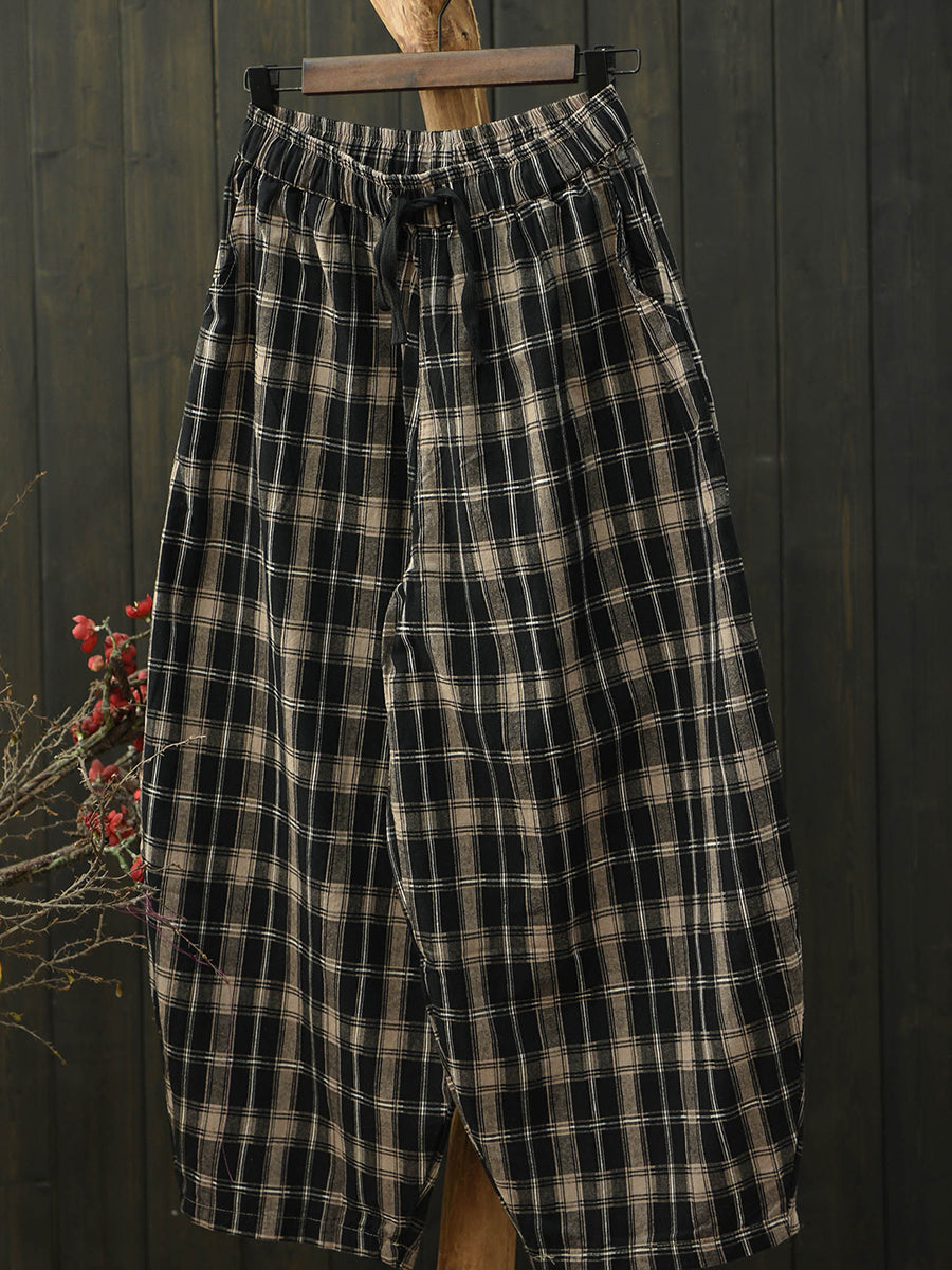 Pantaloni harem da donna estivi in cotone a quadri stile retrò