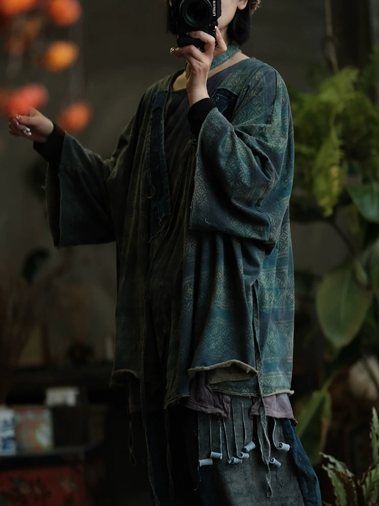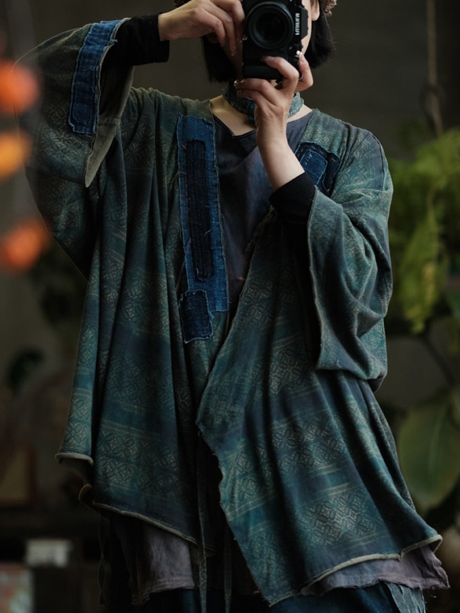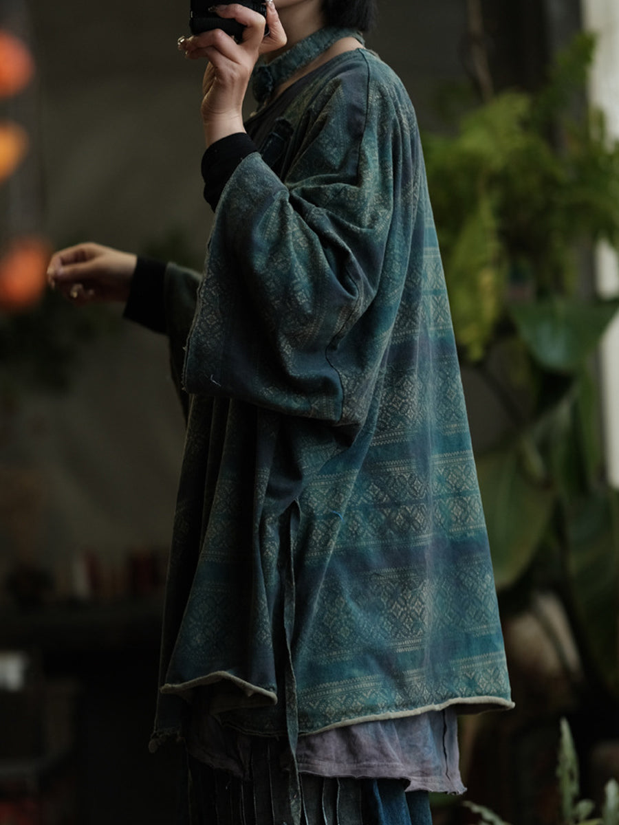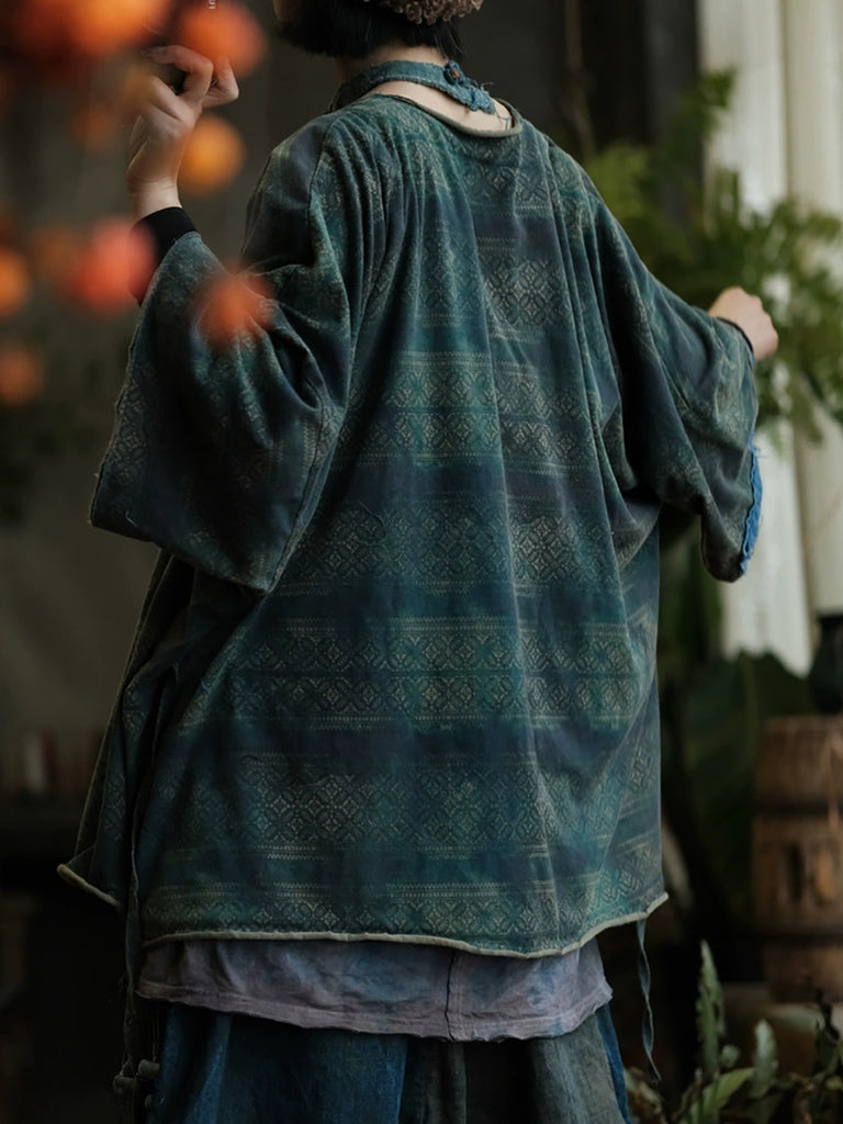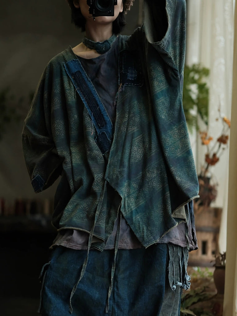 Camicia da donna in cotone con scollo a V e stampa retrò estiva