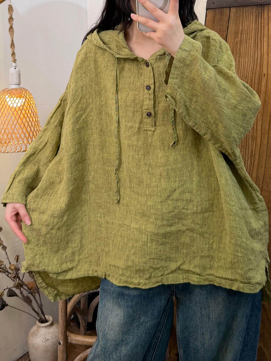 Camicetta da donna estiva in stile retrò a tinta unita con cappuccio