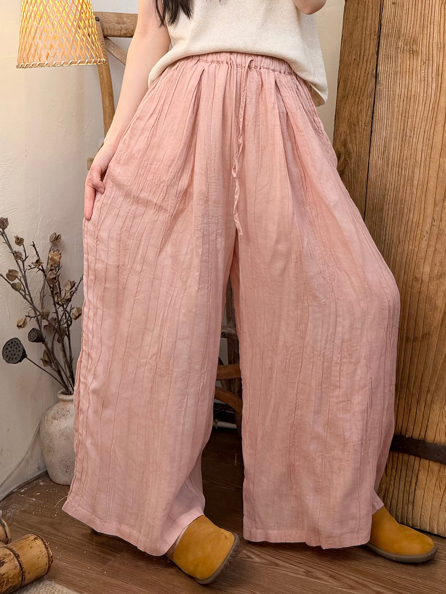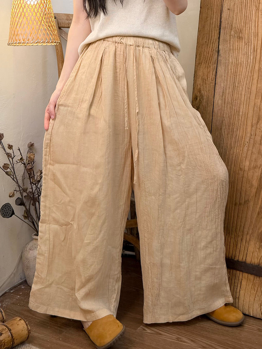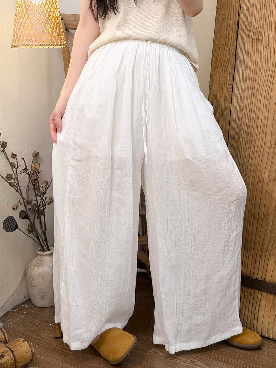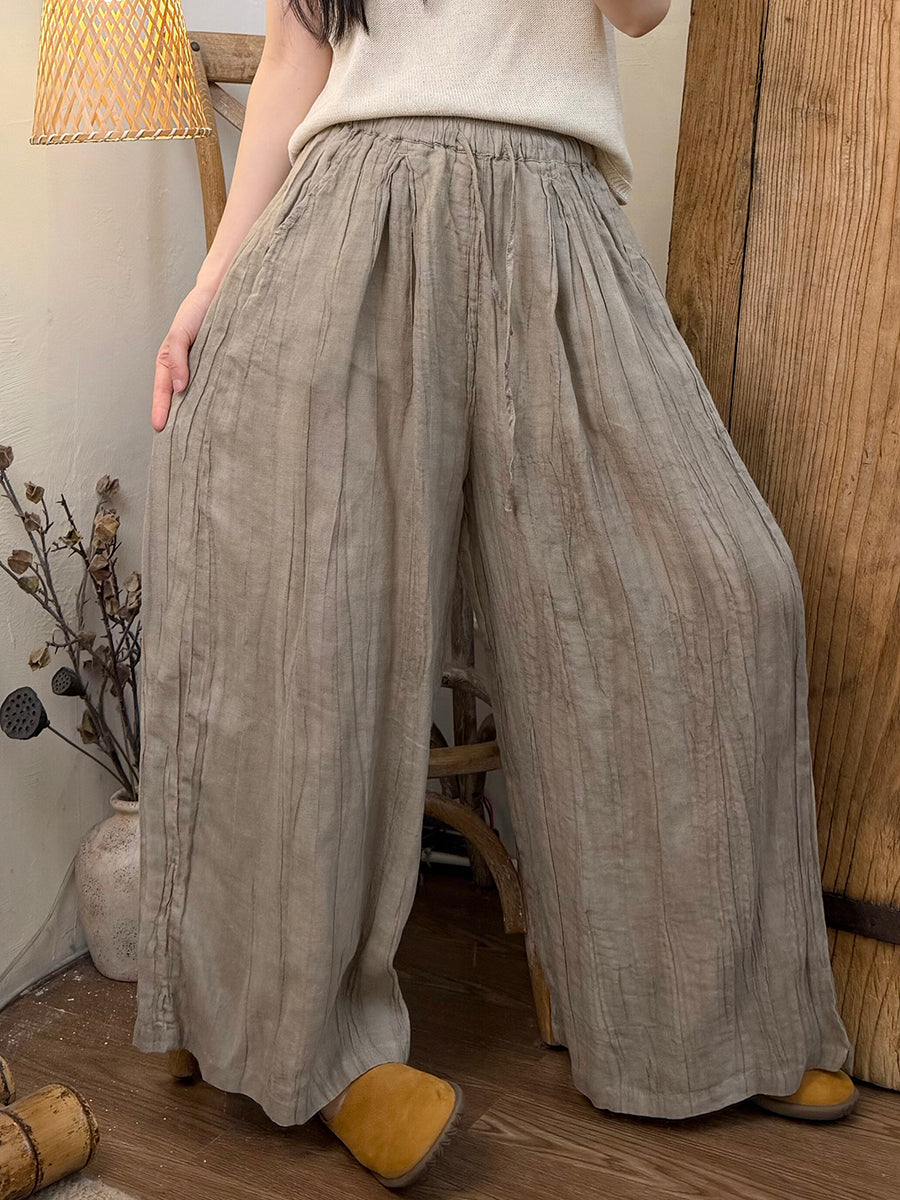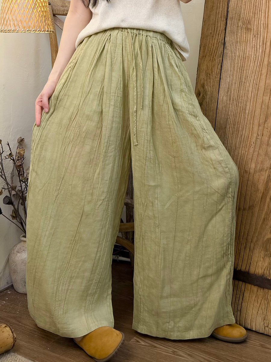 Pantaloni dritti da donna estivi in stile retrò, tinta unita, in ramia