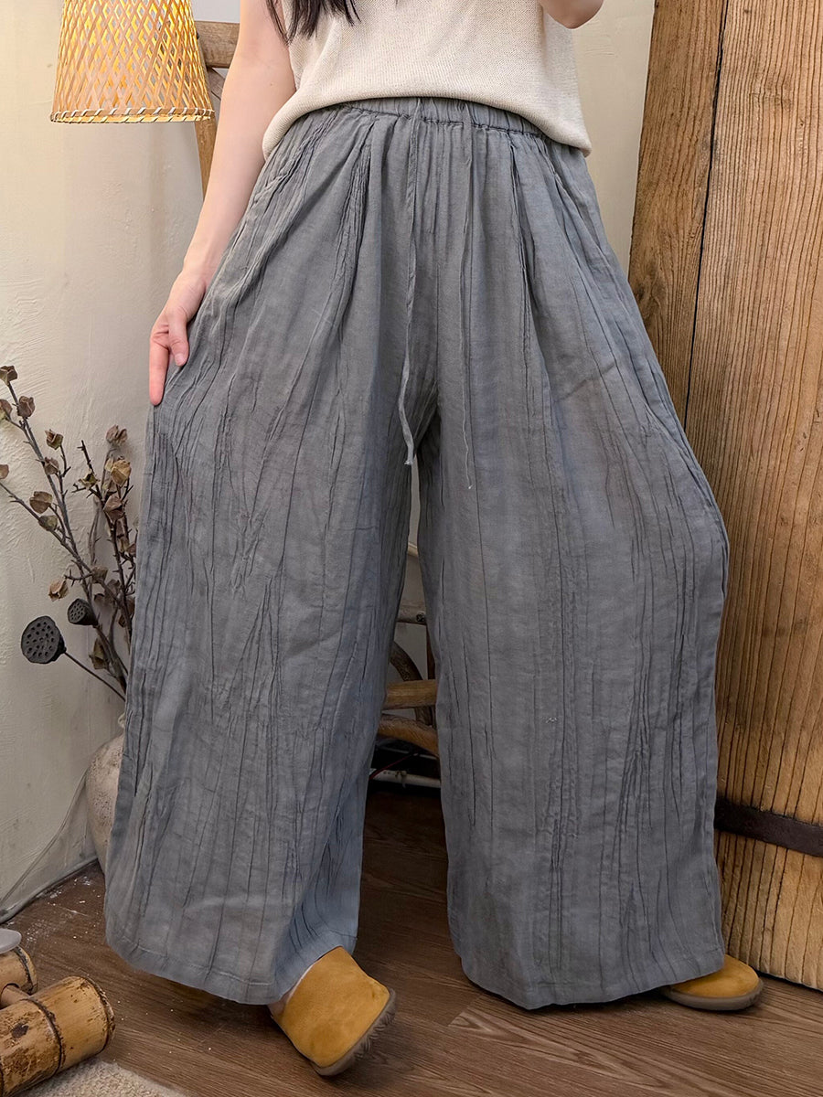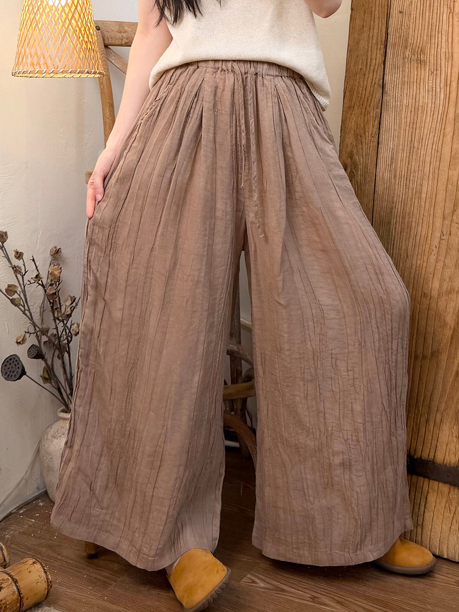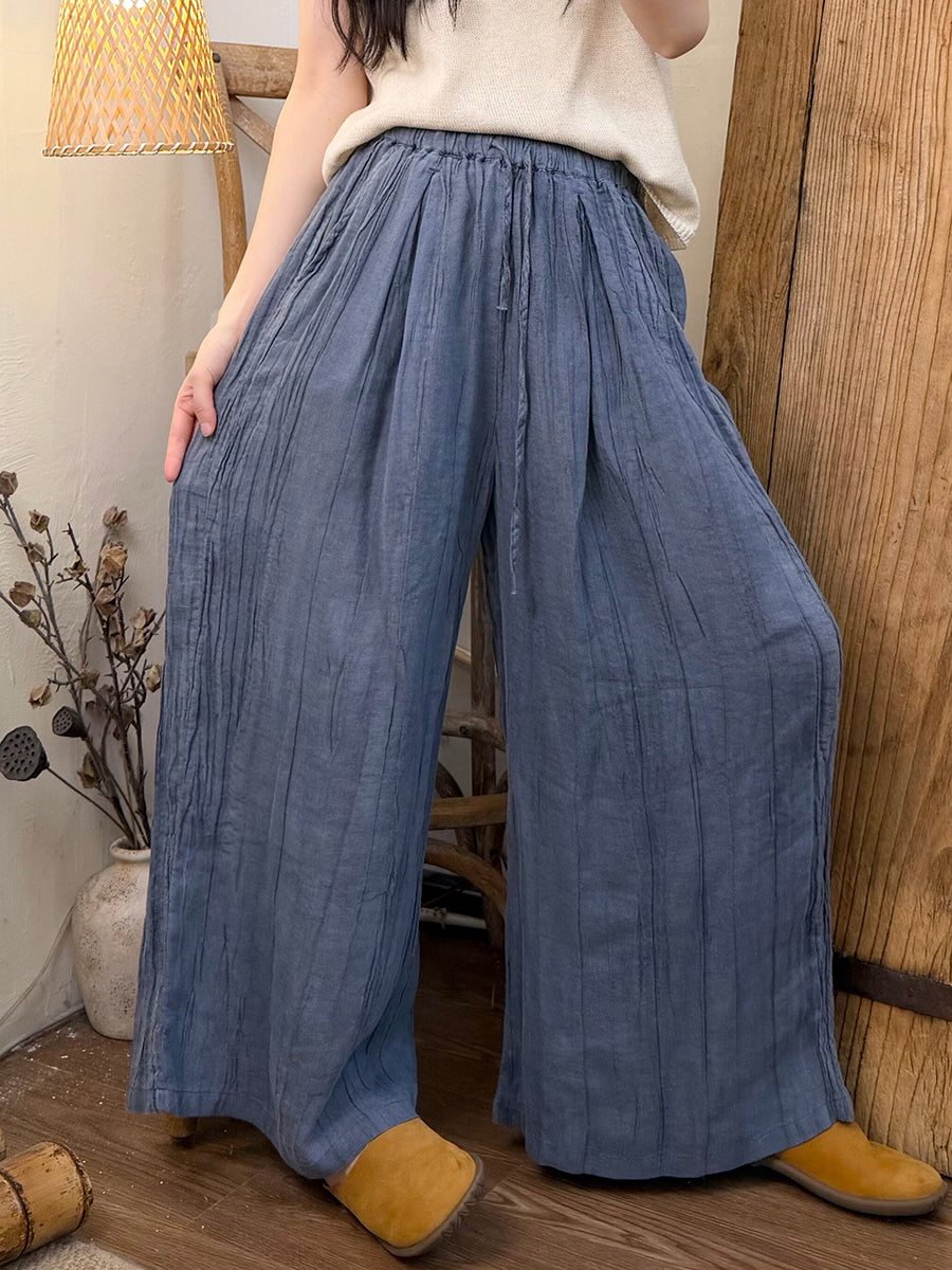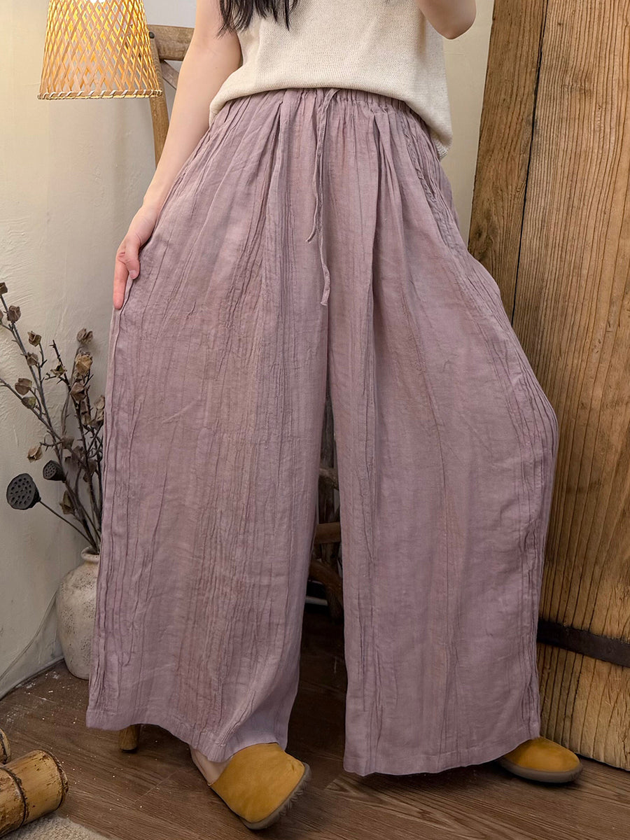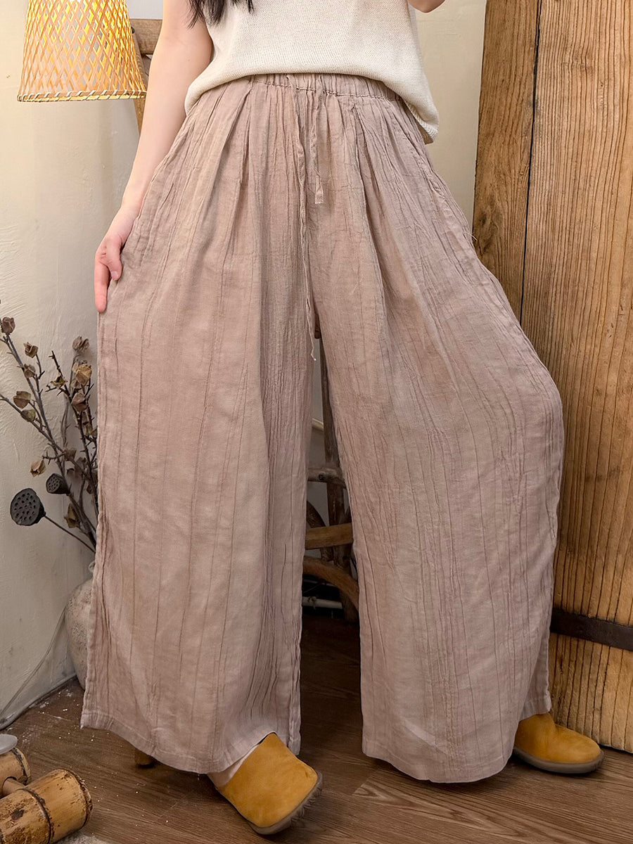 Pantaloni dritti da donna estivi in stile retrò, tinta unita, in ramia