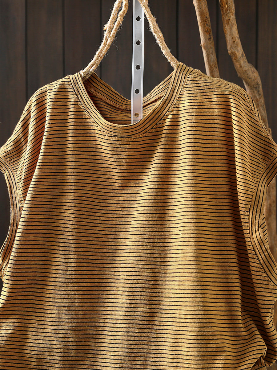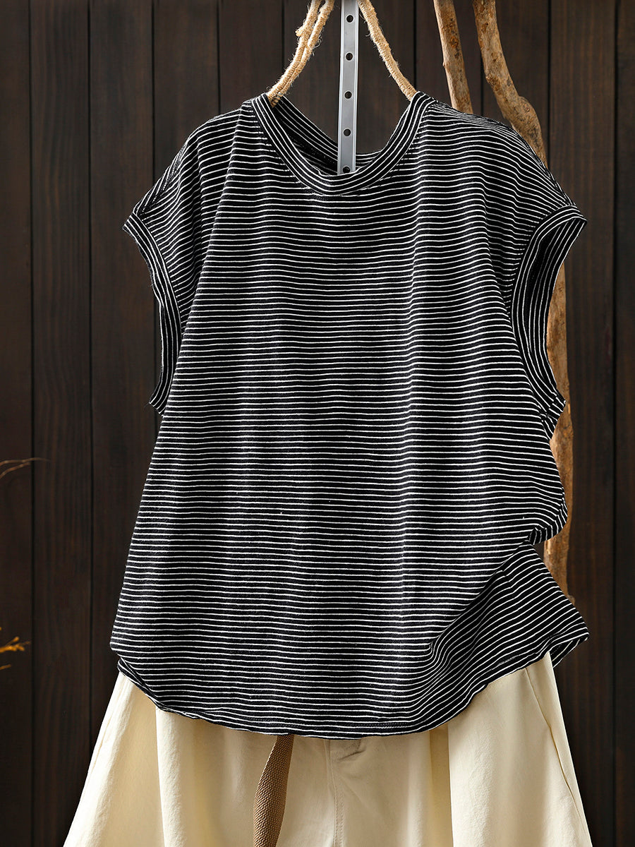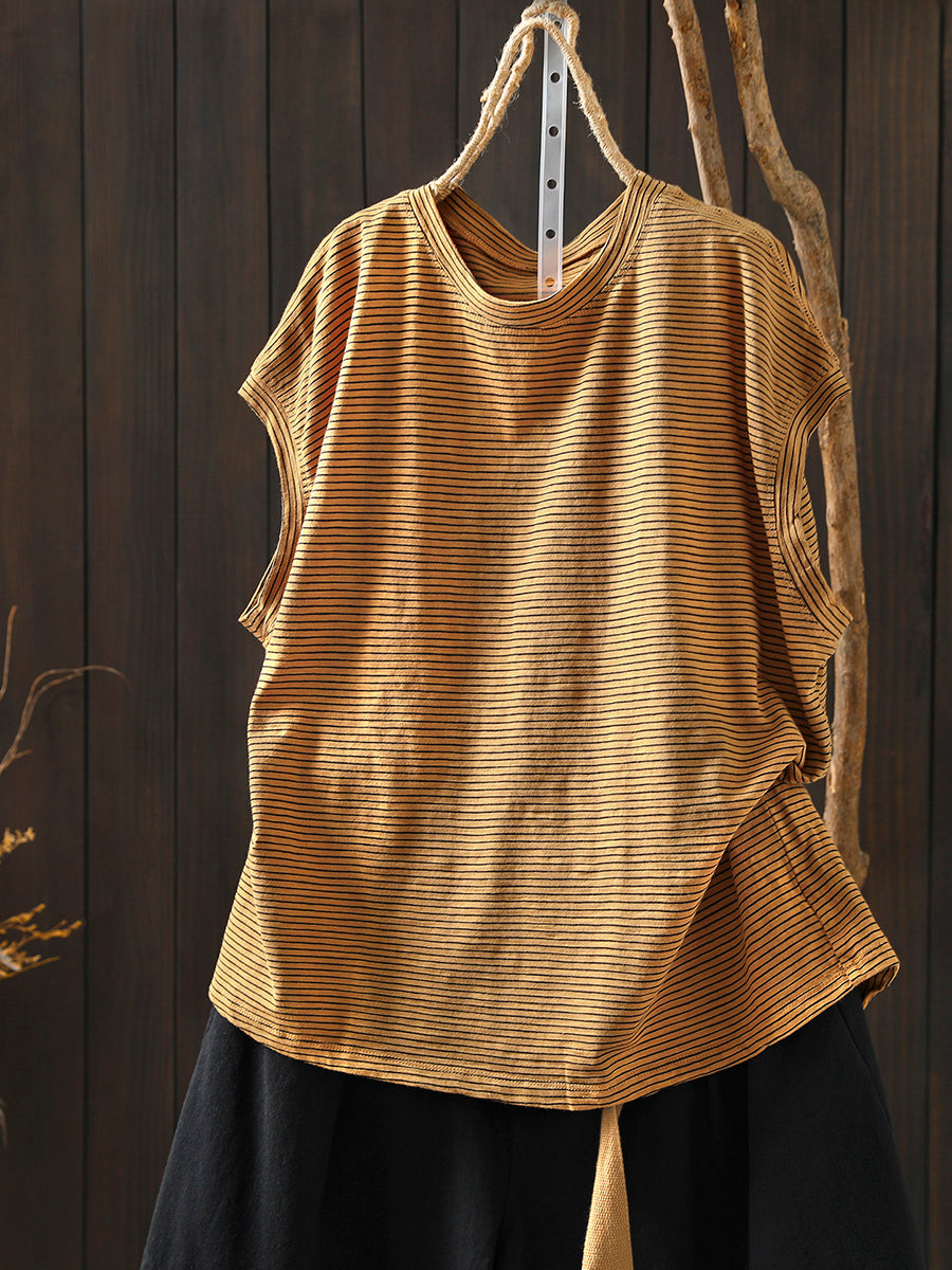 T-shirt da donna estiva a righe retrò 100% cotone