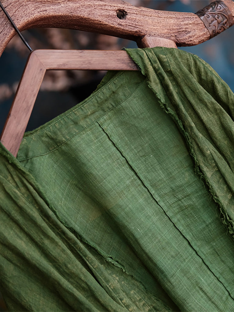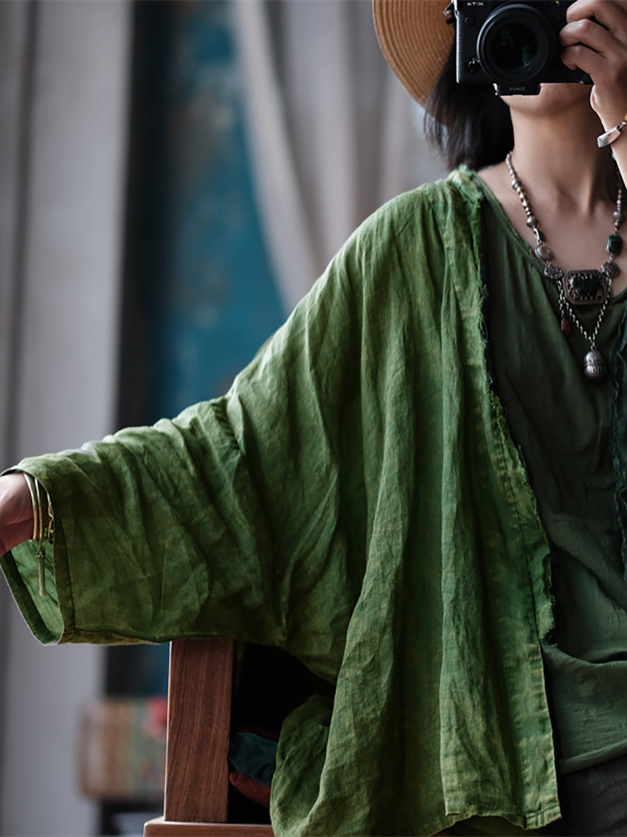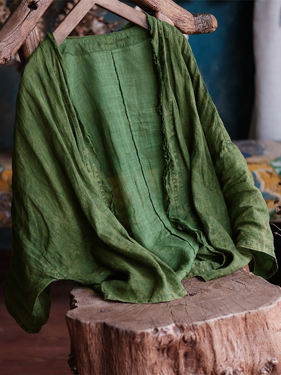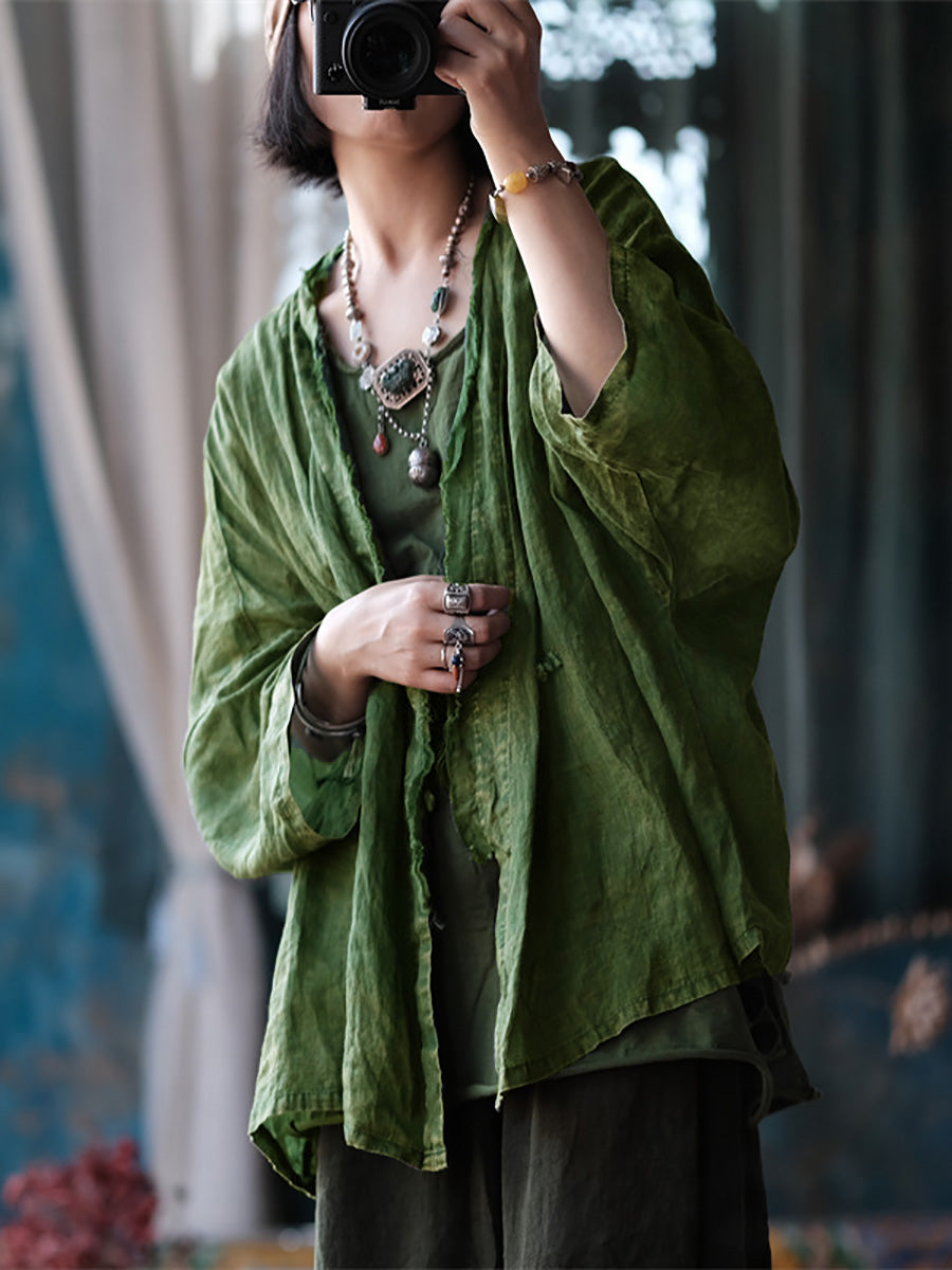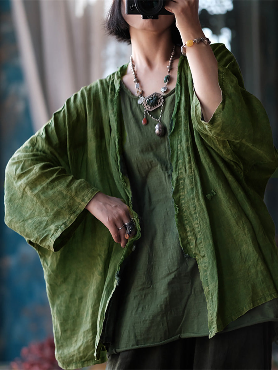 Cappotto camicia in ramiè con bordo grezzo, stile retrò, estivo da donna