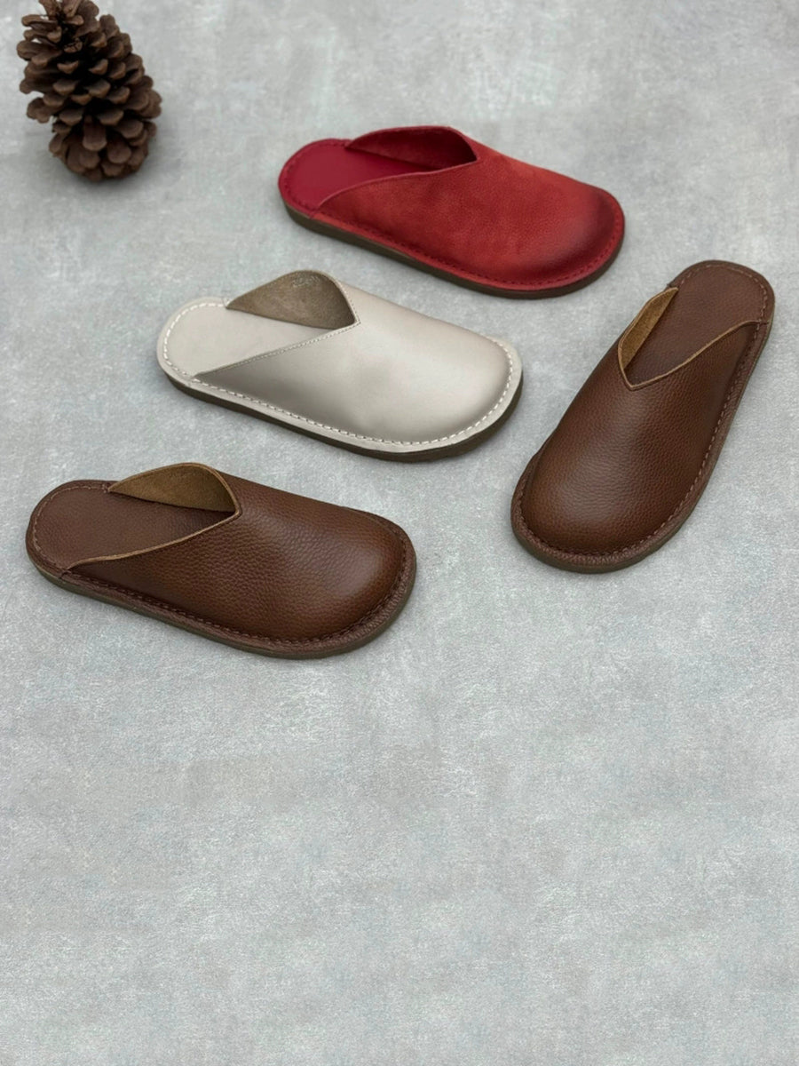 Ciabatte basse estive da donna in morbida vera pelle.