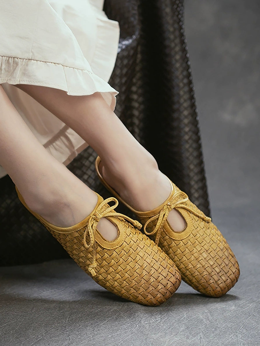 Ciabatte basse estive da donna in morbida pelle intrecciata