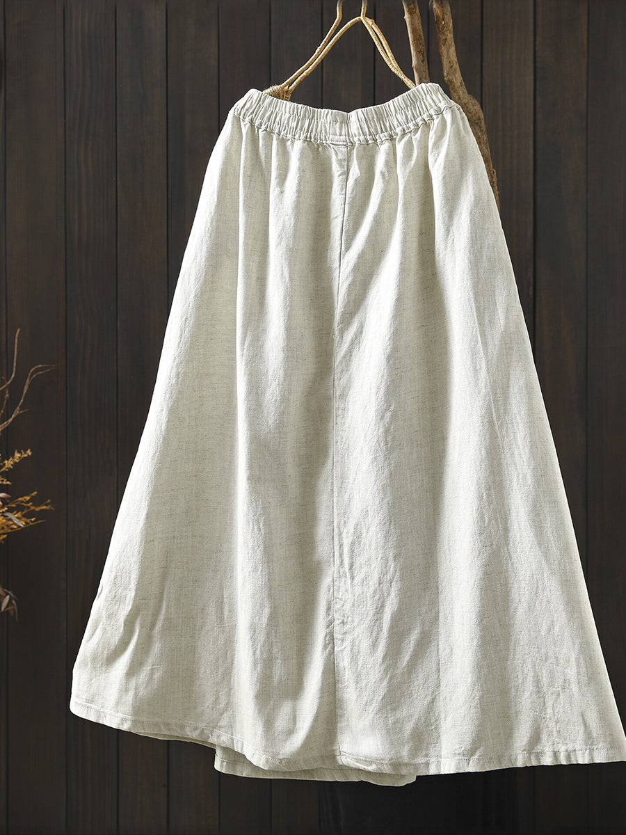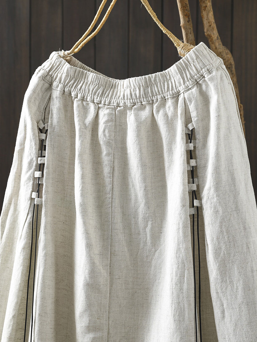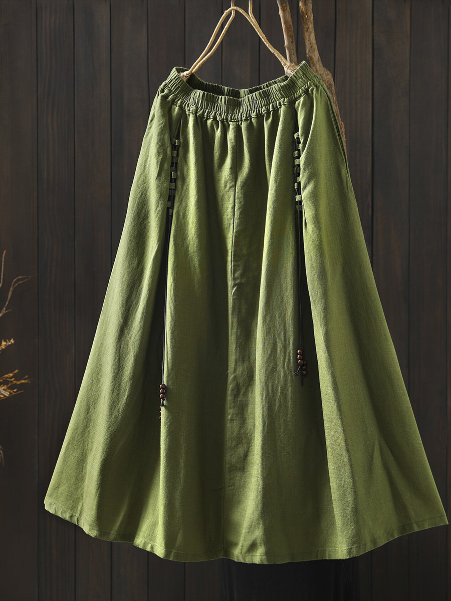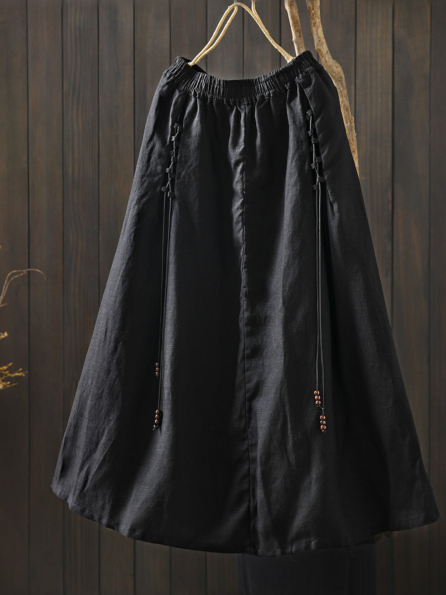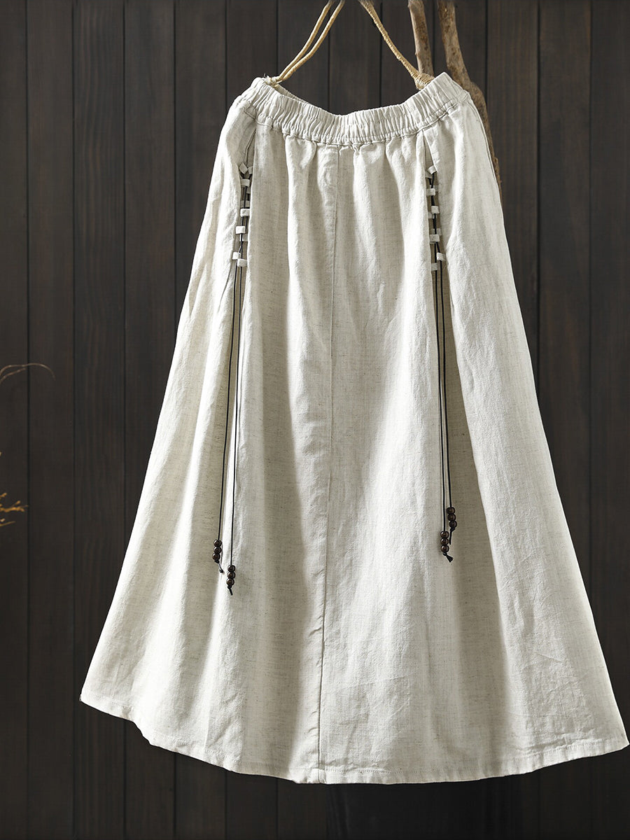 Gonna estiva da donna con frange, 100% lino, modello a trapezio.