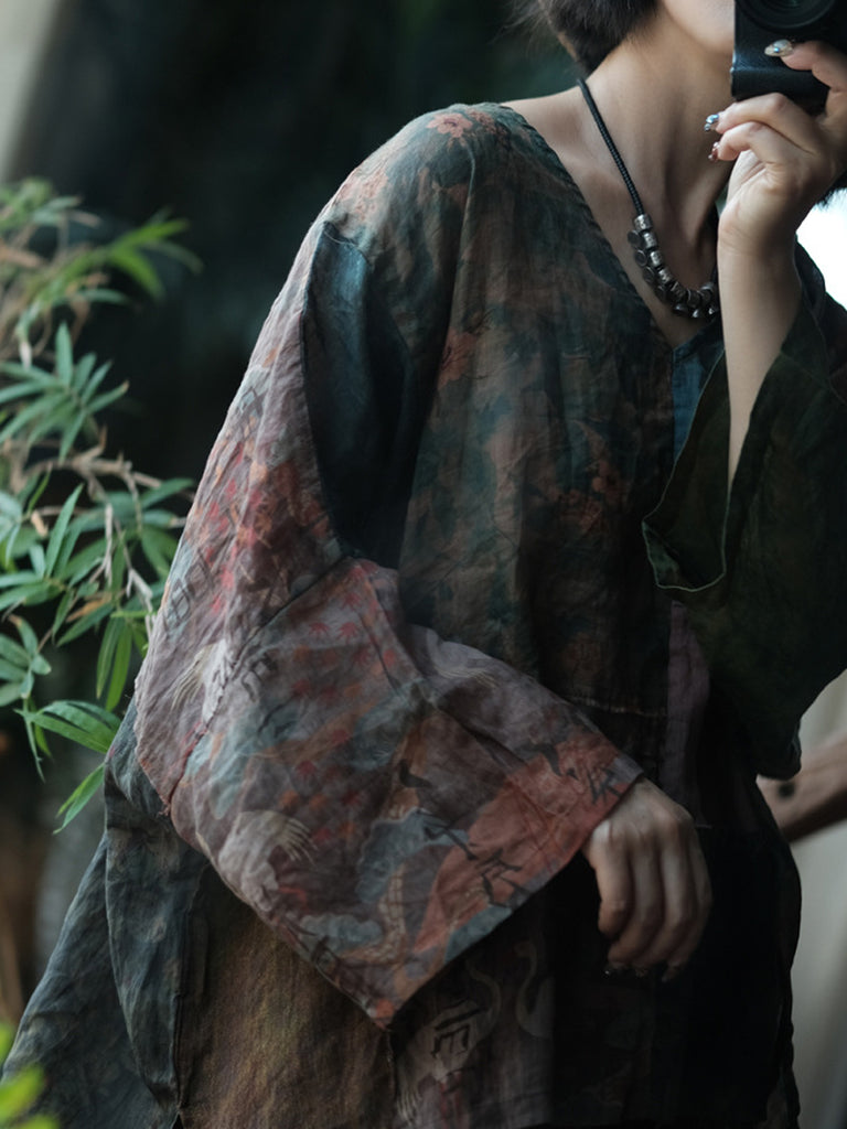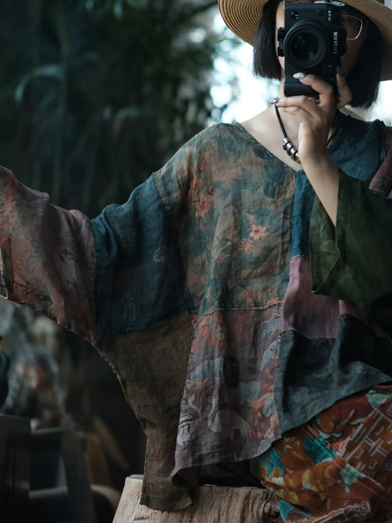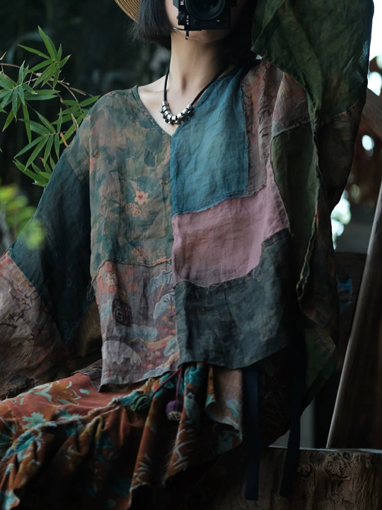 Camicia da donna estiva in ramiè con patchwork floreale vintage