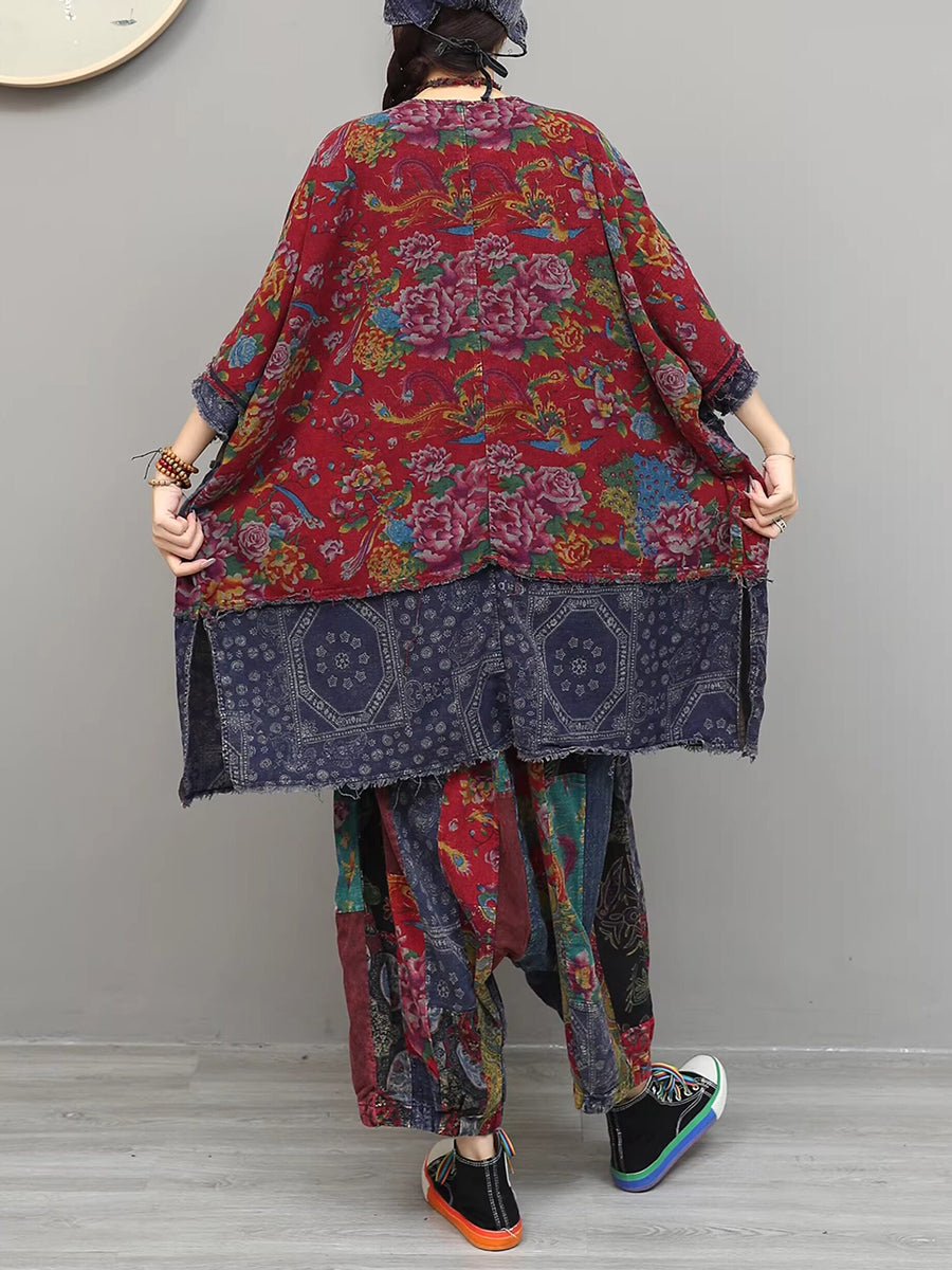 Abiti estivi da donna con scollo a V e patchwork floreale vintage