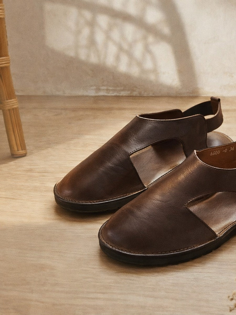 Calzature vintage in vera pelle, realizzate a mano con dettagli artigianali. Comode e traspiranti, perfette per l'uso quotidiano.