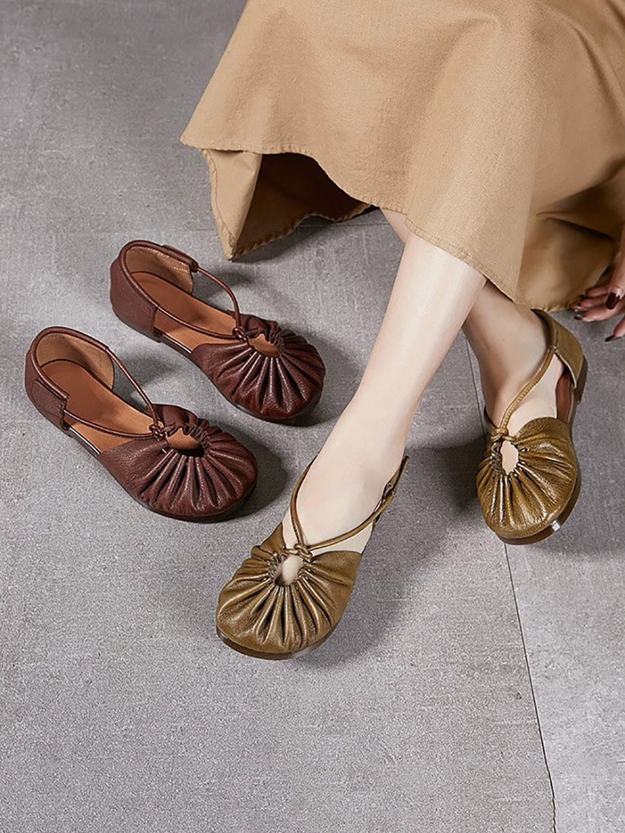 Scarpe basse estive da donna in vera pelle, stile vintage.