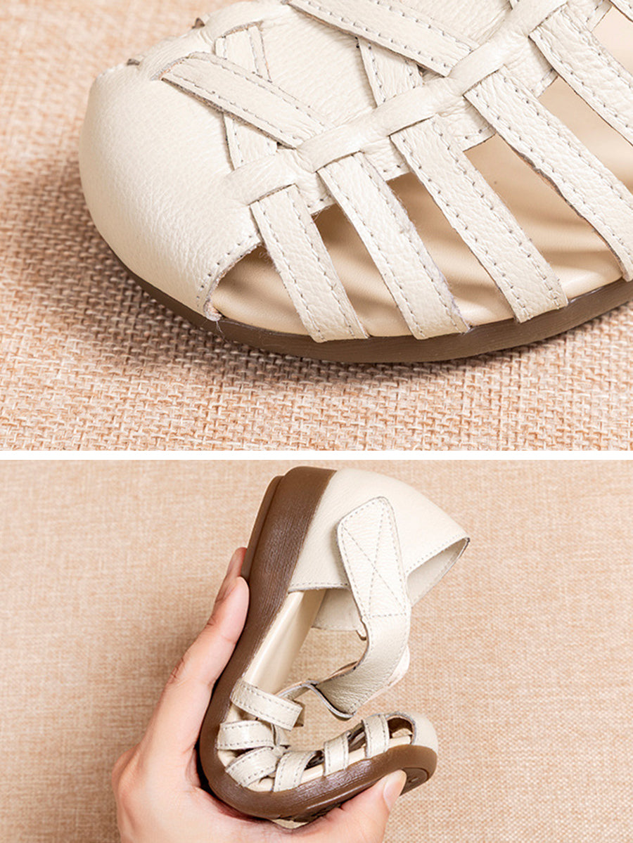 Sandali estivi da donna in vera pelle intrecciata, stile vintage.