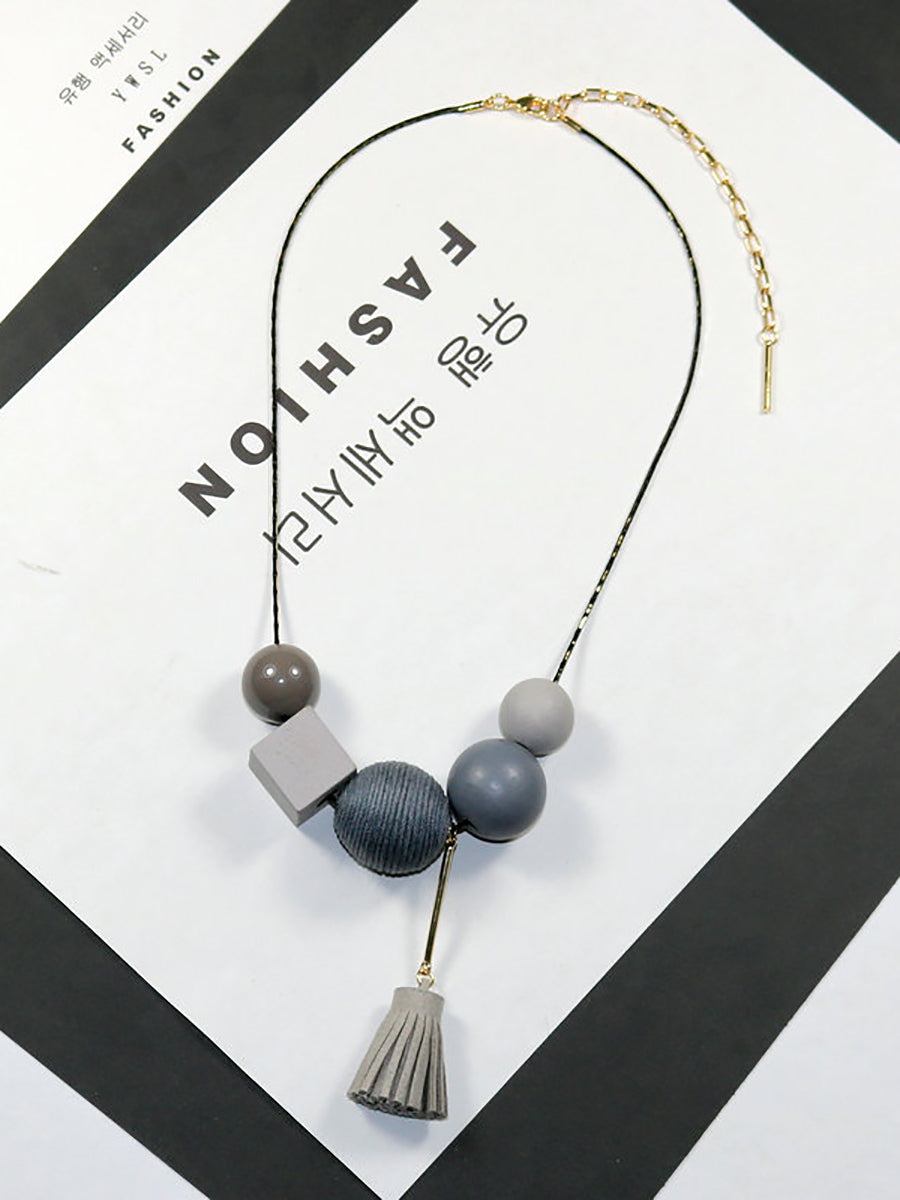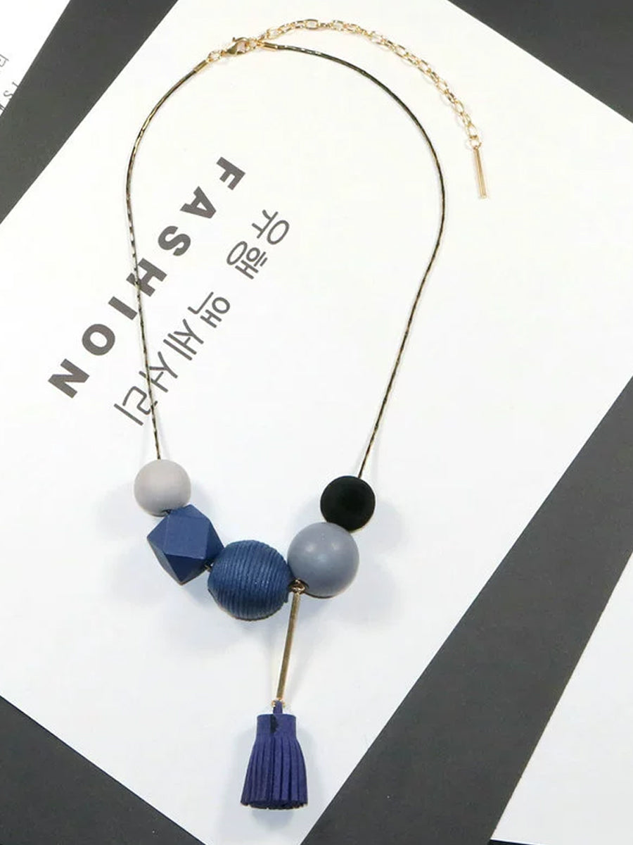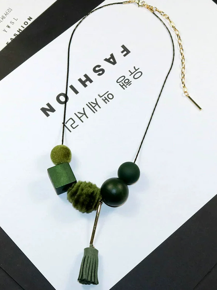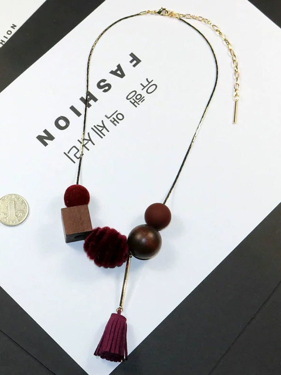 Collana da donna in lega vintage con sfere in legno