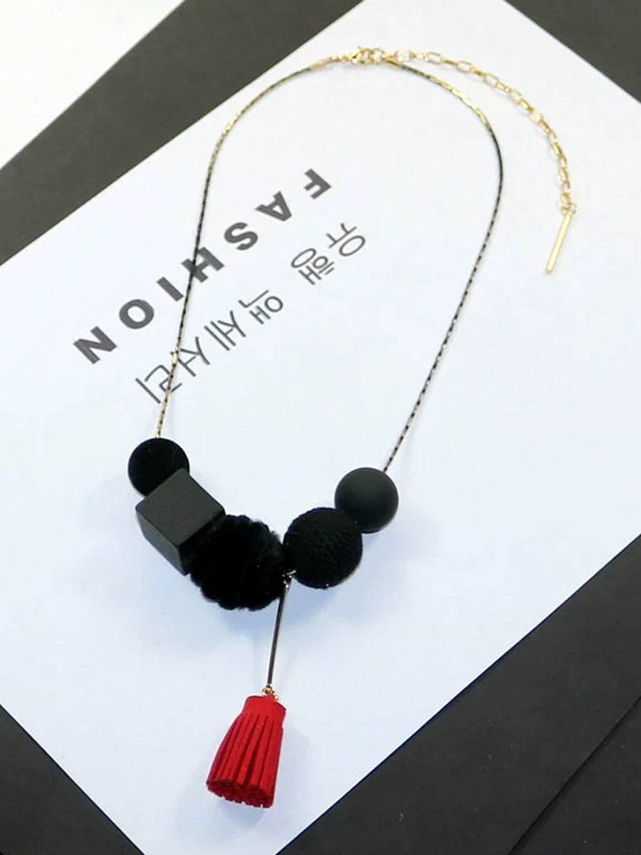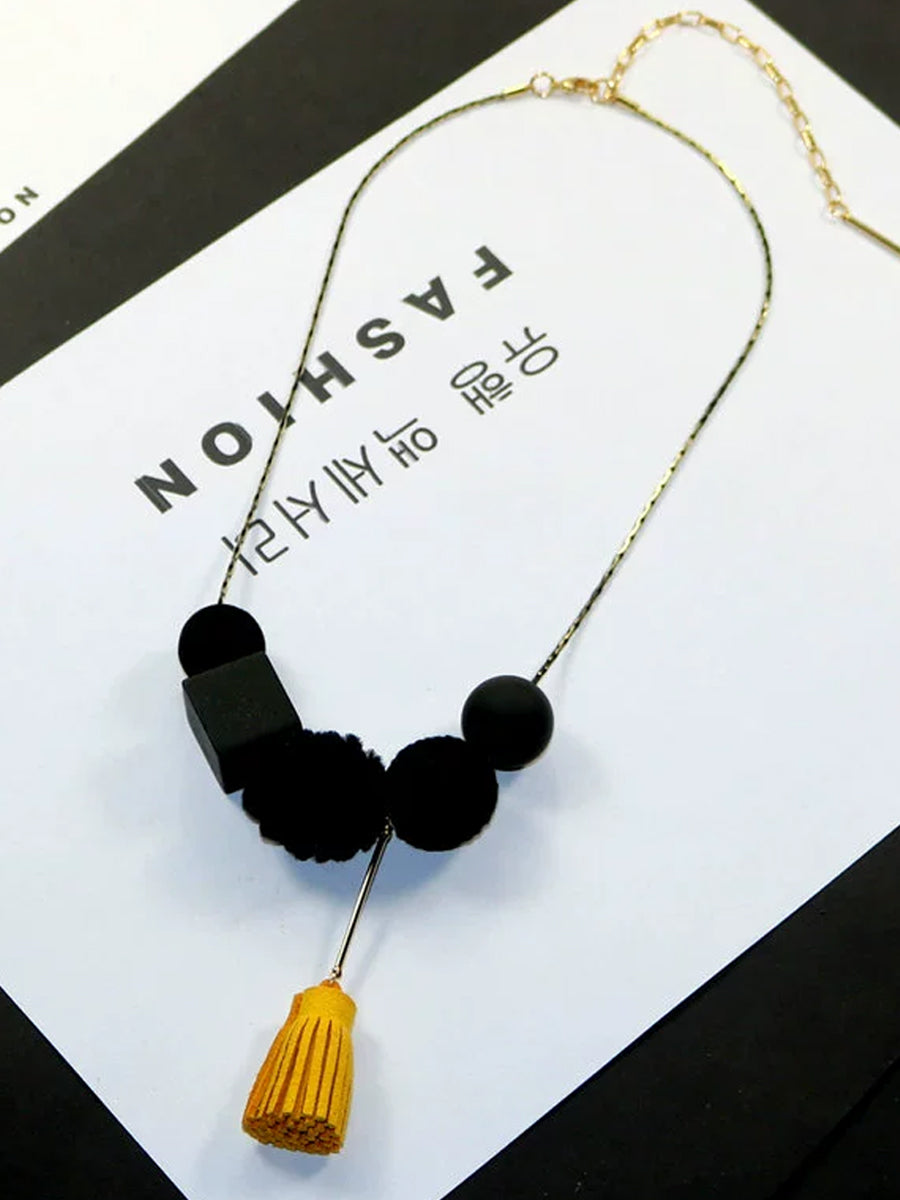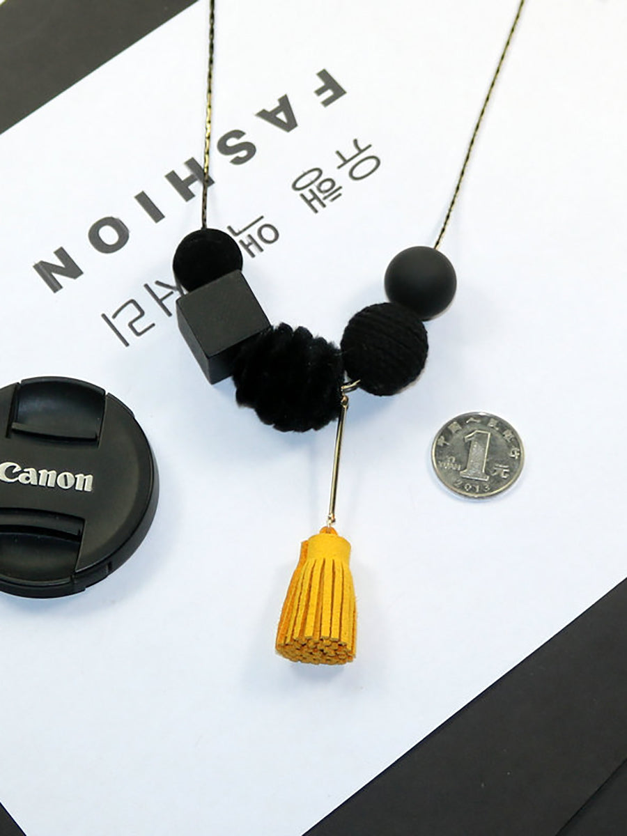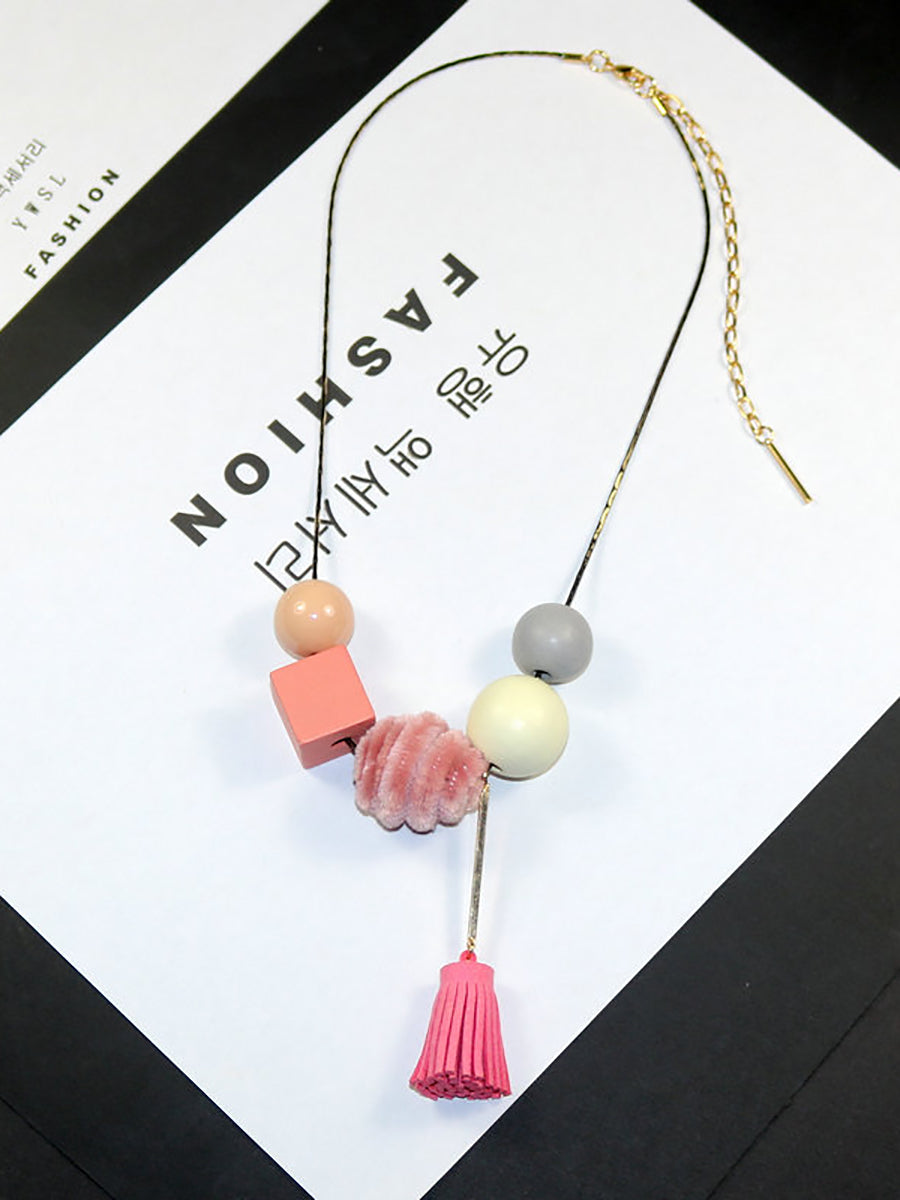 Collana da donna in lega vintage con sfere in legno
