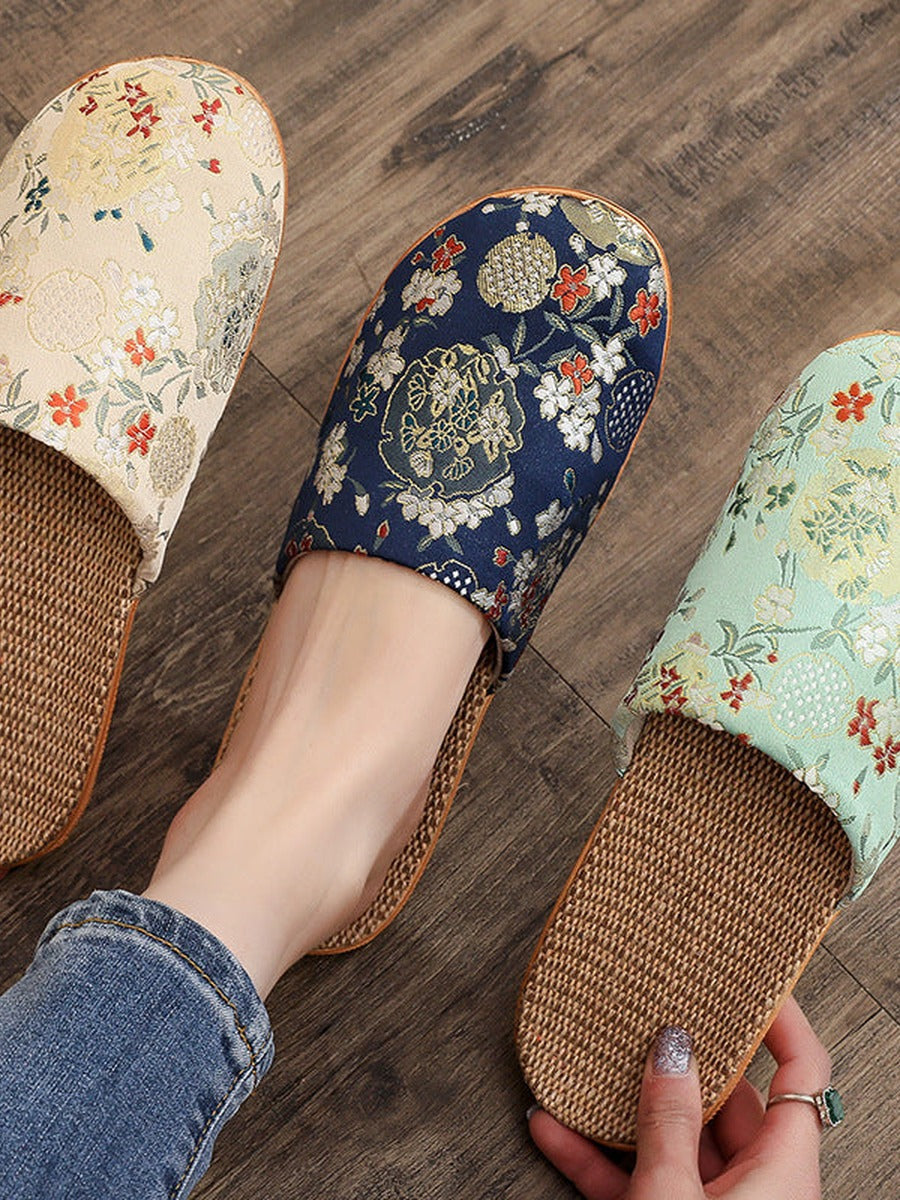 Pantofole da donna in lino ricamate in stile cinese vintage