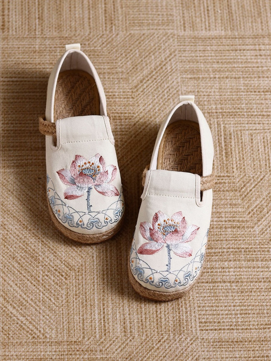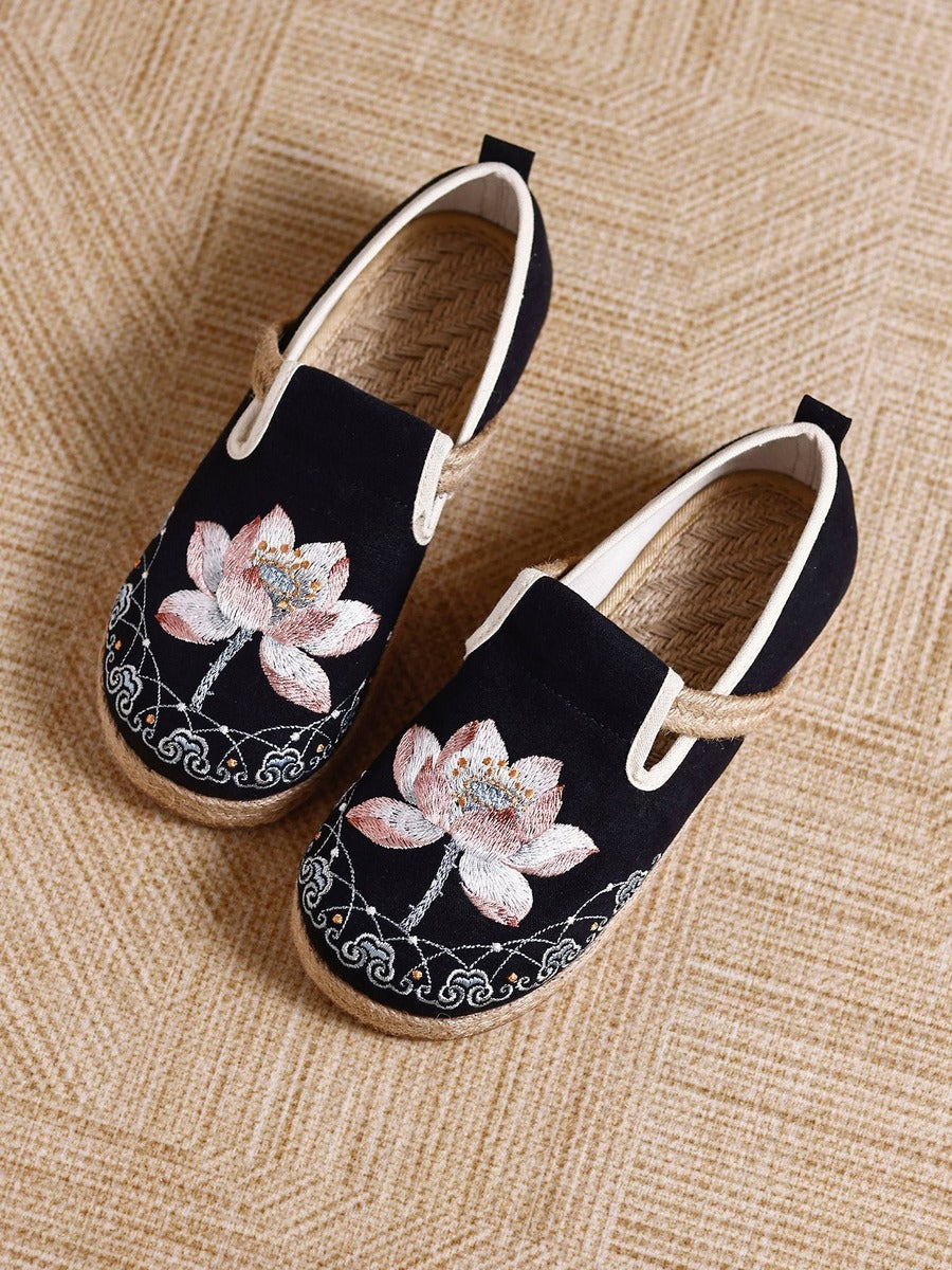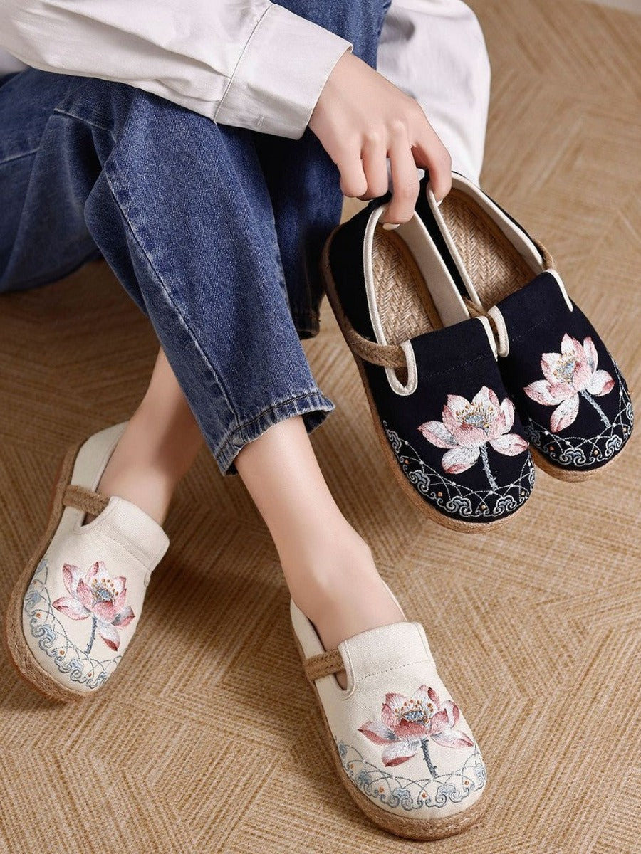 Ballerine da donna vintage etniche in cotone e lino con ricami etnici