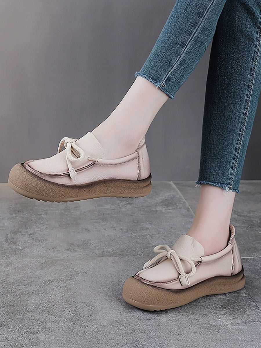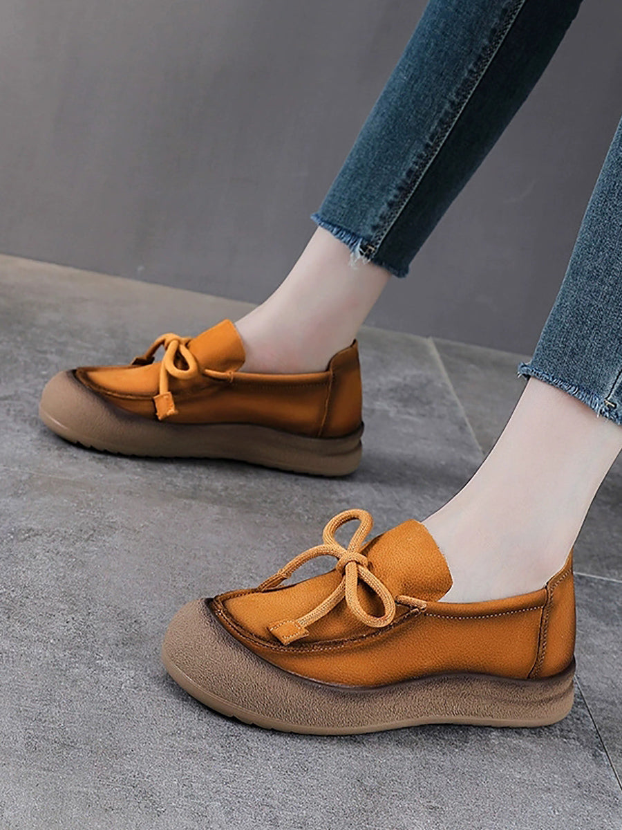 Scarpe basse vintage da donna in vera pelle con fiocco