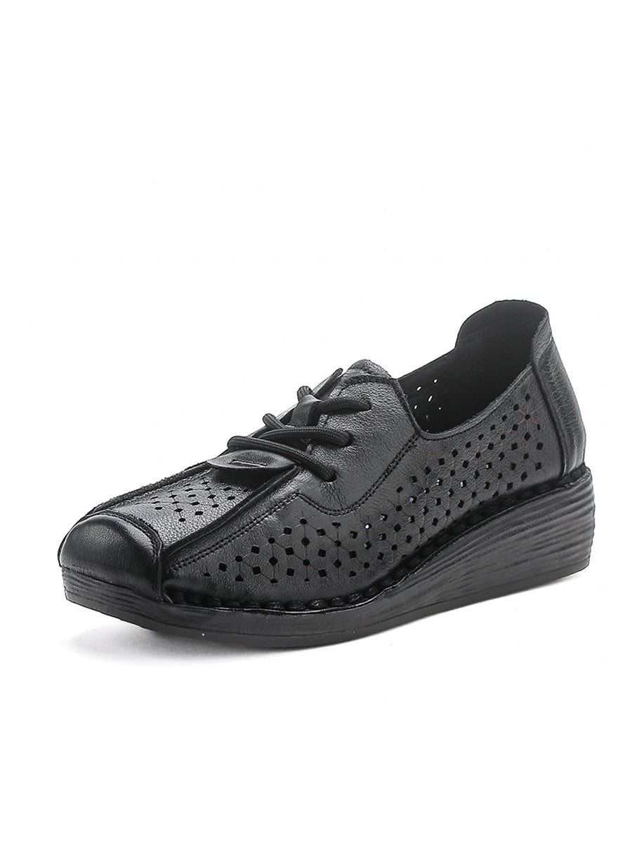 Scarpe da donna vintage in vera pelle con plateau traforato