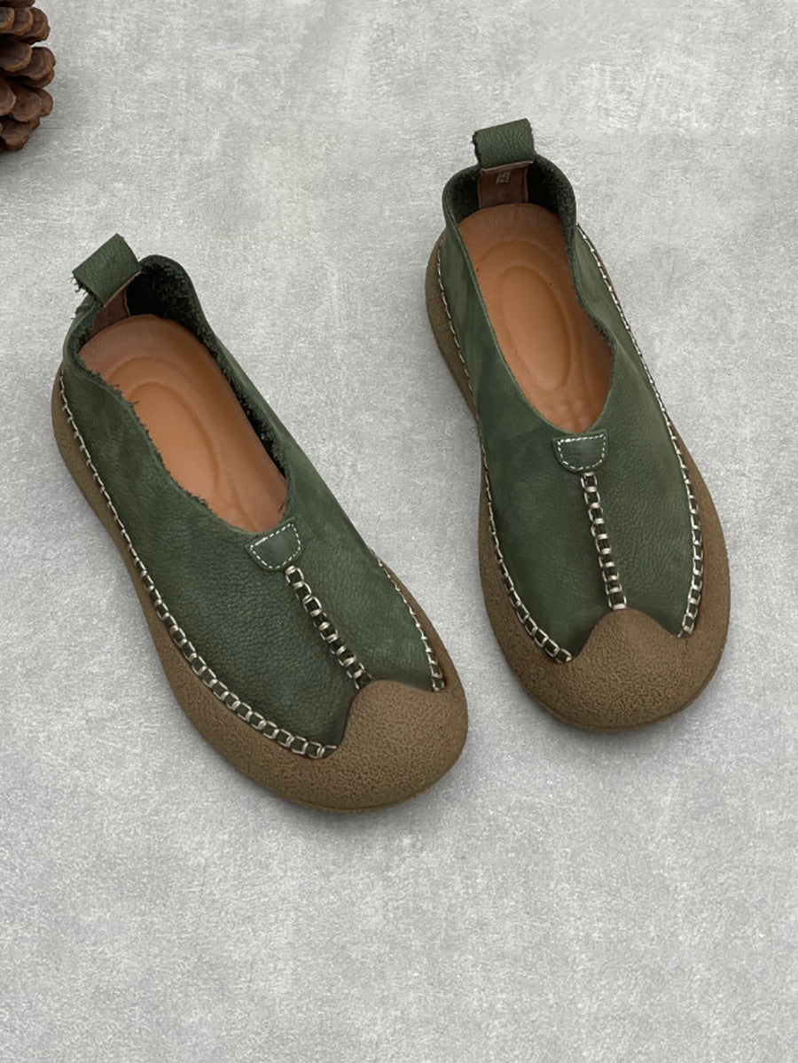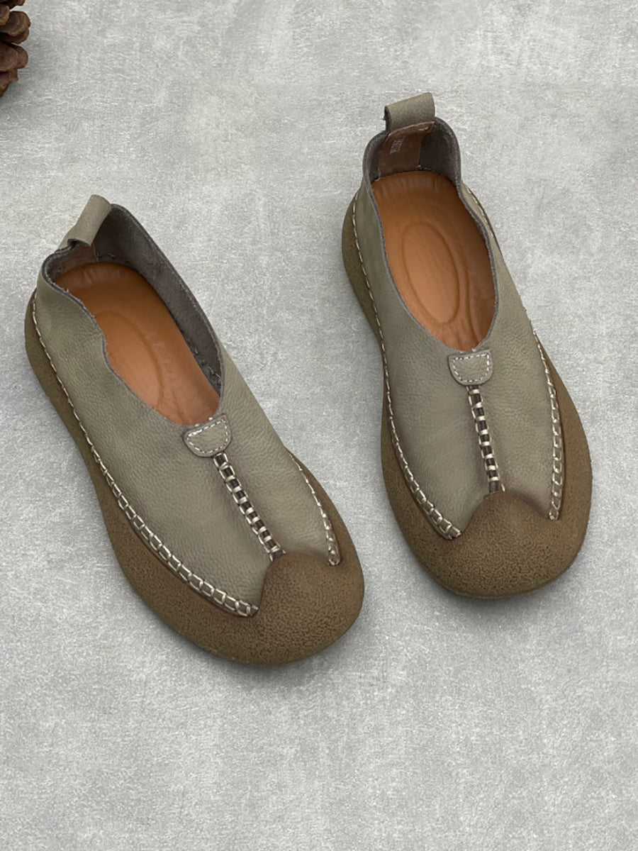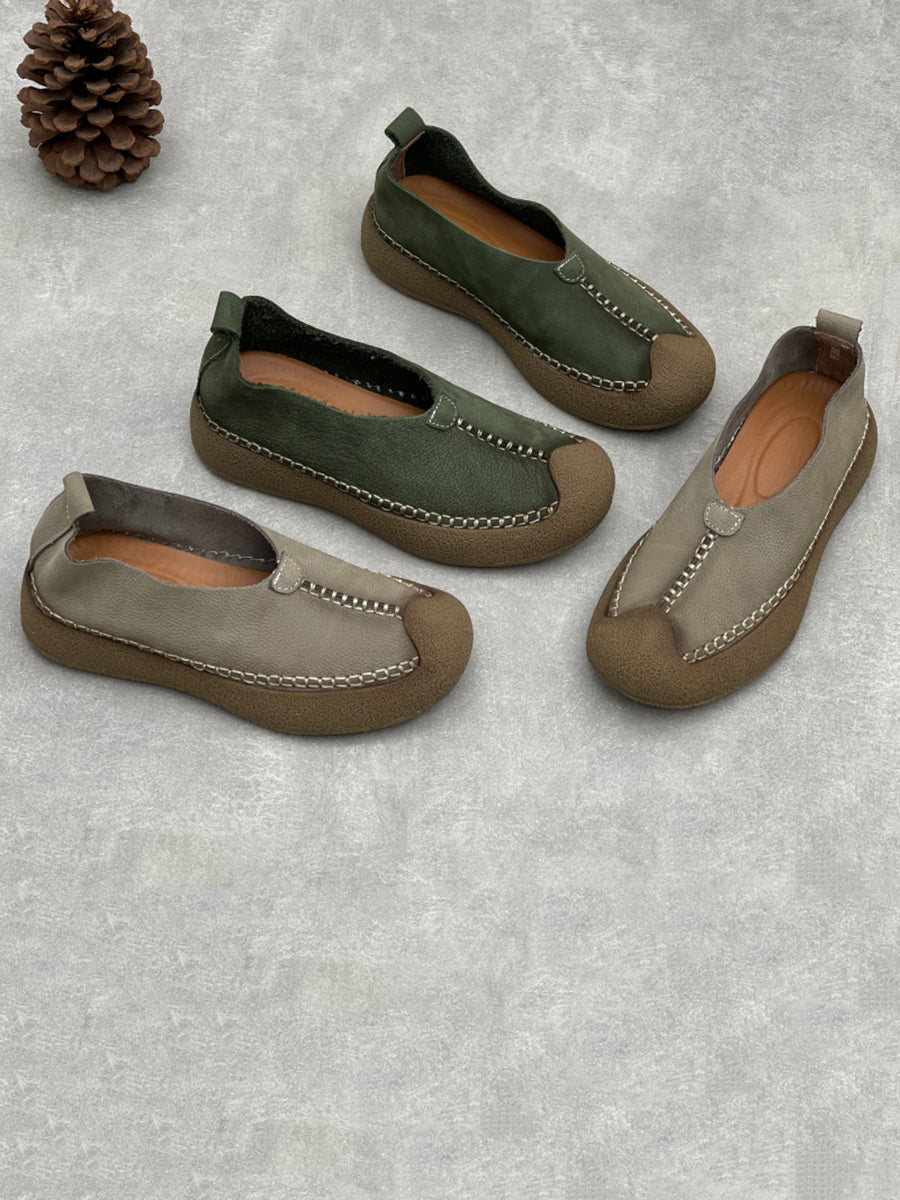 Scarpe basse vintage da donna in vera pelle con giunzioni